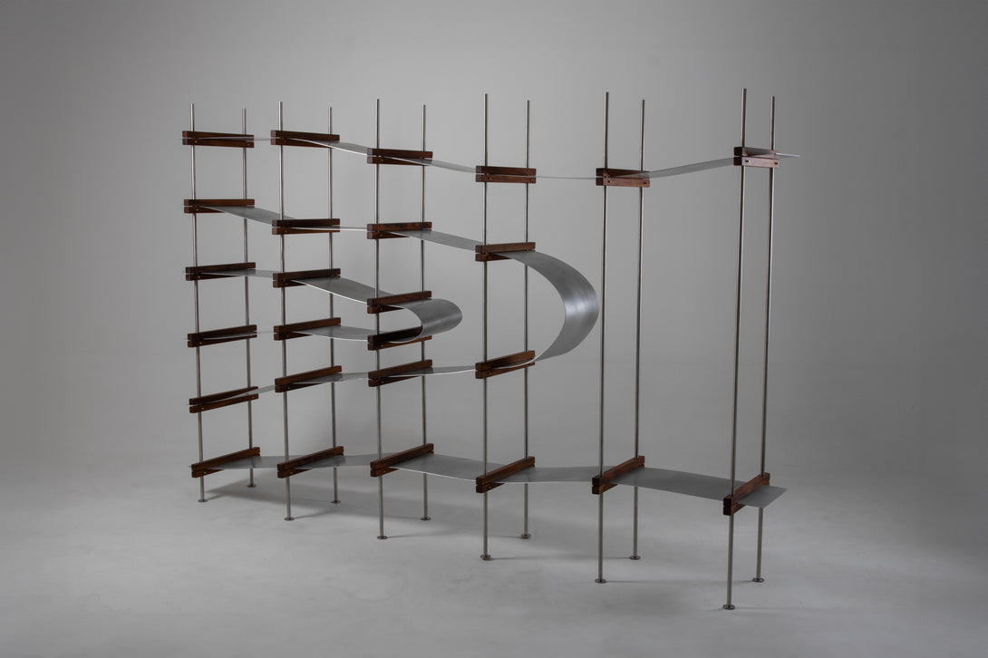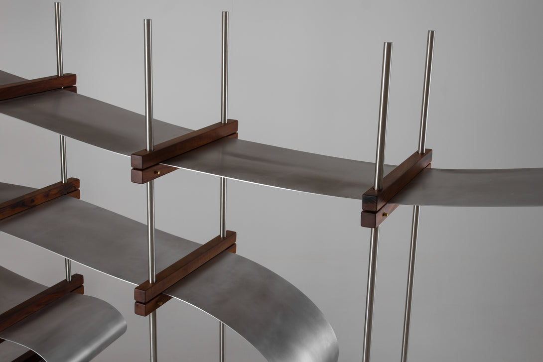 The Bauman shelf has a width of 270 cm, a depth of 43 cm, and a height of 180 cm.