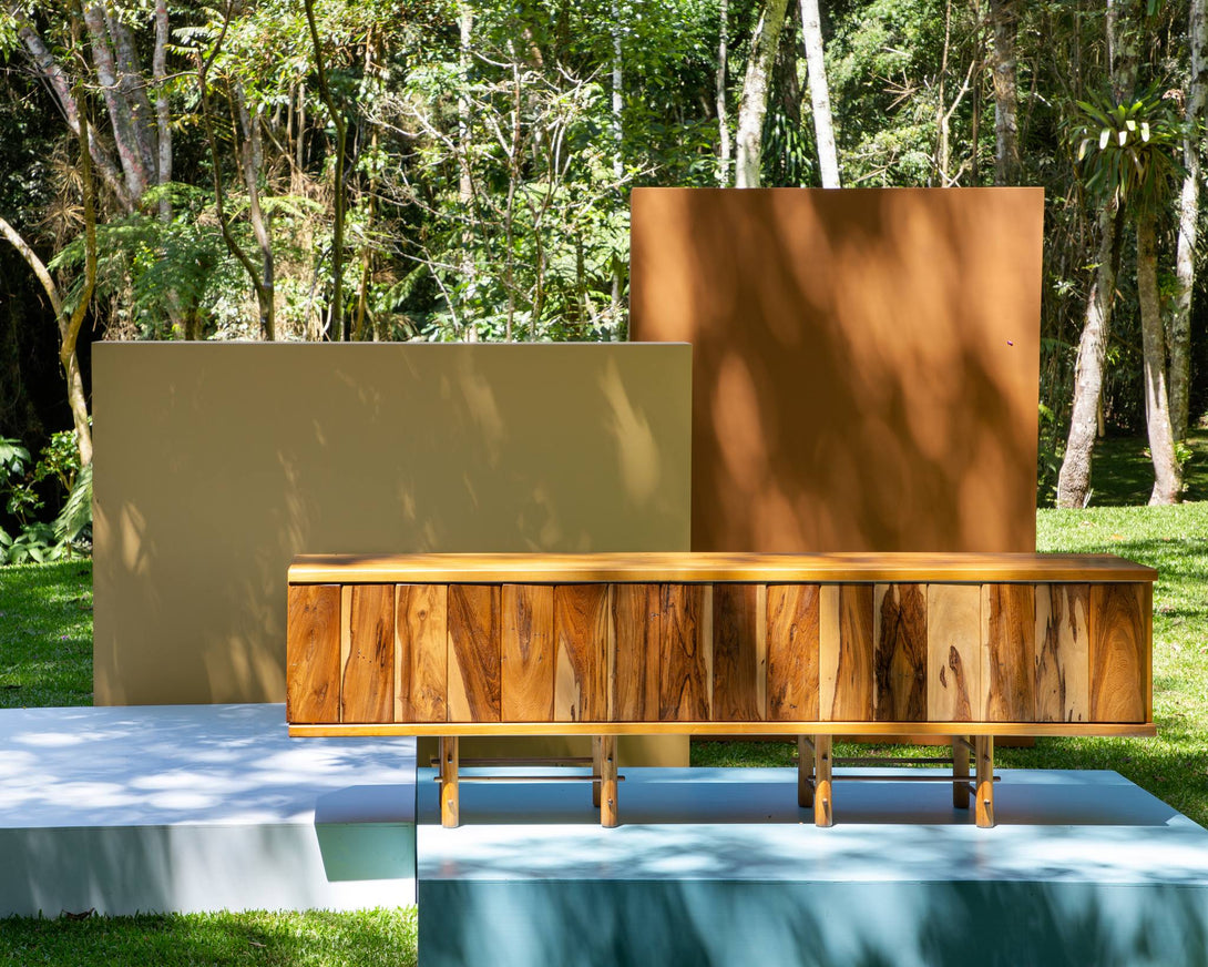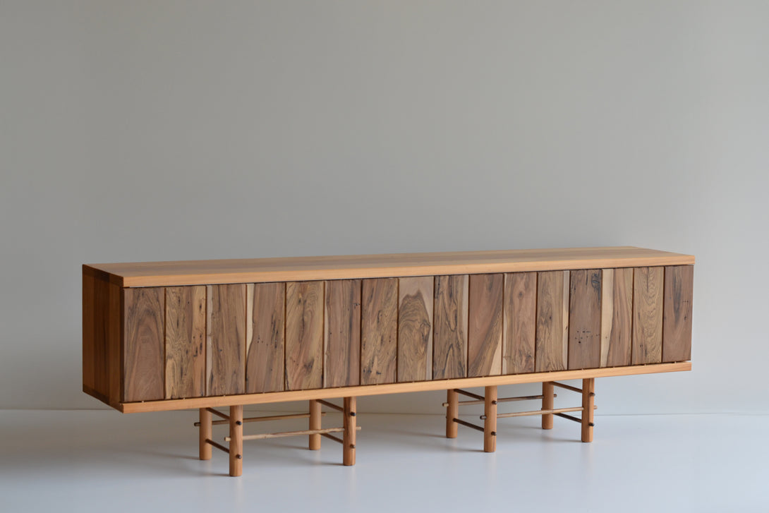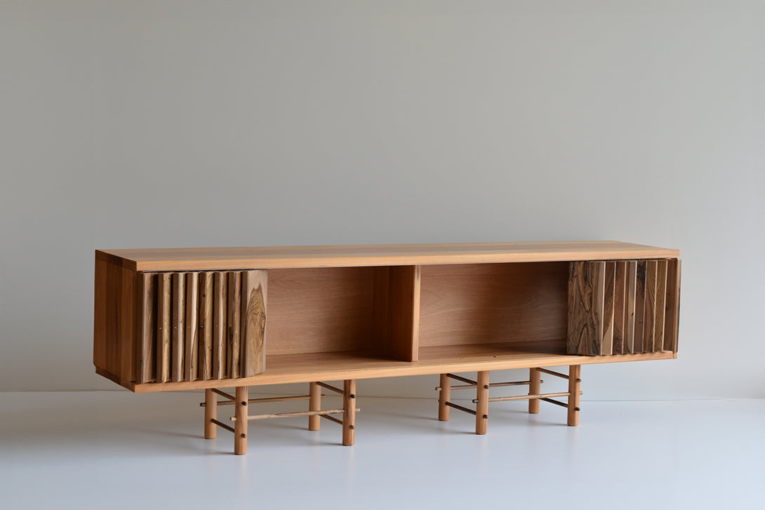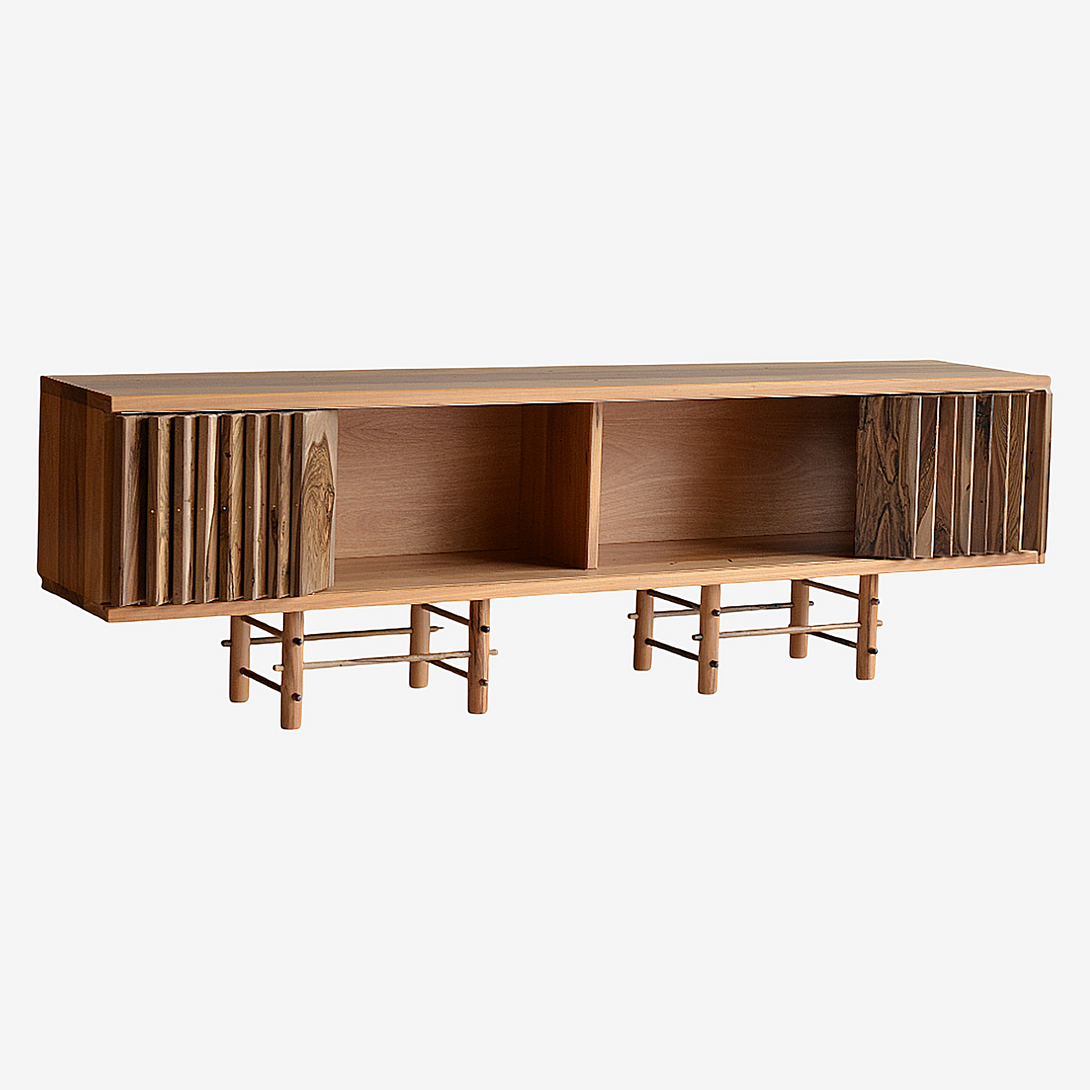 The Brise-Soleil Buffet is an elegant piece of furniture. With a length ranging from 105 to 360 cm, a depth of 48 cm, and a height of 75 cm, it stands out for its impressive presence and functionality. Made entirely from solid woods.