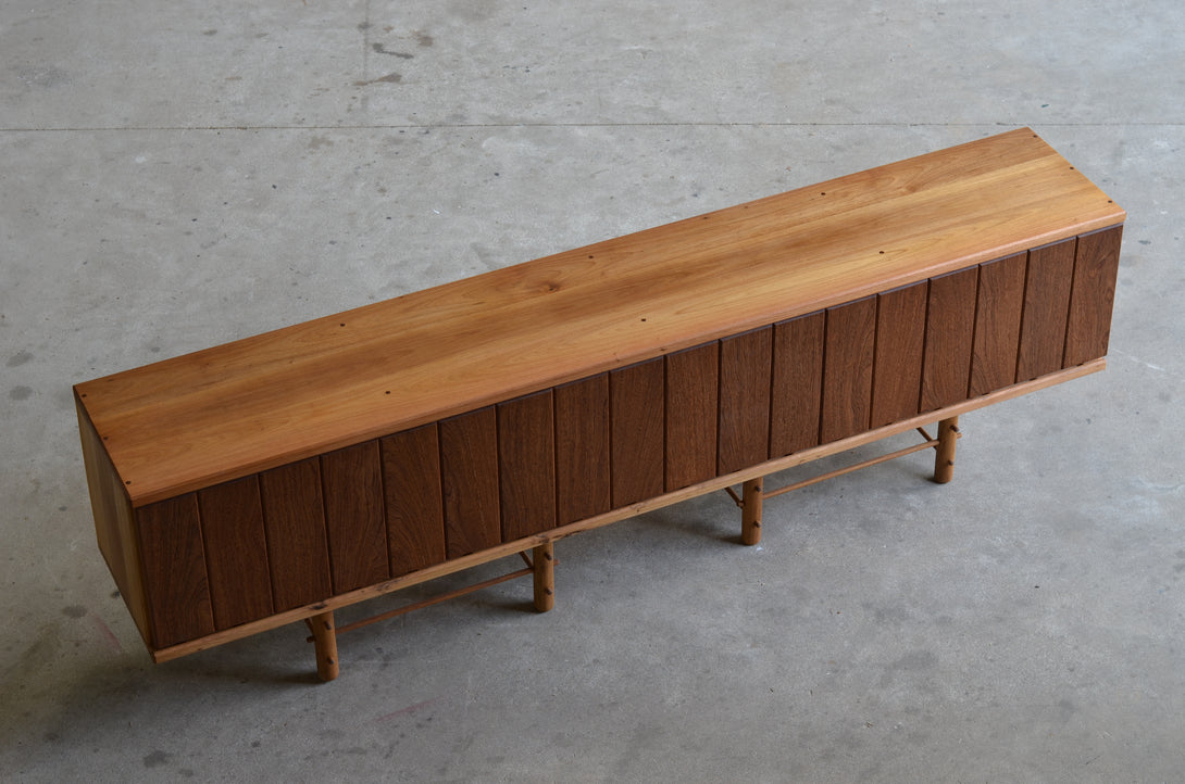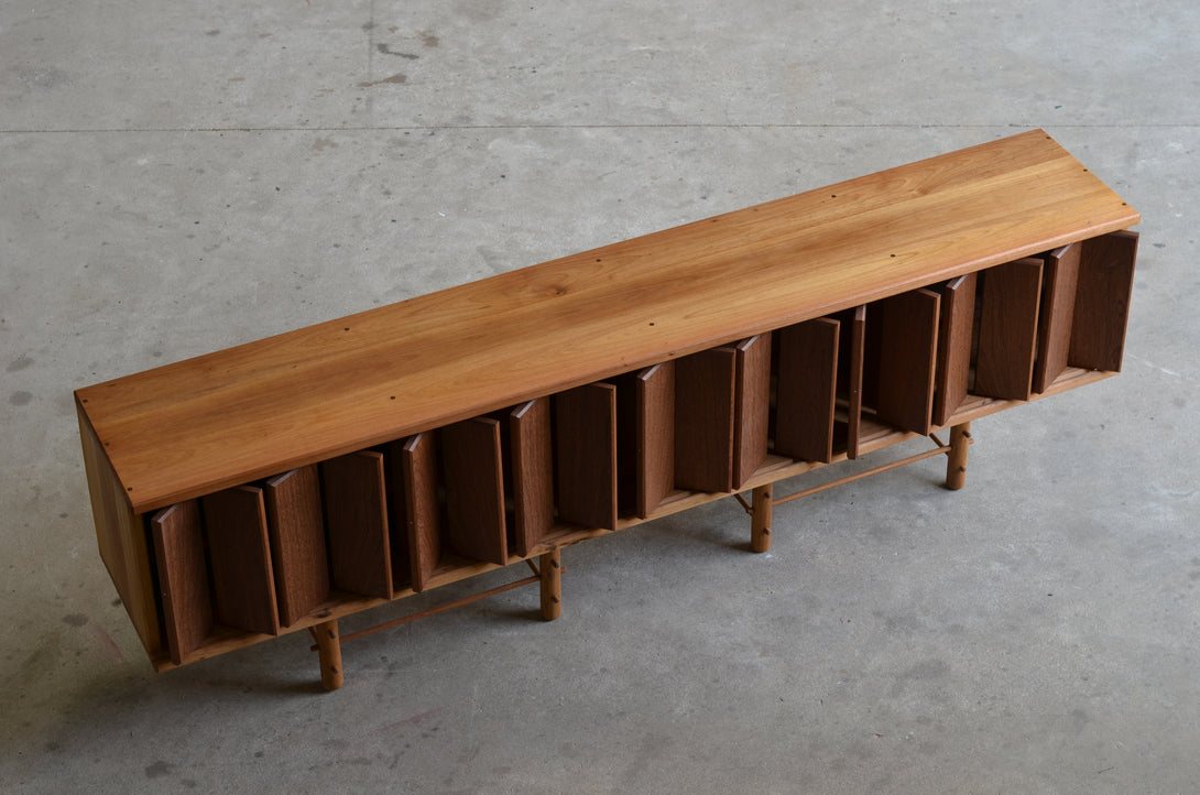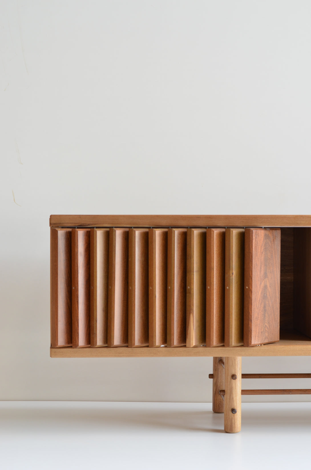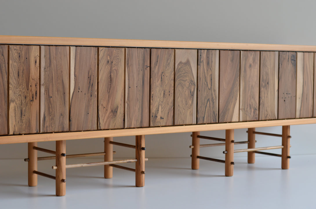The Brise-Soleil Buffet is an elegant piece of furniture. With a length ranging from 105 to 360 cm, a depth of 48 cm, and a height of 75 cm, it stands out for its impressive presence and functionality. Made entirely from solid woods.