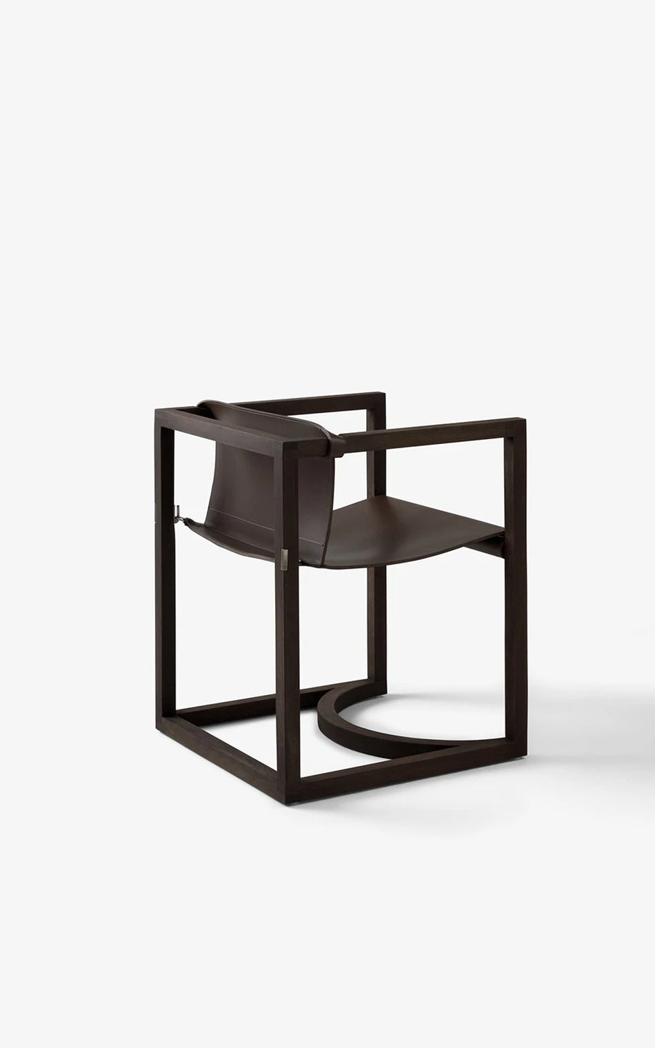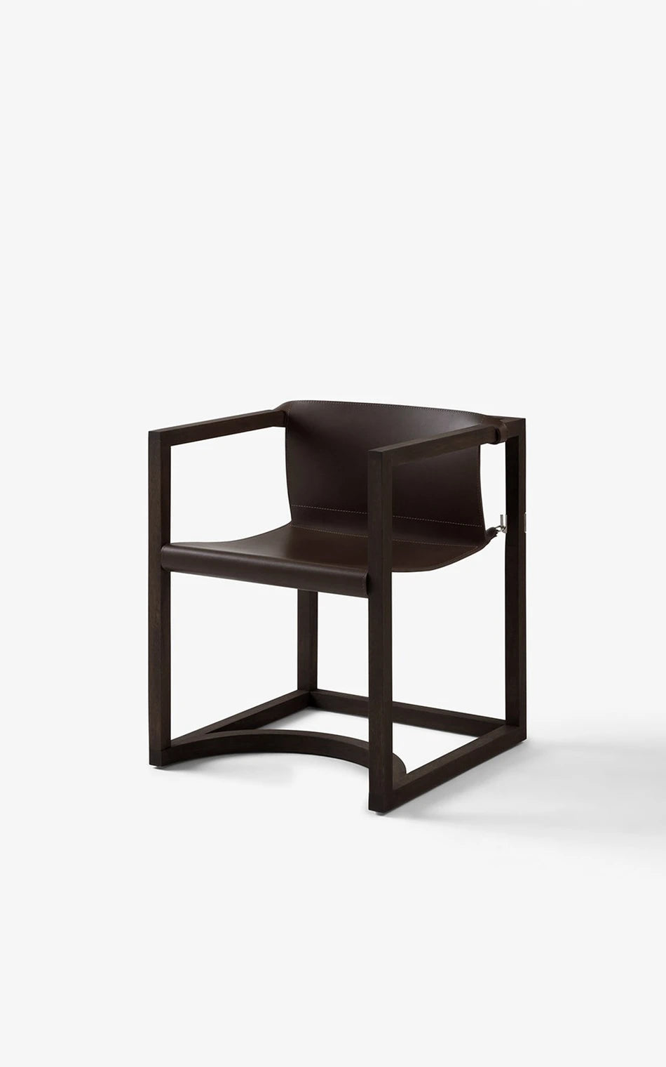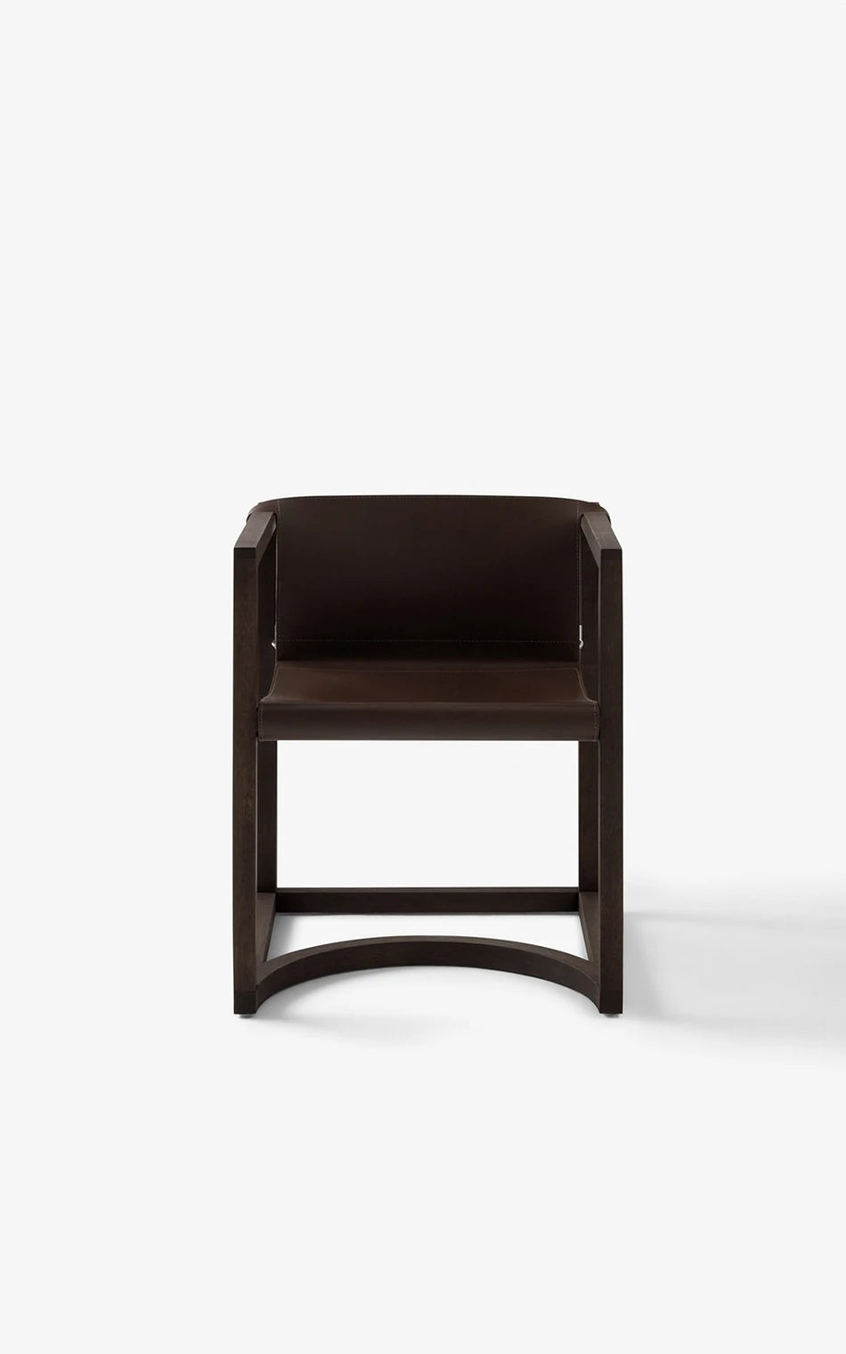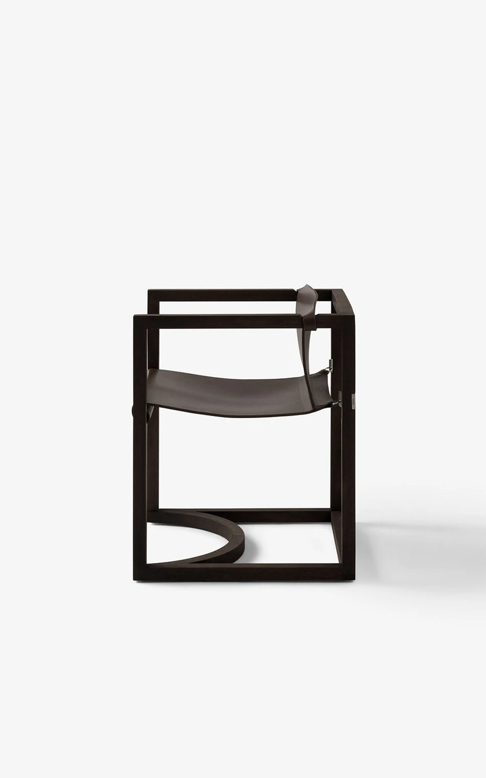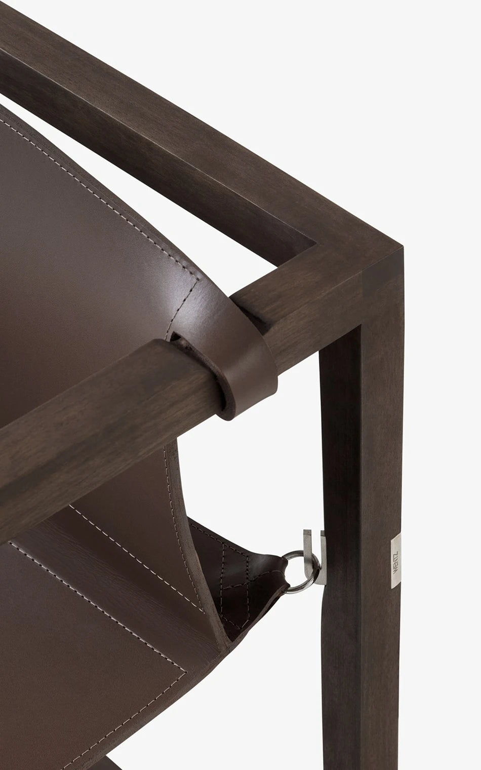 The Capa Chair is a piece that seeks to highlight a simple yet highly detailed geometry. The rigidity of the structure is softened by the suspended leather seat and backrest, attached only at the ends with custom stainless steel fittings that bring subtlety and elegance to the design.