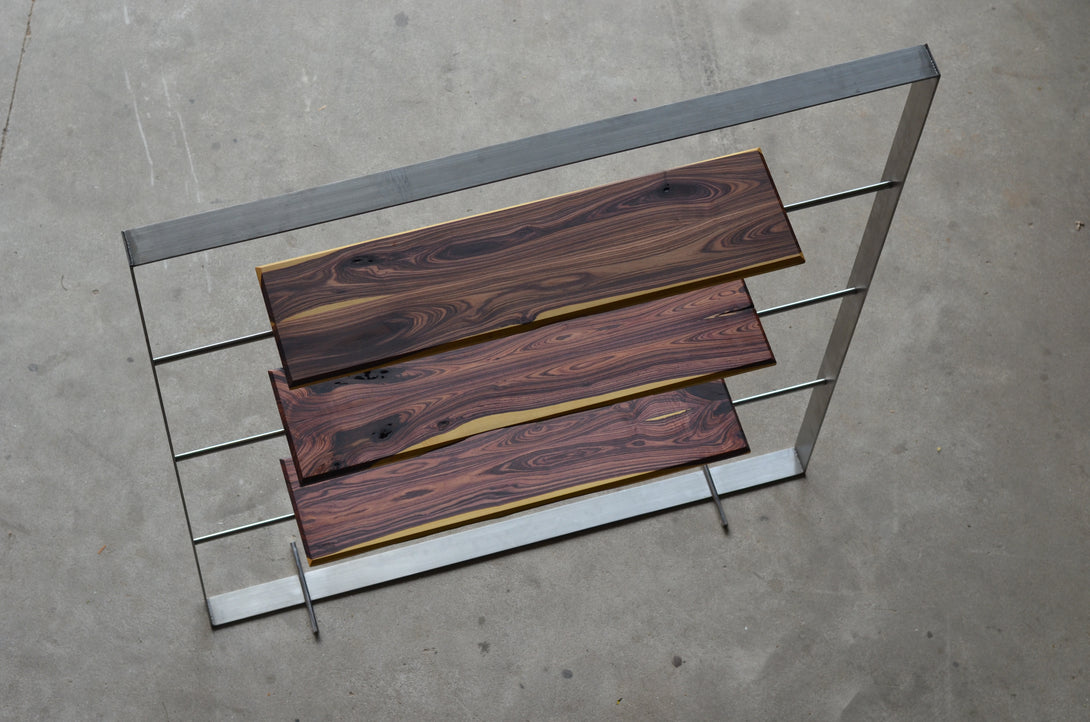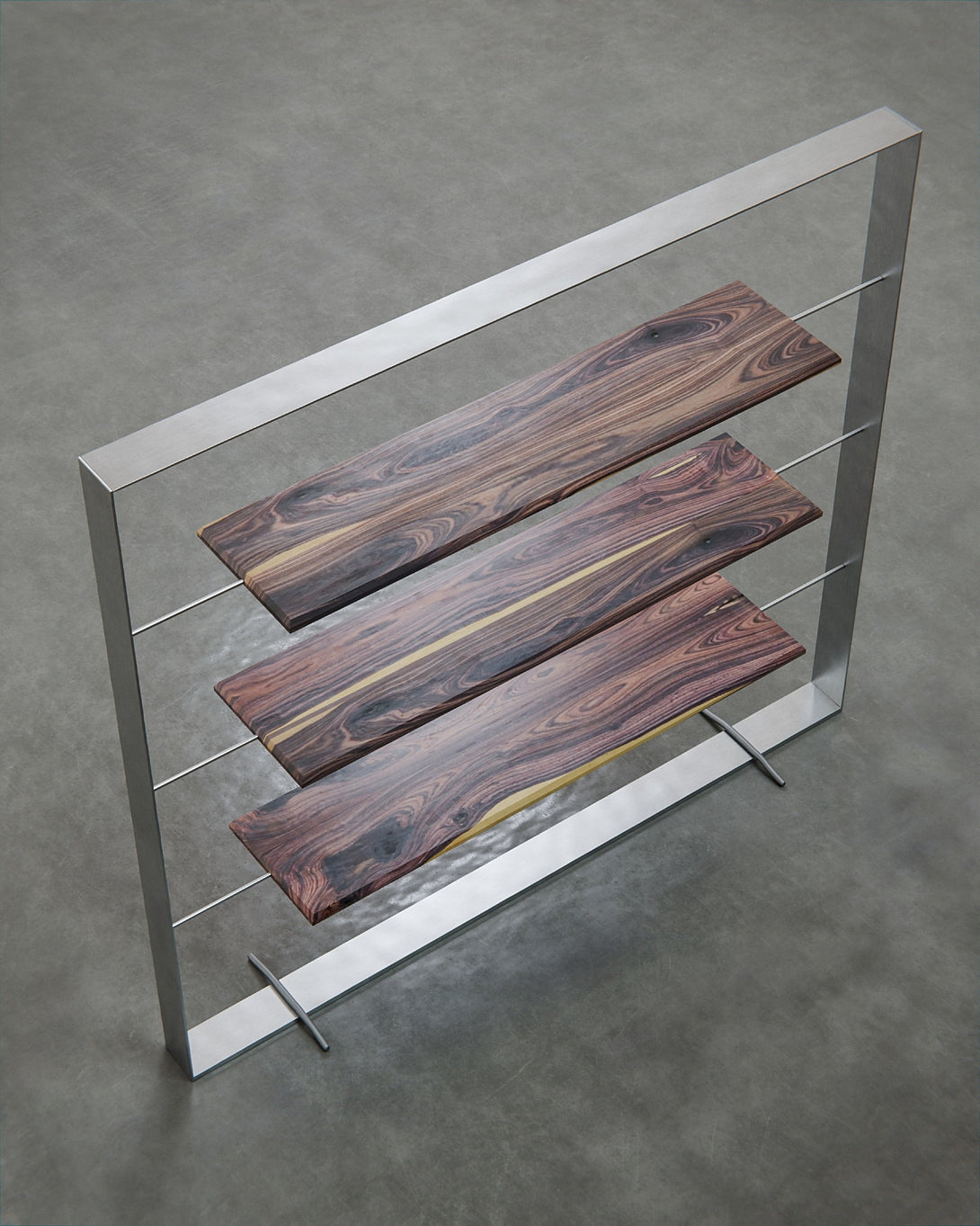 It is made from solid wood. The structure can be made of stainless steel (polished, brushed, rose, or gold) or painted in black, white, gray, green, and brown.