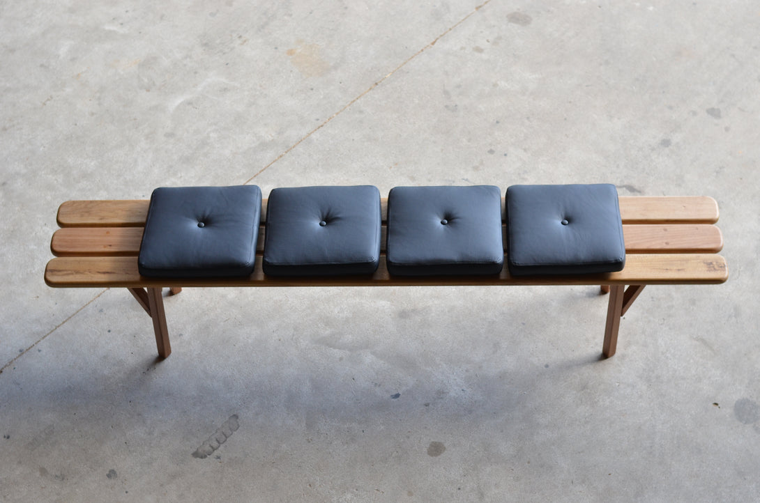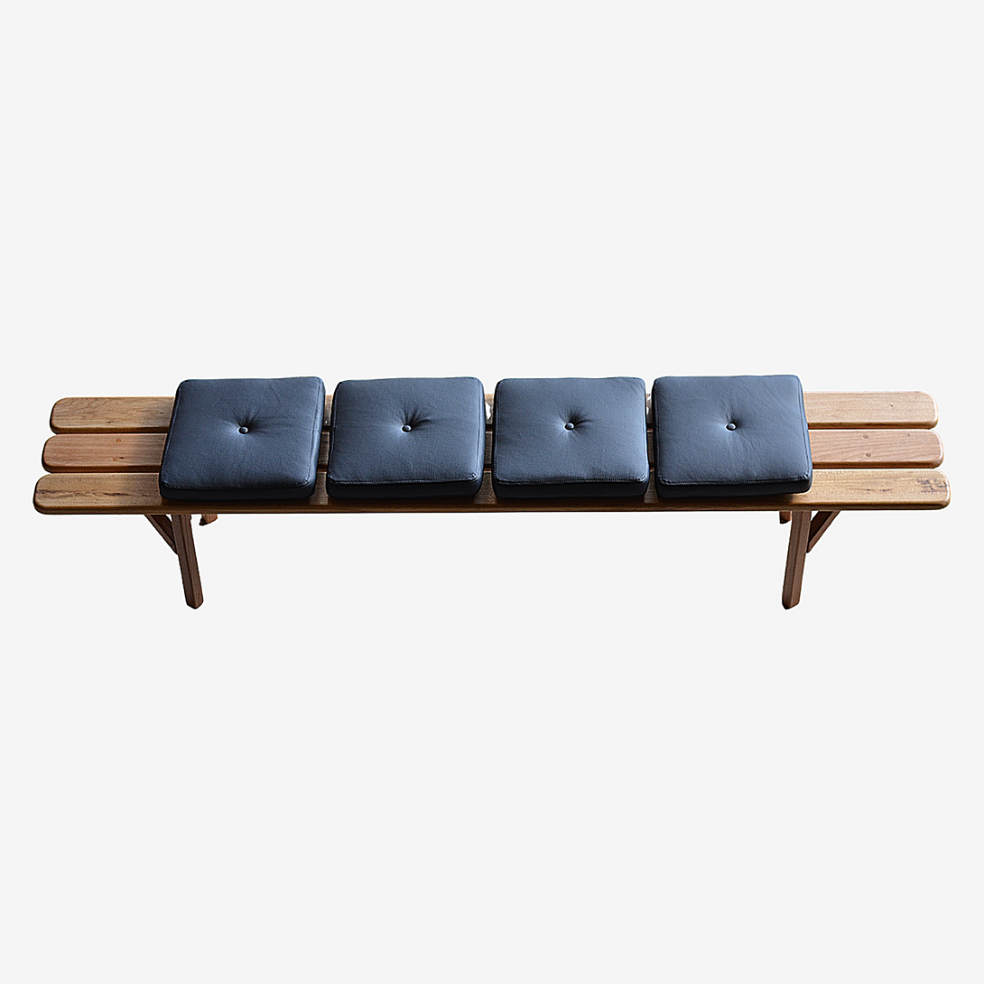 The Decado bench is constructed in various lengths, depths, and heights. It is entirely made from solid woods, with options such as violet, louro gamela, sucupira, tauarí, and carbonized. The cushions are upholstered with a variety of fabrics. Prices may vary depending on the chosen lengths.