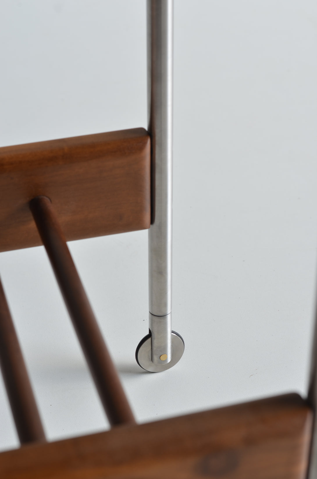 It is entirely crafted from solid woods. The structure can be made of stainless steel (polished, brushed, rose, or gold) or painted in black, white, gray, green, and brown. The tray can be made from stone, granite, marble, or glass.