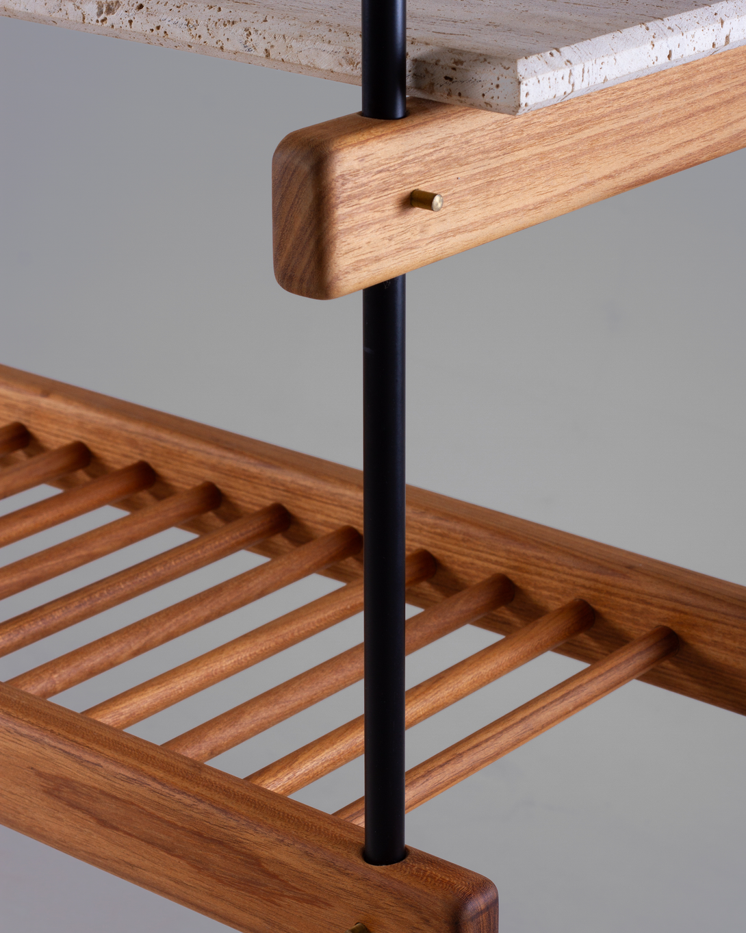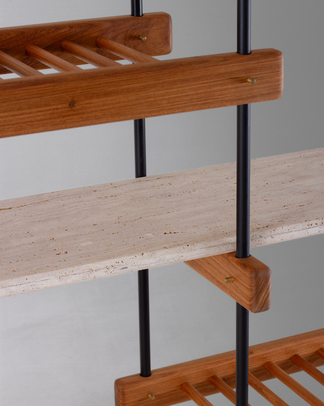 The Estrado shelf is a sophisticated and versatile piece. Crafted from high-quality solid wood. Its structure can be customized with stainless steel in the refined versions of polished, brushed, rose, or gold, or add a splash of color with finishes painted in black, white, gray, green, and brown. With the Estrado, you have the freedom to choose the combinations that best reflect your style while enjoying the robustness and beauty of an exclusive design. Prices vary depending on the selected finishes, allowing each piece to be unique and tailored to your needs.