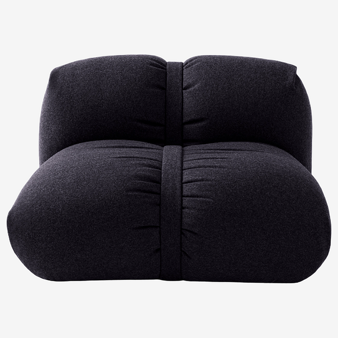 Experience the ultimate in relaxation with our lounge chair, expertly crafted using only foam and feathers, eliminating the need for a hard core or frame. This innovative design is beautifully complemented by high-resistance polyester stripes, elegantly covered with the same premium fabric as the sofa, ensuring a seamless aesthetic. Enhanced by custom stainless steel hardware, the chair exudes modern sophistication. Its black painted MDF base offers a sleek and stable foundation, making it the perfect fusion of style and comfort for any interior.