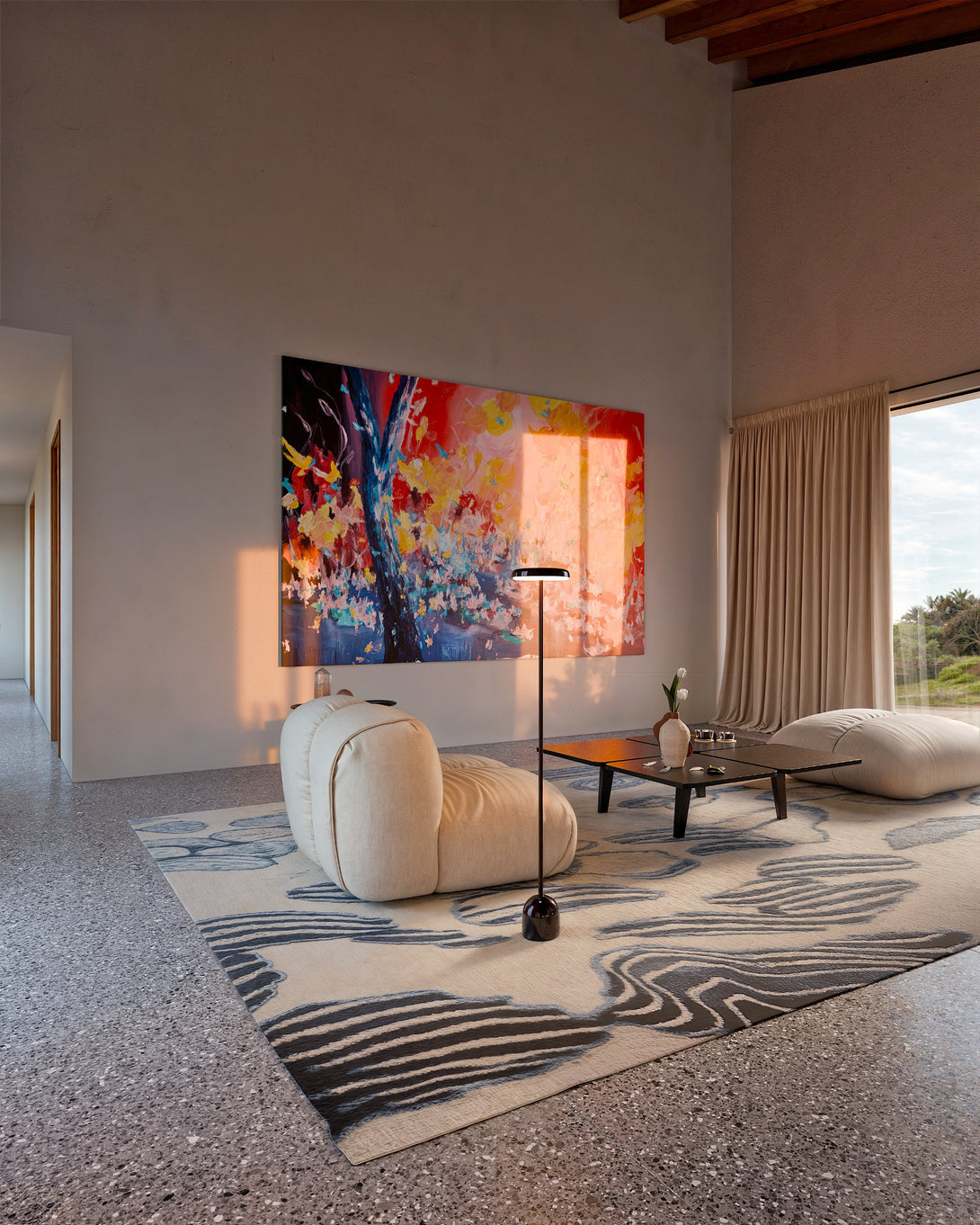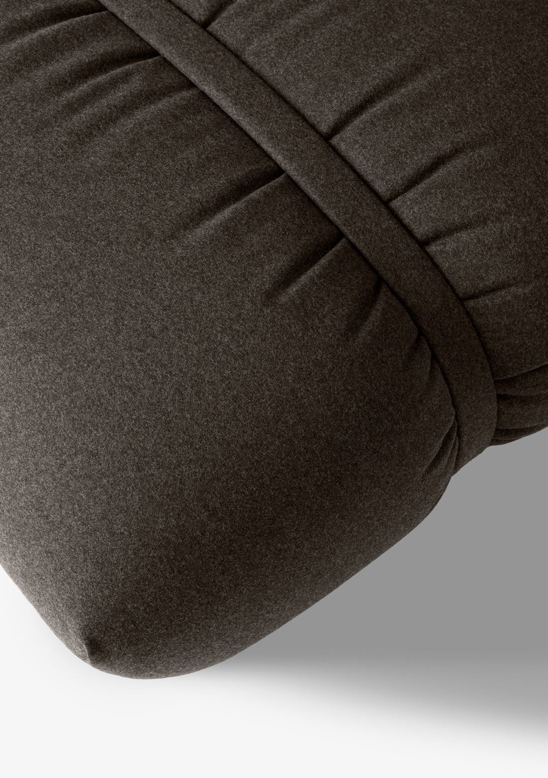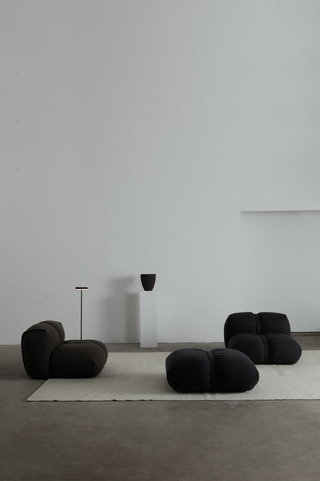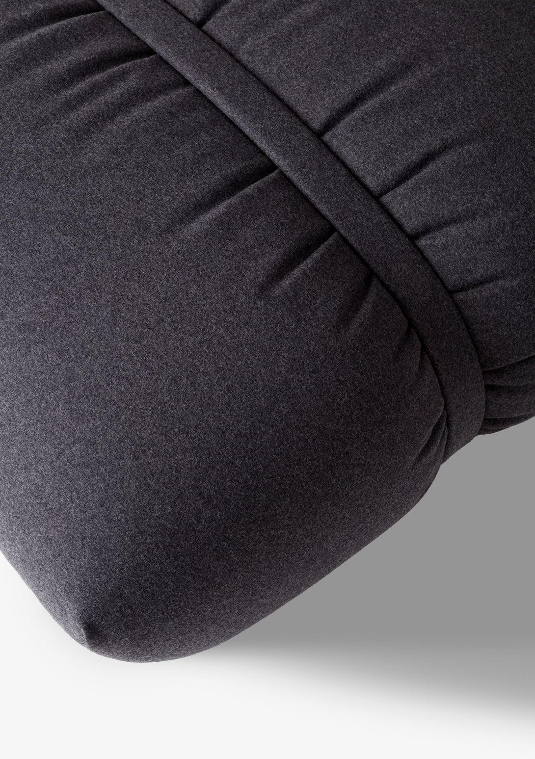 Introducing the Pouf Fita. It draws its inspiration from the casualness of improvisation. The structure is limited to foams of different densities that have been wrapped in a single piece of fabric and tied with stripes that unite the different materials in this synthesis of laid-back comfort. Available in two fabric options developed by WENTZ, which have wool as the main raw material. These fabrics represent a new textile path for the brand, using natural fibers and traditional weaving techniques.