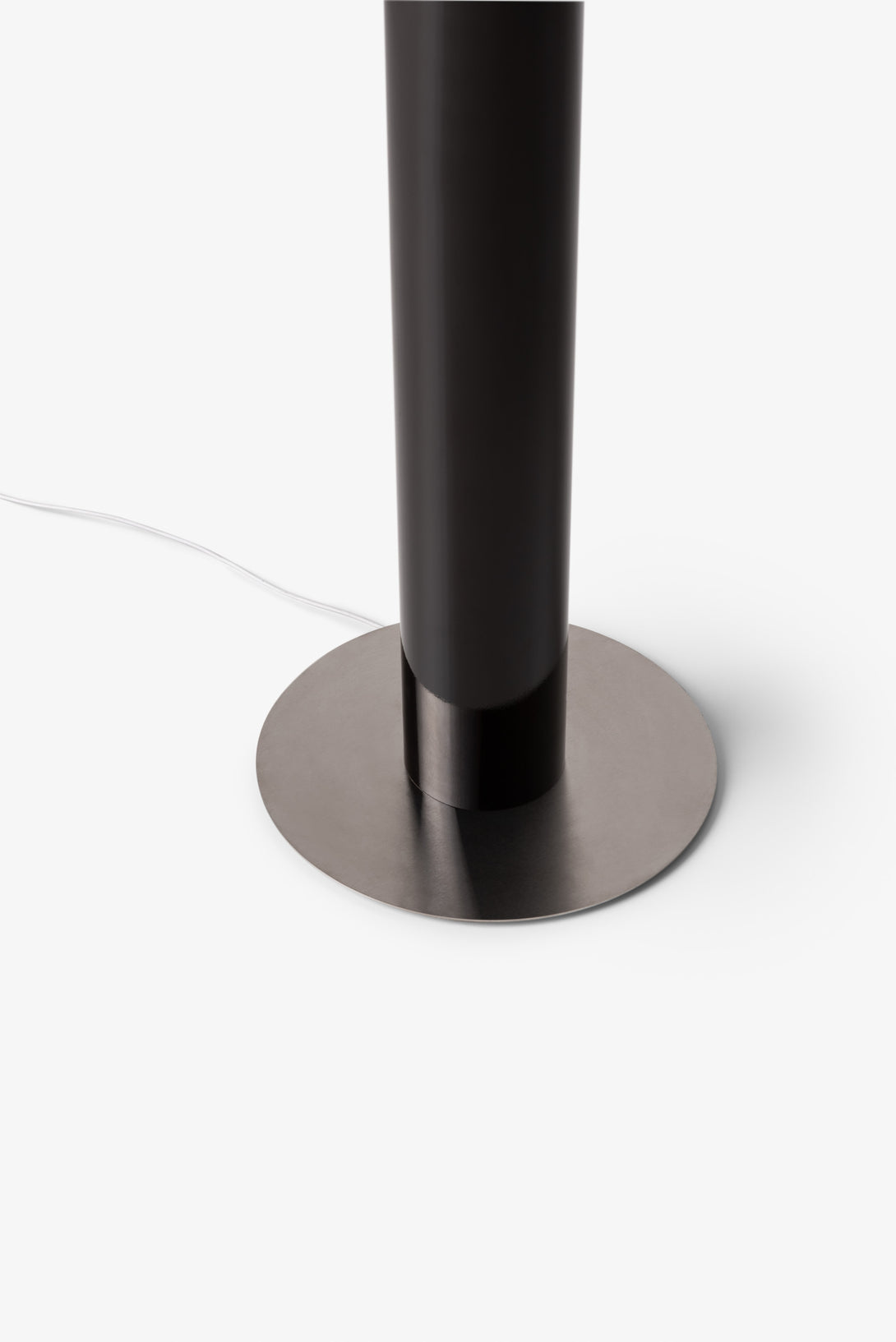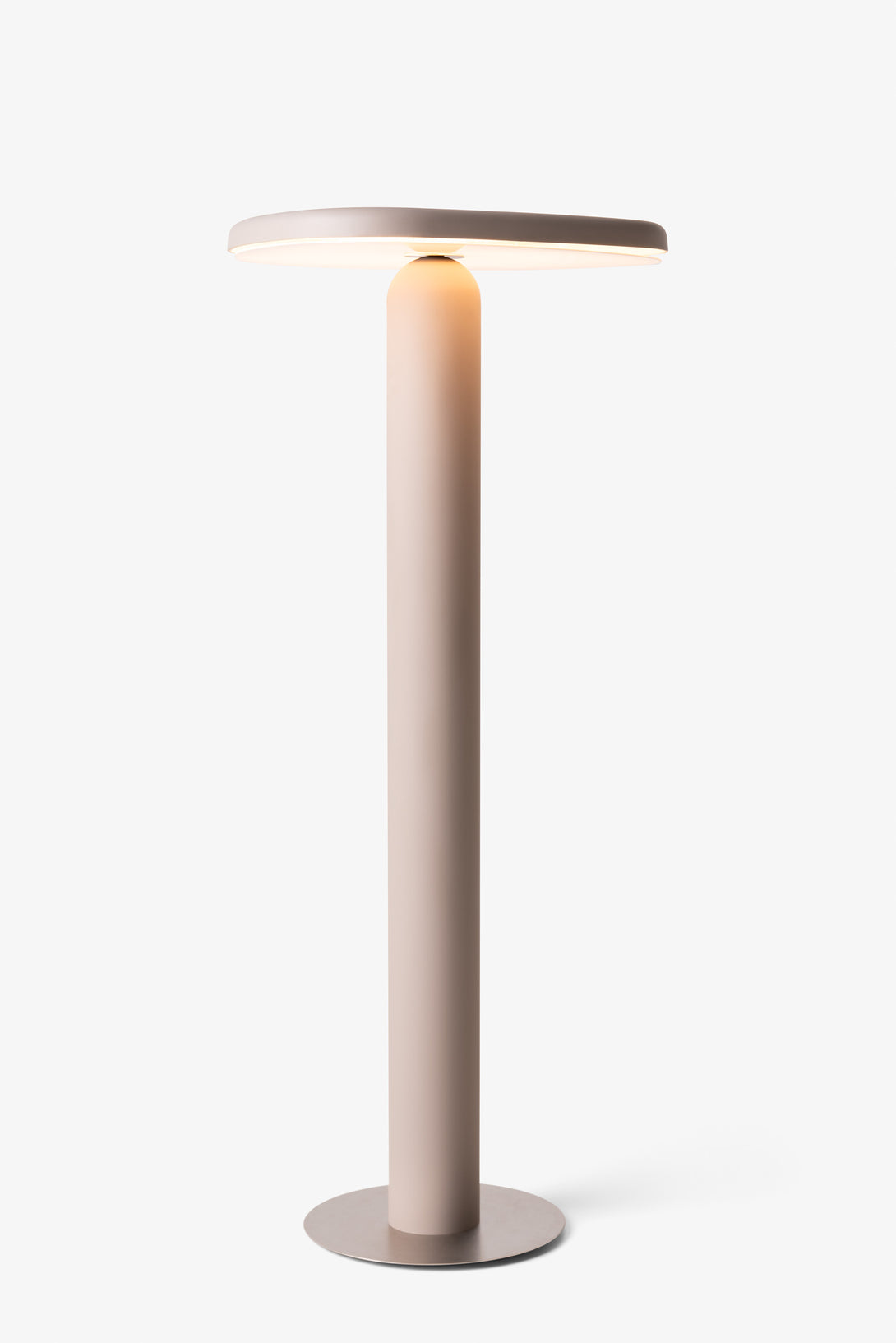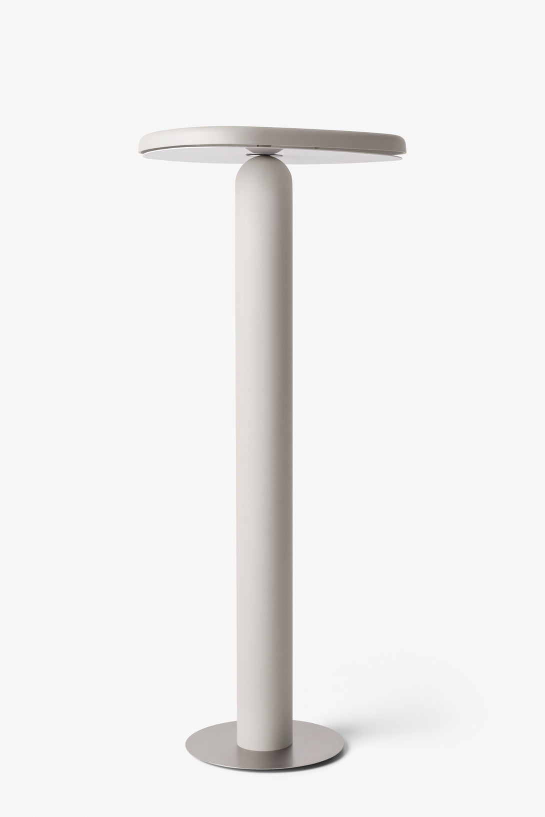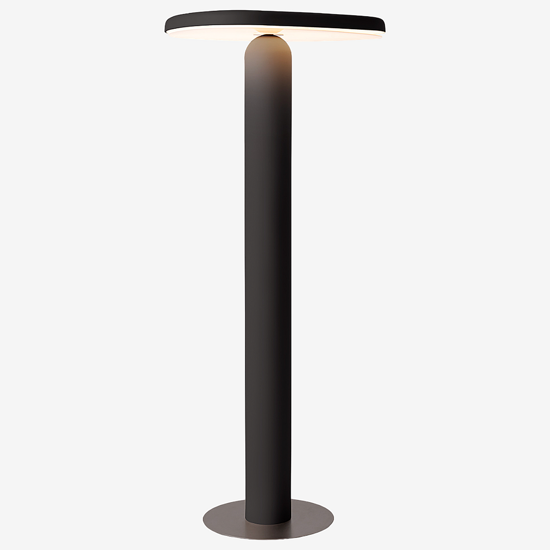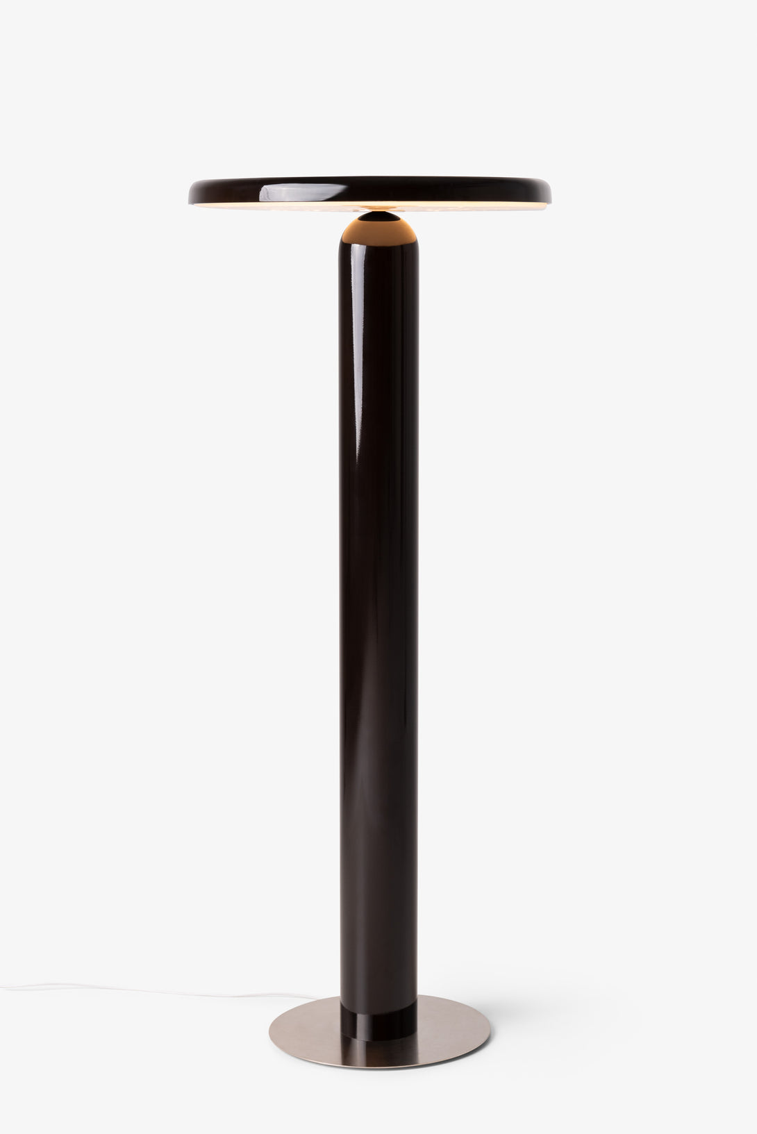 Floor lamp offering diffused light. The body is crafted from aluminum with a matte liquid paint finish and soft-touch varnish available in Off White, Off Black, and Cement versions, or a high gloss varnish for the Café version. It features a clear glass diffuser made through an artisanal casting process and includes a built-in LED.