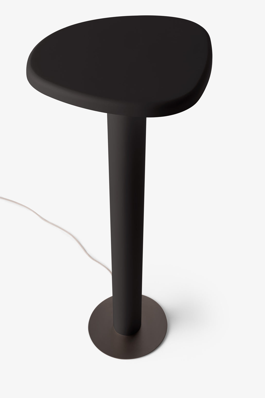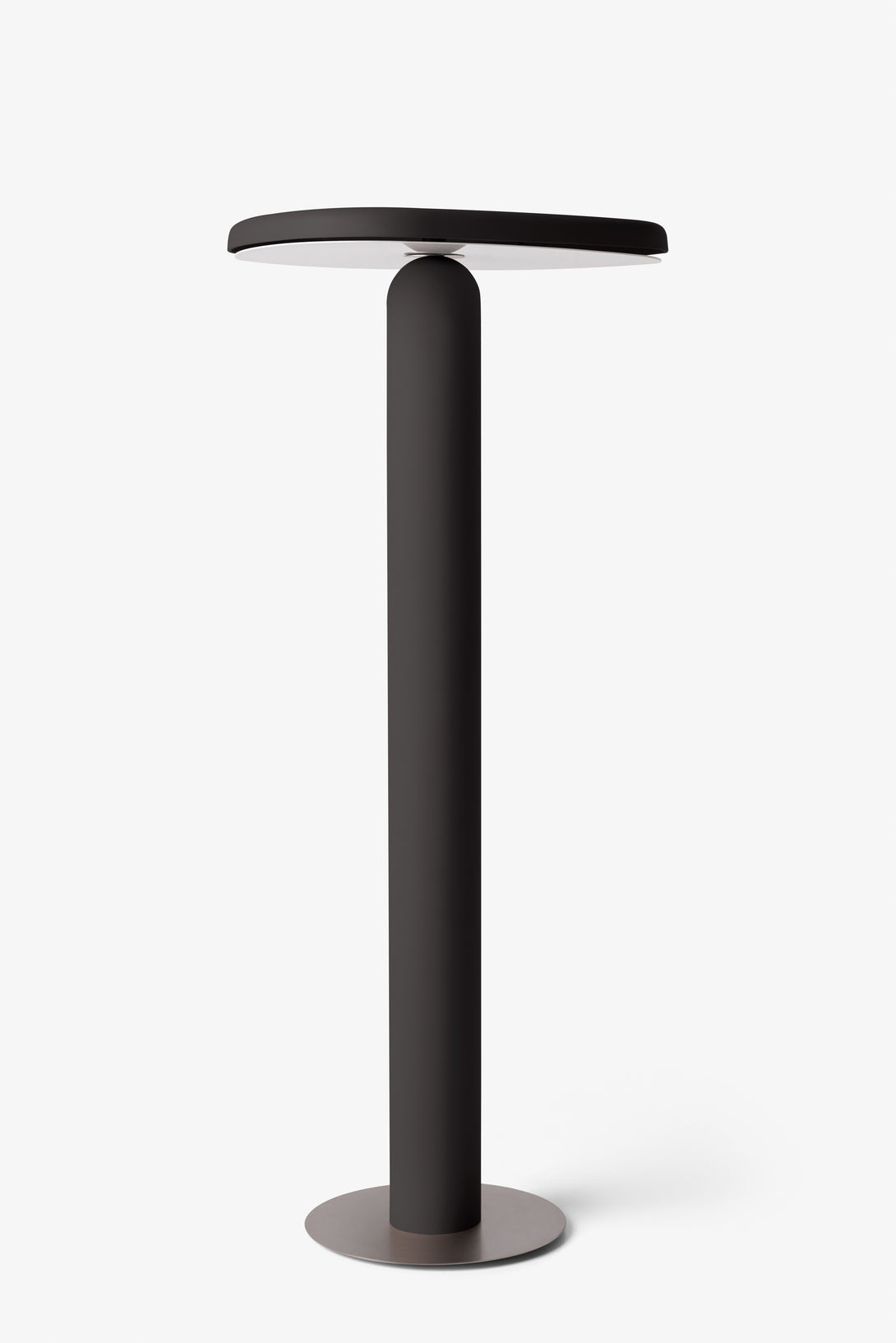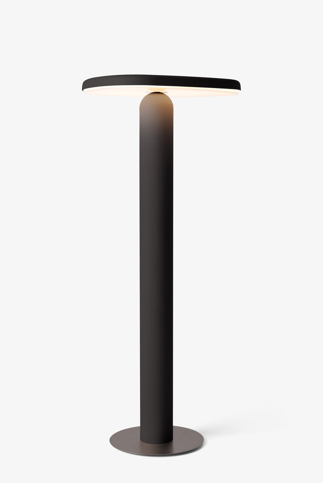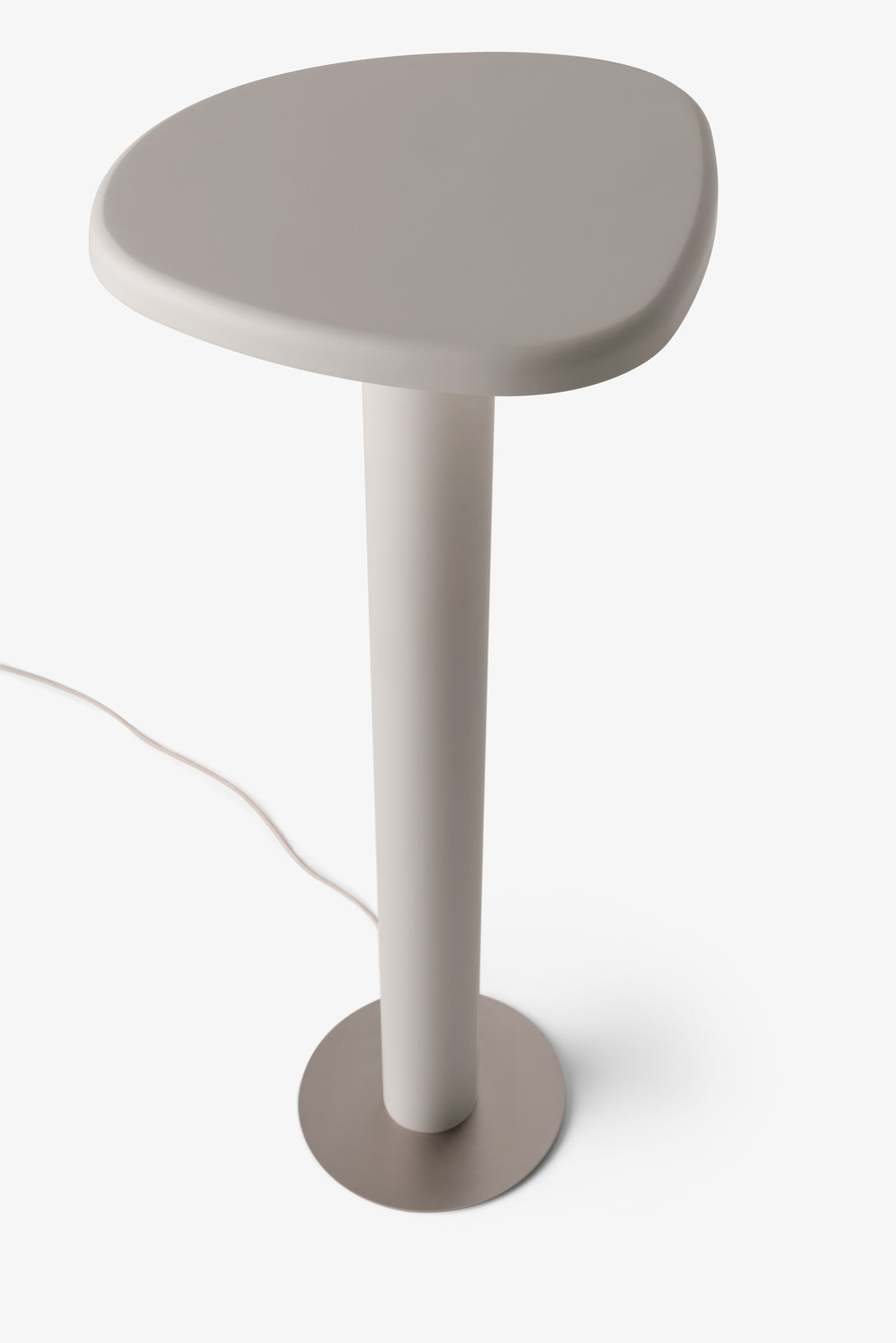 Floor lamp offering diffused light. The body is crafted from aluminum with a matte liquid paint finish and soft-touch varnish available in Off White, Off Black, and Cement versions, or a high gloss varnish for the Café version. It features a clear glass diffuser made through an artisanal casting process and includes a built-in LED.