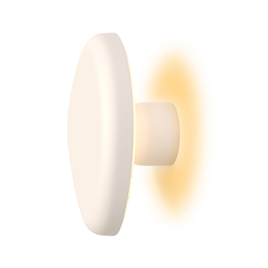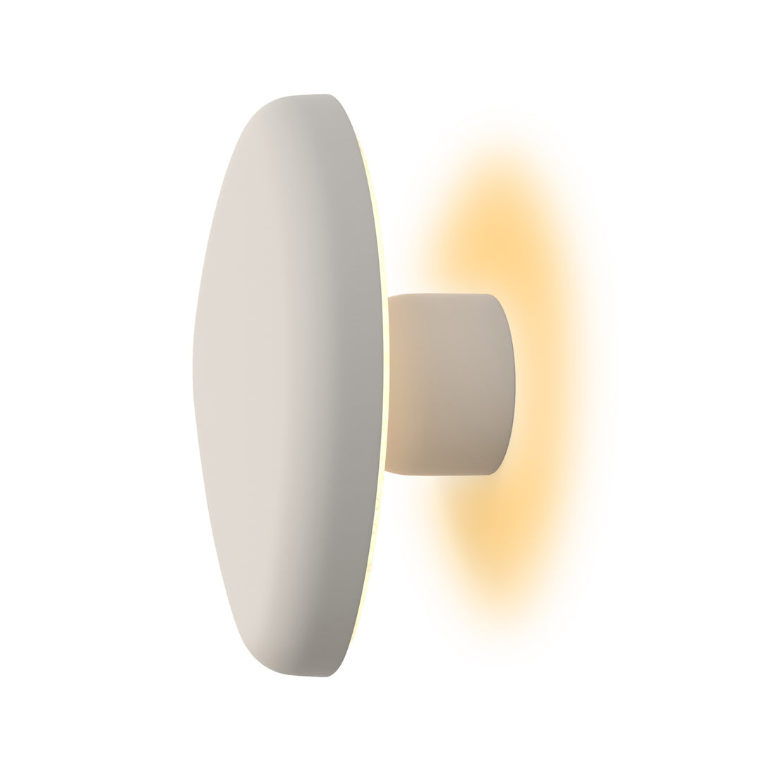 This wall lamp offers indirect, diffused lighting, enhancing any space with its sophisticated design. It features an aluminum body finished in either a matte liquid paint with a soft-touch varnish, available in Off White, Off Black, and Cement versions, or a high gloss varnish in the Café version. The lamp is equipped with an acrylic diffuser and a built-in LED, ensuring both style and functionality.