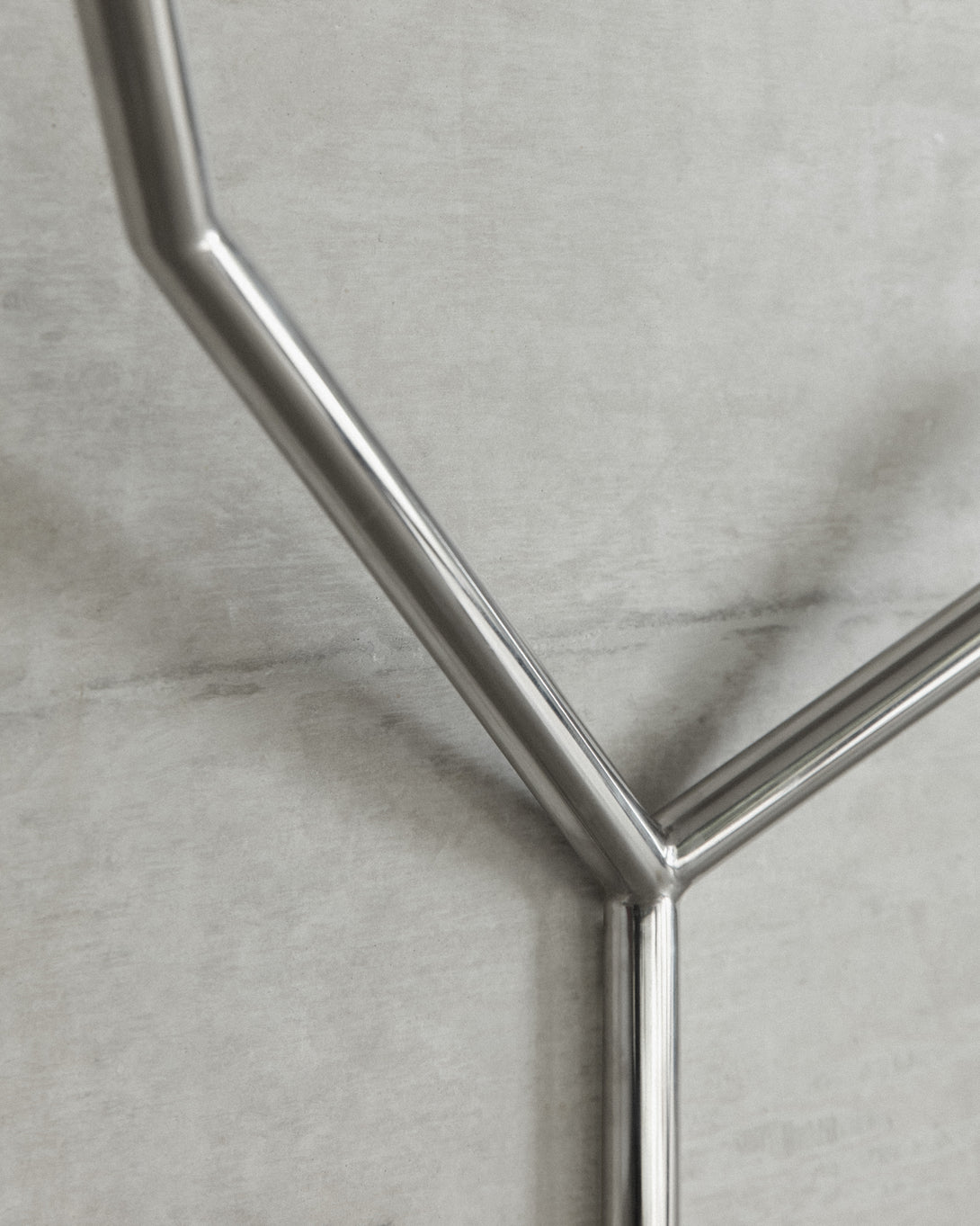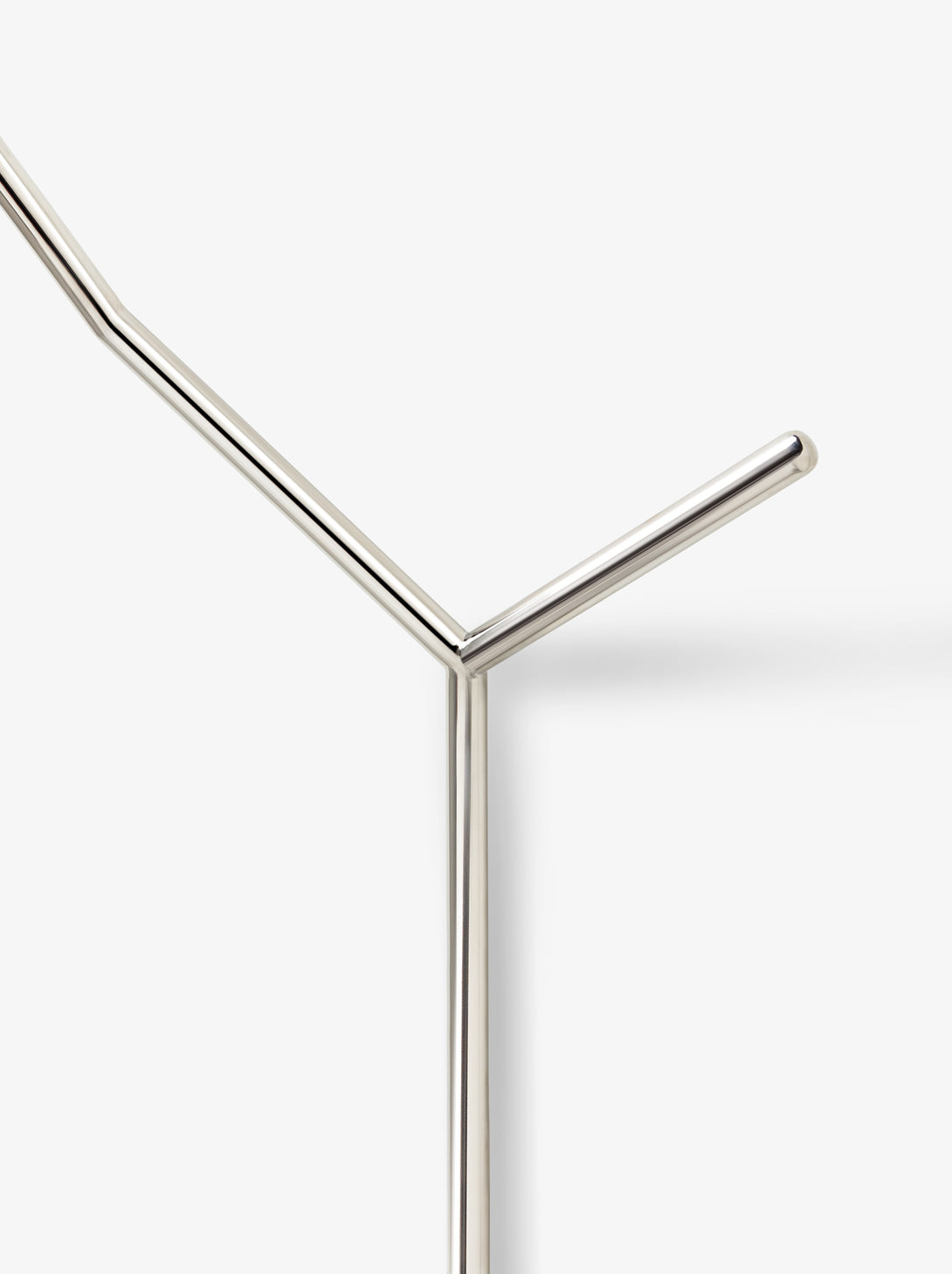 The Galho Coat Rack gives the impression that it was found during a walk in nature and used as a decorative object where clothes can be casually hung. The stainless steel mimics organic shapes and creates a contrast between the rustic and the contemporary. The support from a single point at its center provides a sense of lightness and naturalness.