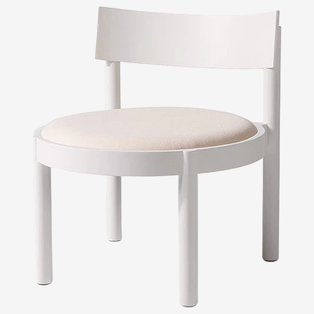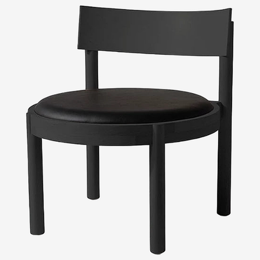 Lounge chair with solid Tauari wood frame. Upholstered seat in recycled cotton (60% recycled cotton + 40% recycled PET) or natural leather.