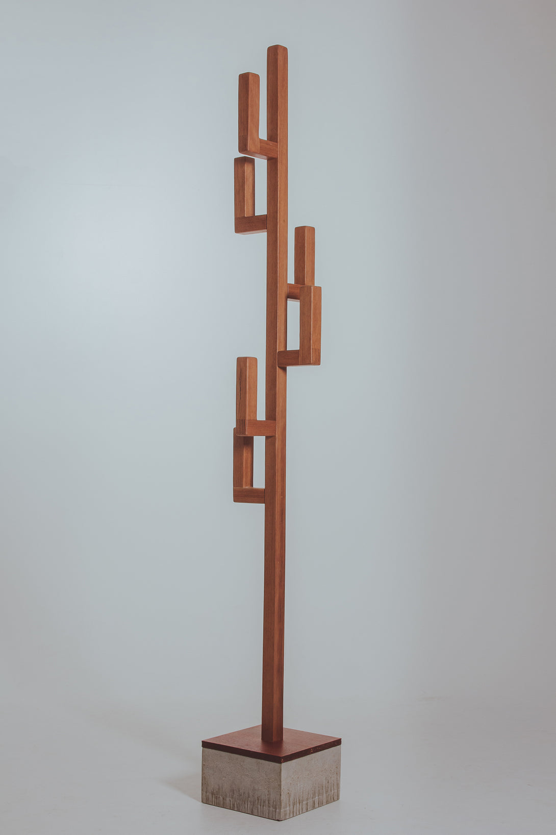 Concrete base, natural finish. Body made of Kiri wood, with natural or painted finish.
