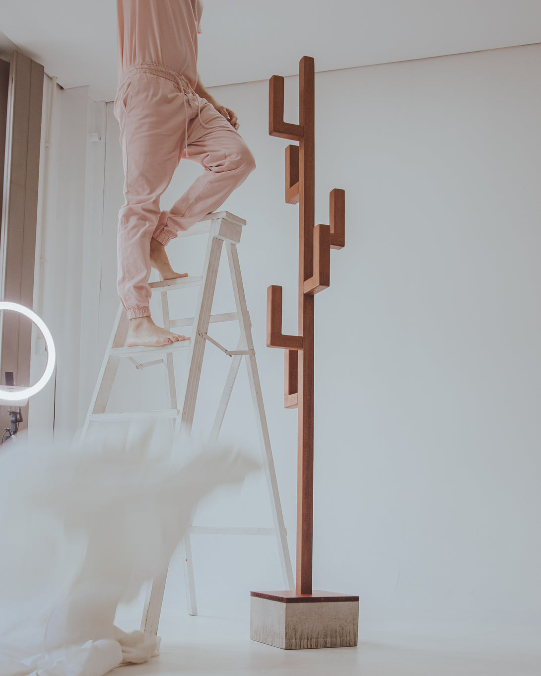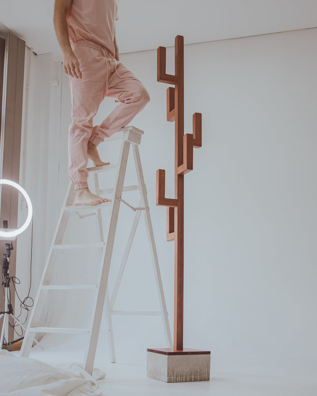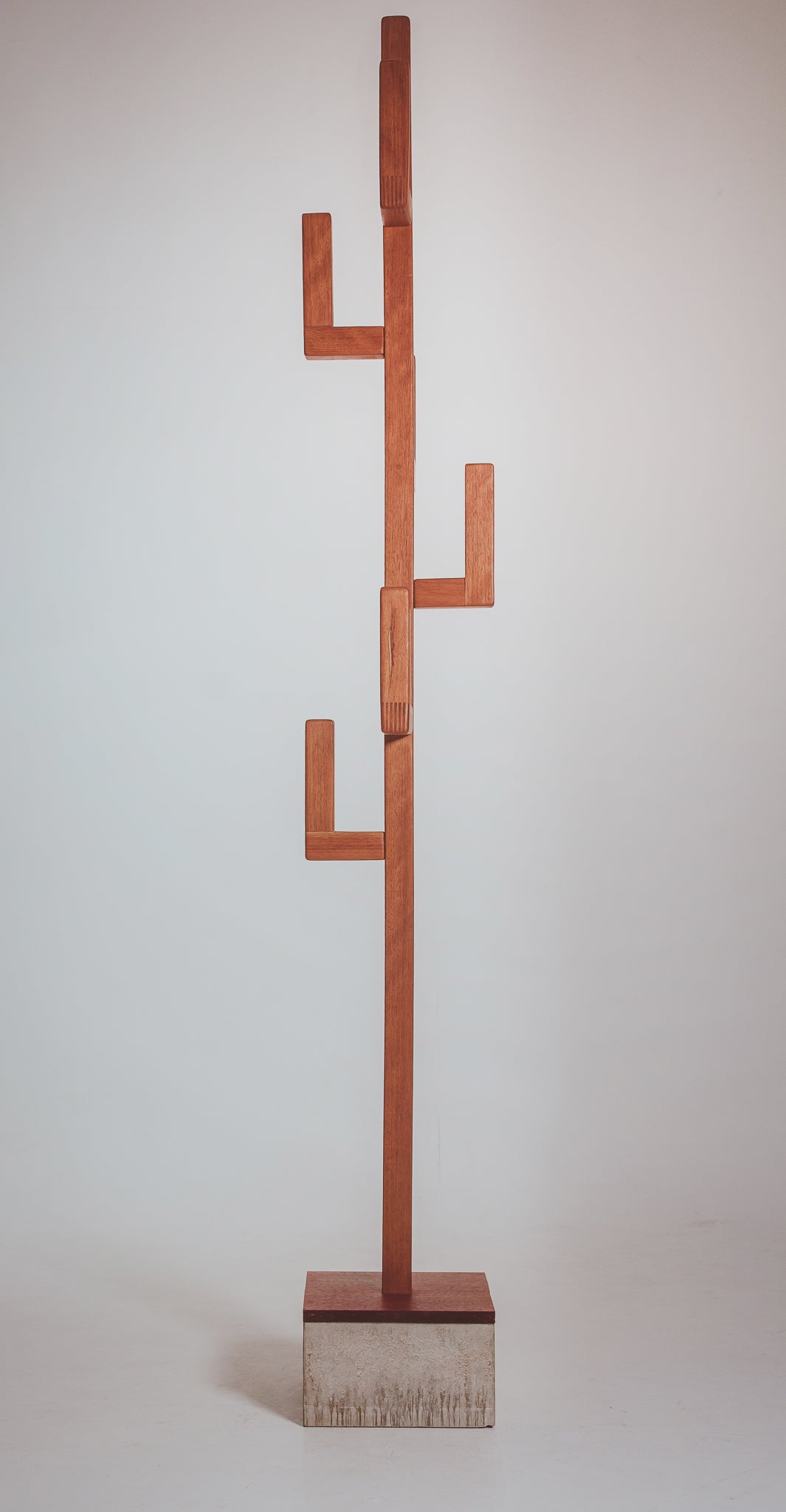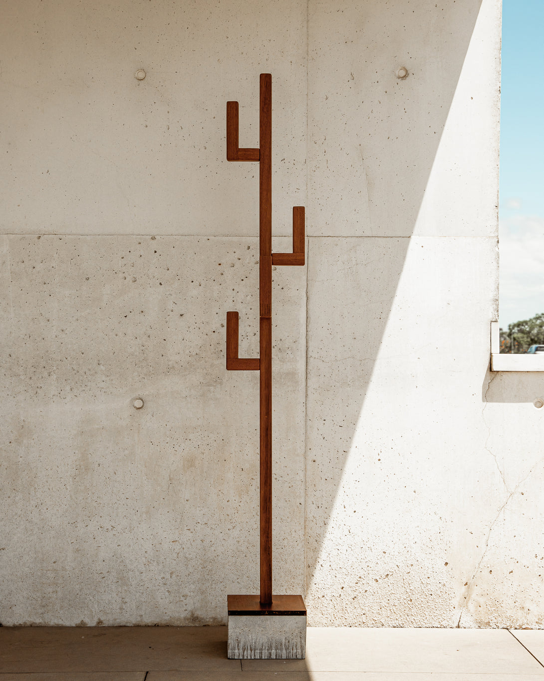 Its unique combination of form and function sets it apart from ordinary coat racks. The base of the Haga Coat Rack is crafted from sturdy concrete, providing excellent stability. The natural finish adds a touch of organic beauty to the overall aesthetic. The body of the coat rack is meticulously crafted from Kiri wood, known for its lightweight and durable qualities. You have the option to keep the natural finish, showcasing the wood's natural grain and warmth, or choose a painted finish to complement your interior decor.