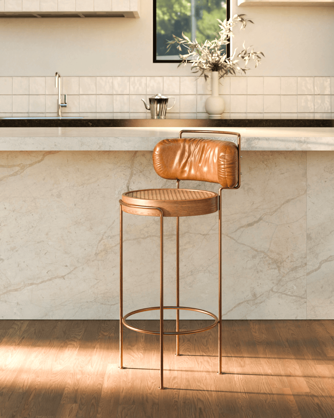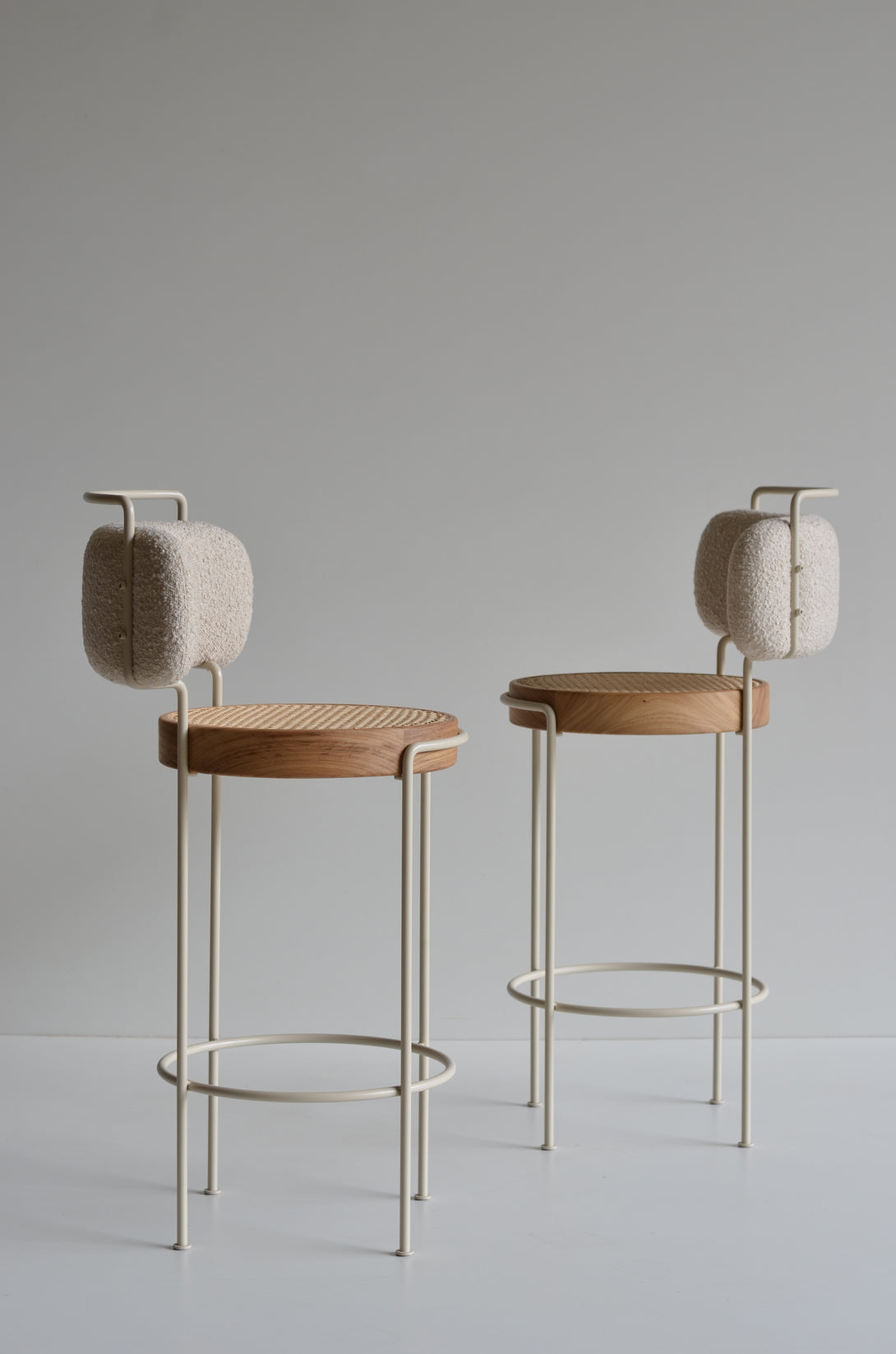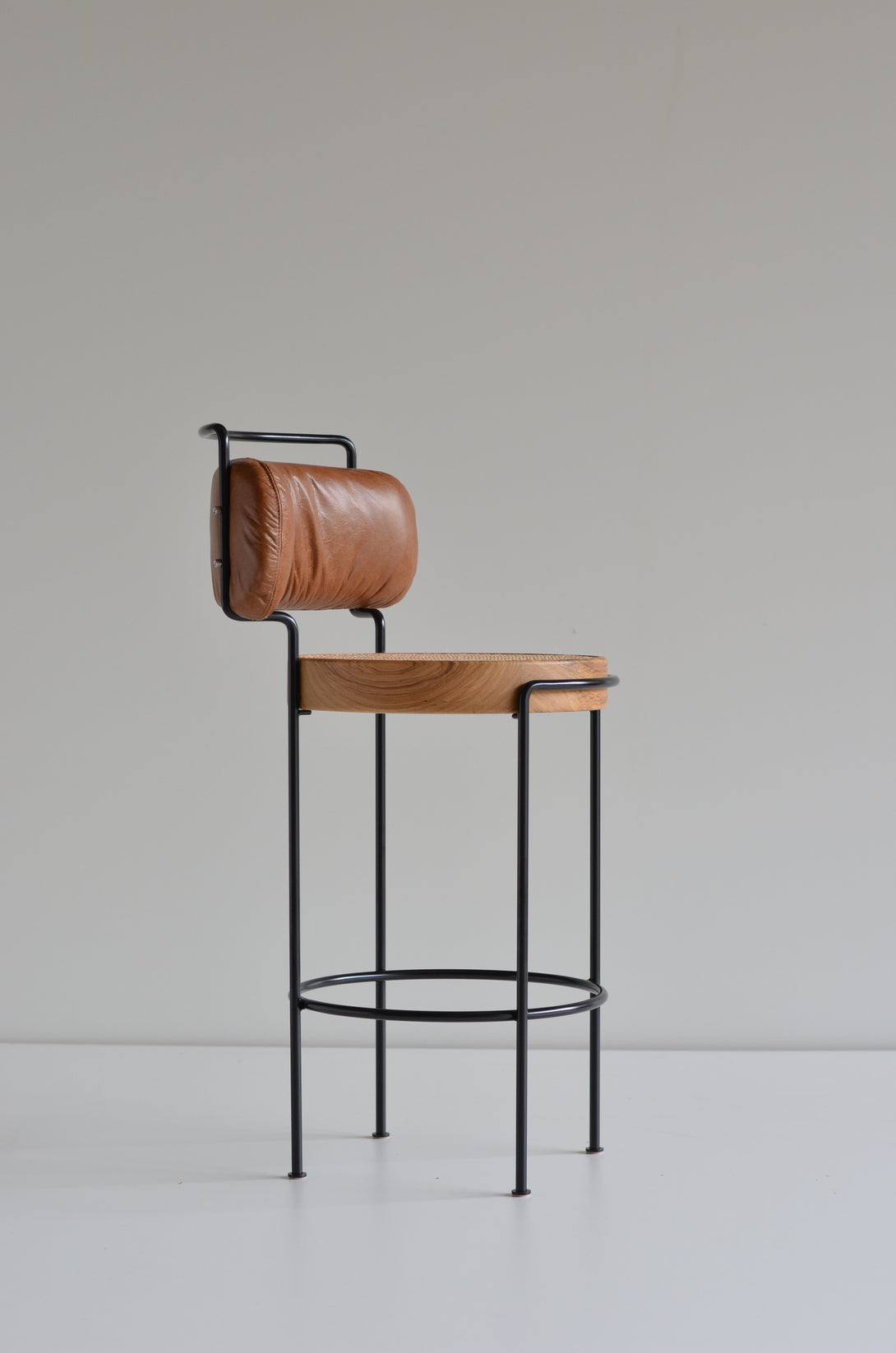 The high Iaiá stool with backrest epitomizes elegance and customization. Entirely crafted from high-quality solid woods, its structure can be made from stainless steel with finishes such as polished, brushed, rose, or gold, or with electrostatic paint in a variety of colors like black, white, gray, green, and brown. The seat can be adorned with black straw, either natural or synthetic, both hand-woven, or upholstered in materials like linen, canvas, leather, or suede. Customize your stool to match your style, with prices varying according to the chosen finishes.