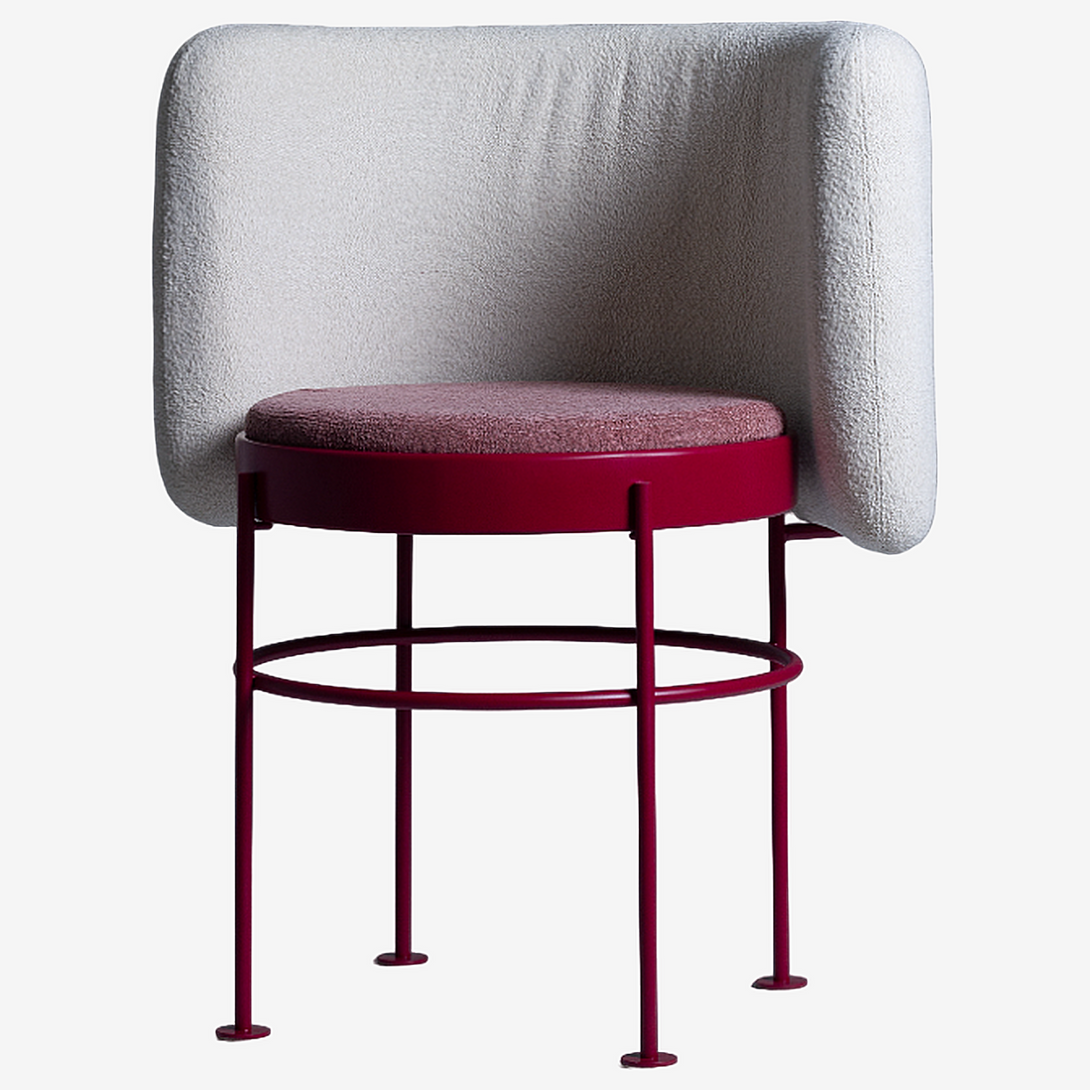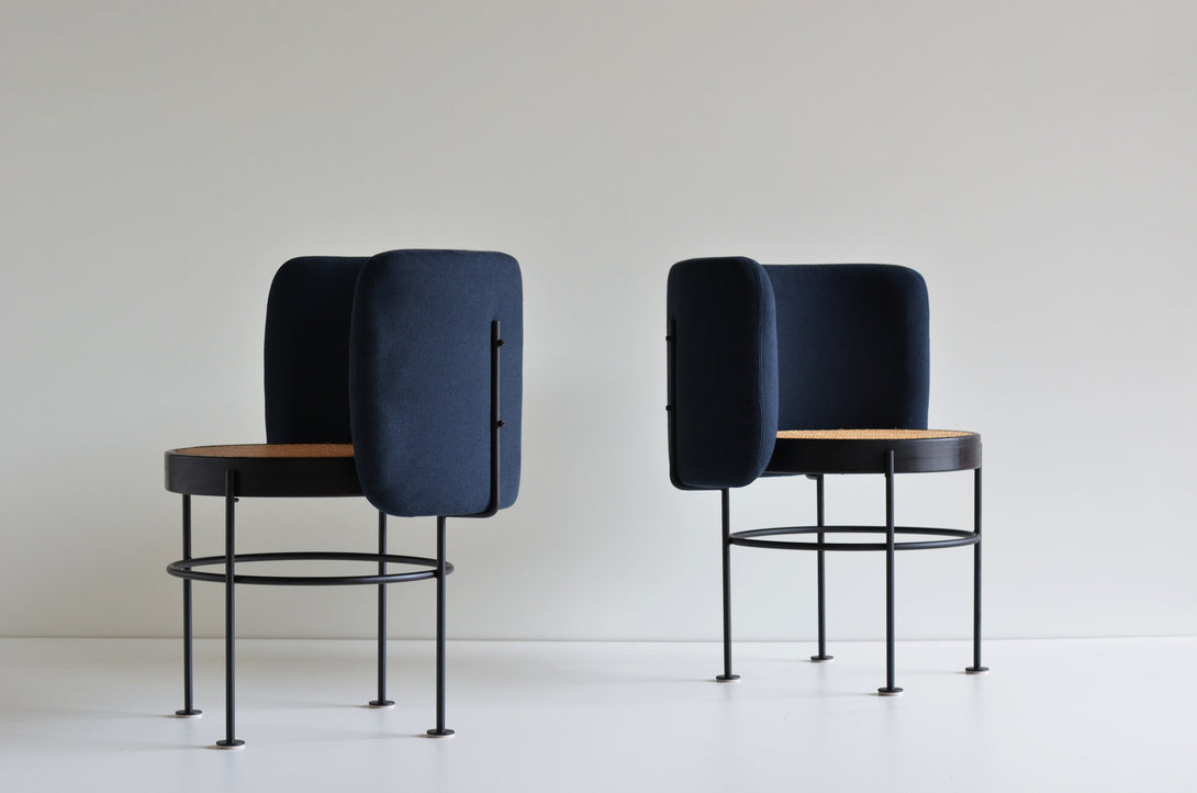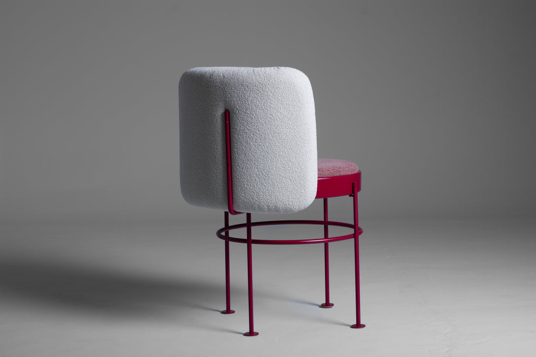 It is entirely made from solid wood. The structure can be made from stainless steel (polished, brushed, rose, or gold) or electrostatic paint in black, white, gray, green, and brown. The seat can be made from natural or synthetic black straw, both hand-woven, or upholstered in linen, canvas, boucle, leather, or suede, as well as an option for a solid wood seat. The backrest can be upholstered in linen, canvas, leather, or boucle.