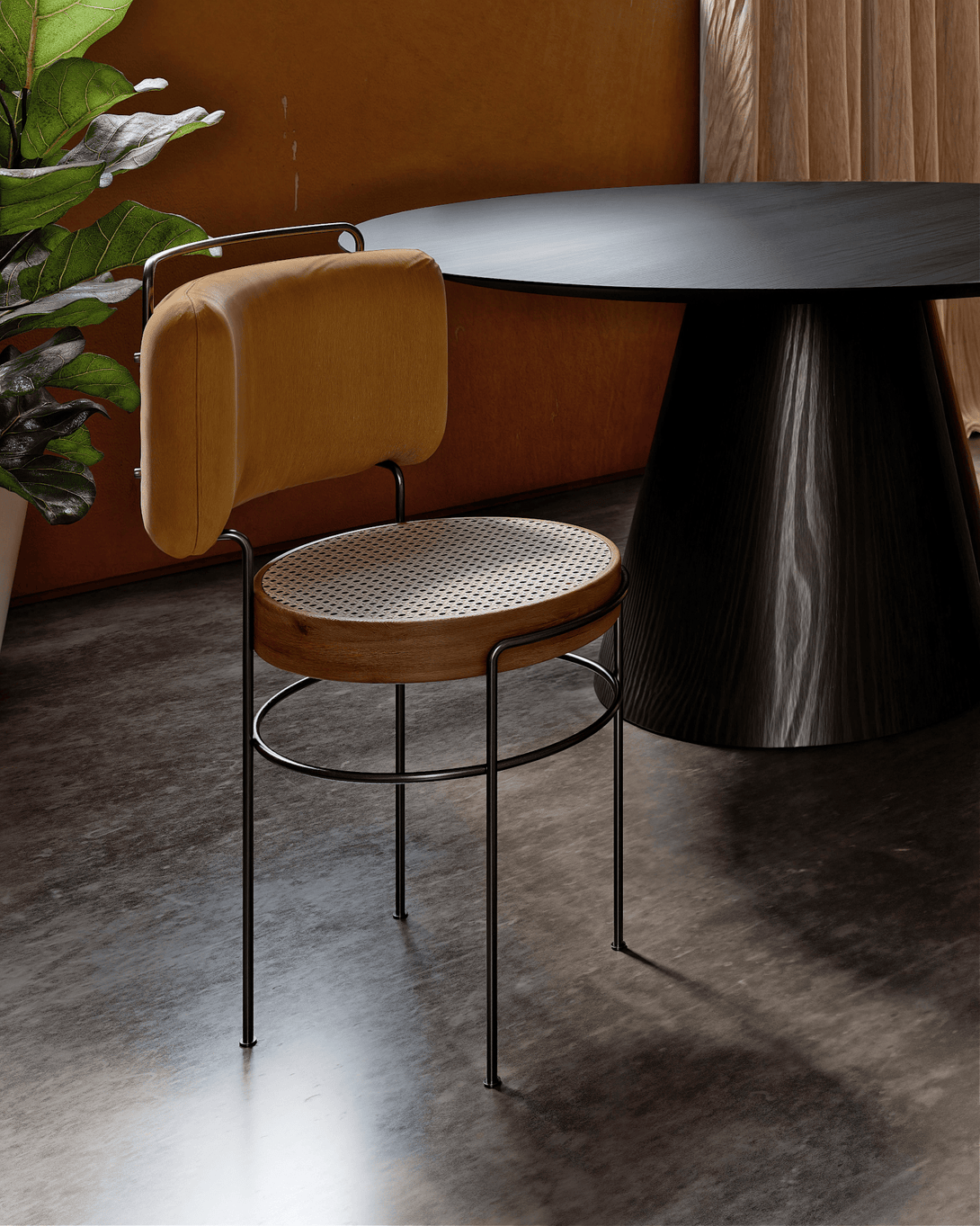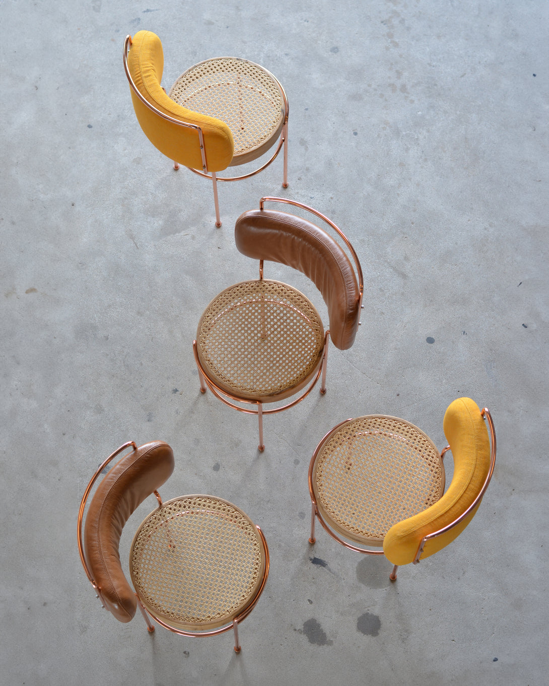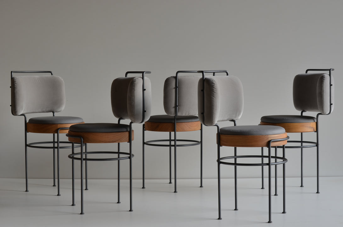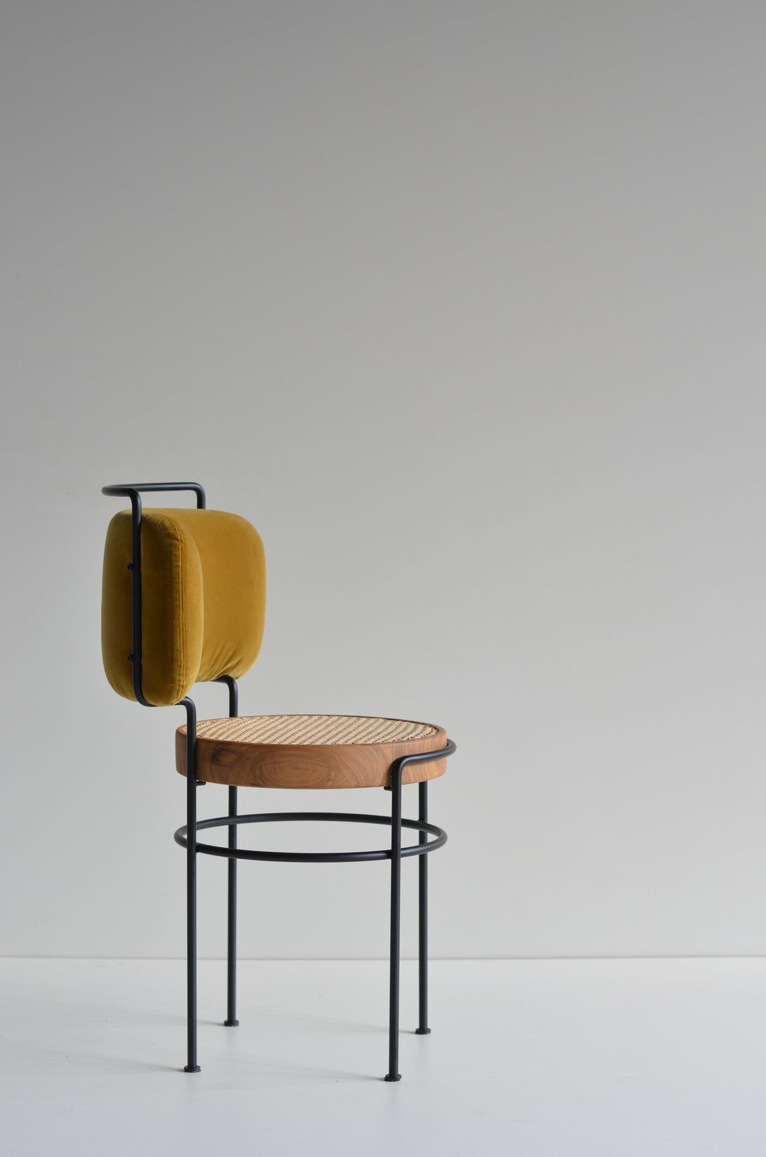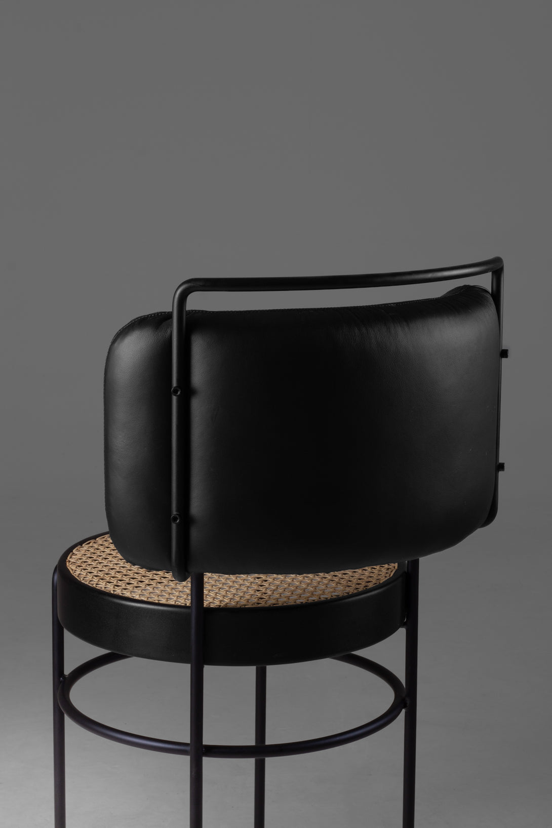 The Iaiá chair is entirely crafted from solid wood. The structure can be made of stainless steel (polished, brushed, rose, or gold) or with electrostatic paint in black, white, gray, green, and brown. It can be produced with either natural or synthetic black straw, both hand-woven, or with an upholstered seat in linen, canvas, leather, or suede.