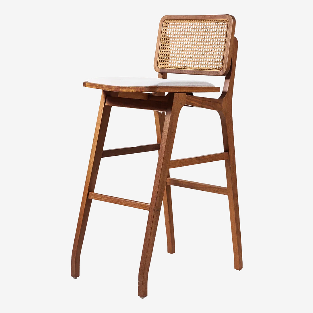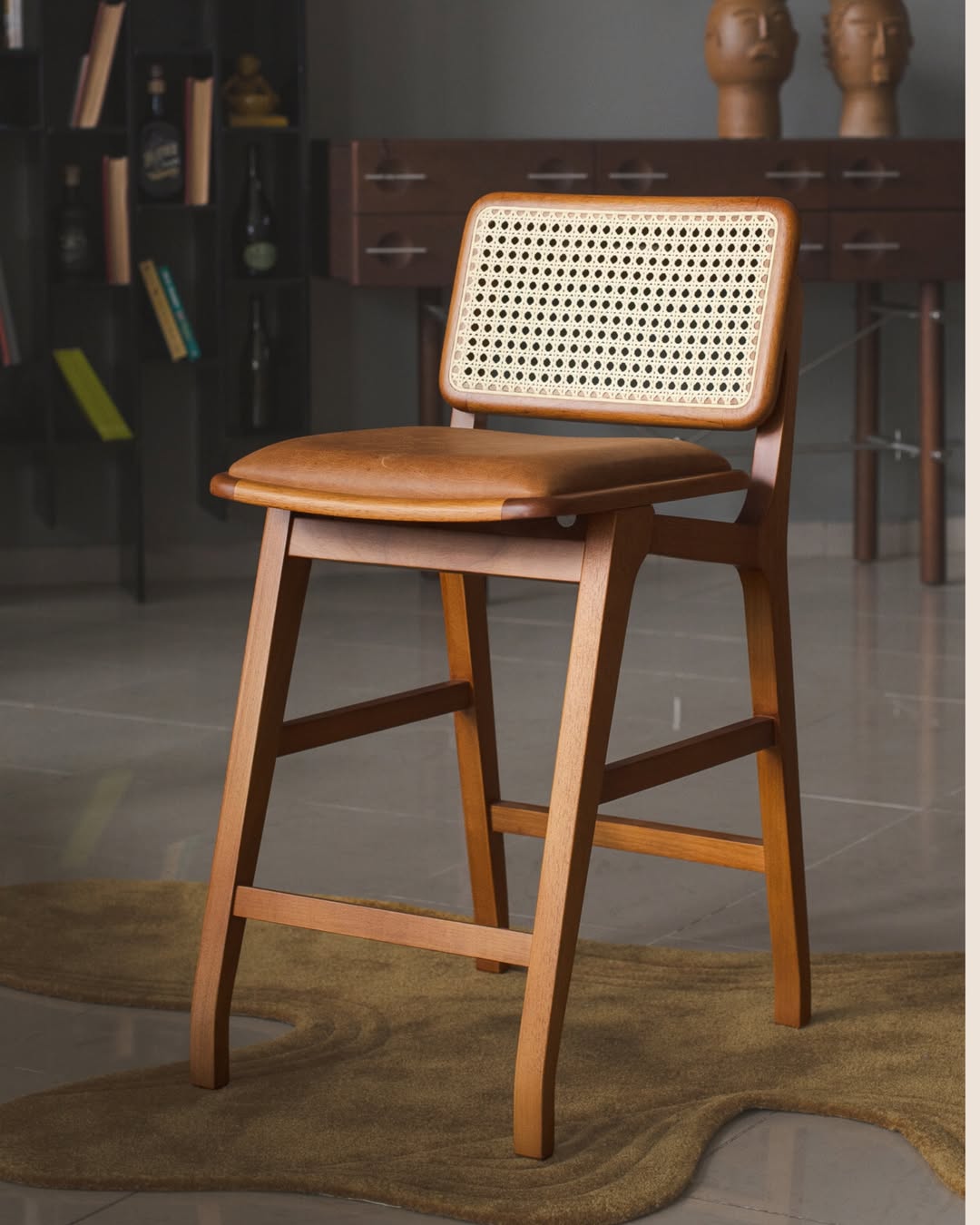 Lenzi High Stool is the result of a contemporary reinterpretation of the traditional Portuguese wicker chair, commonly found in Brazil. Designed for modern and elegant spaces, the piece, despite being lightweight, is extremely durable.