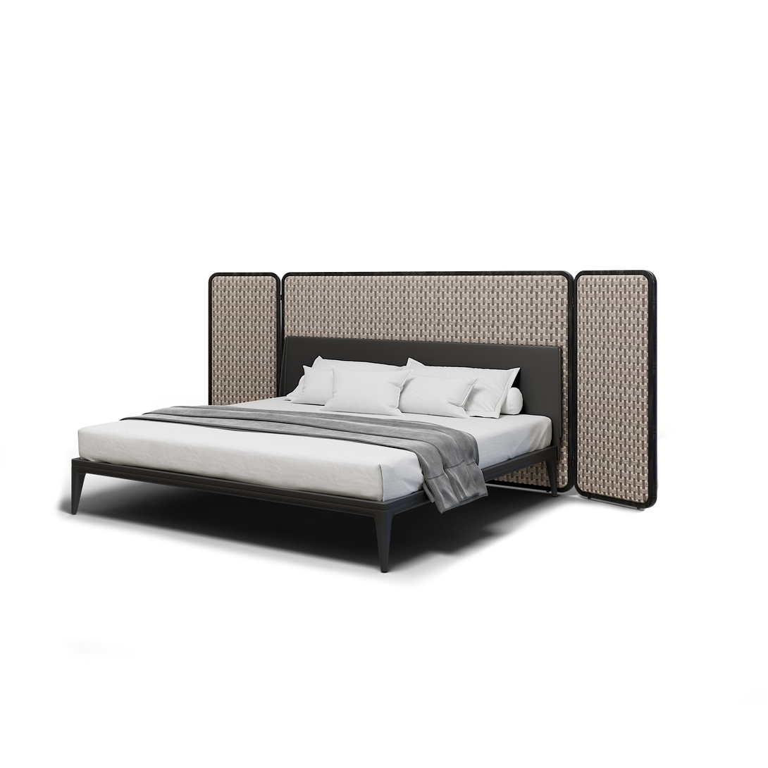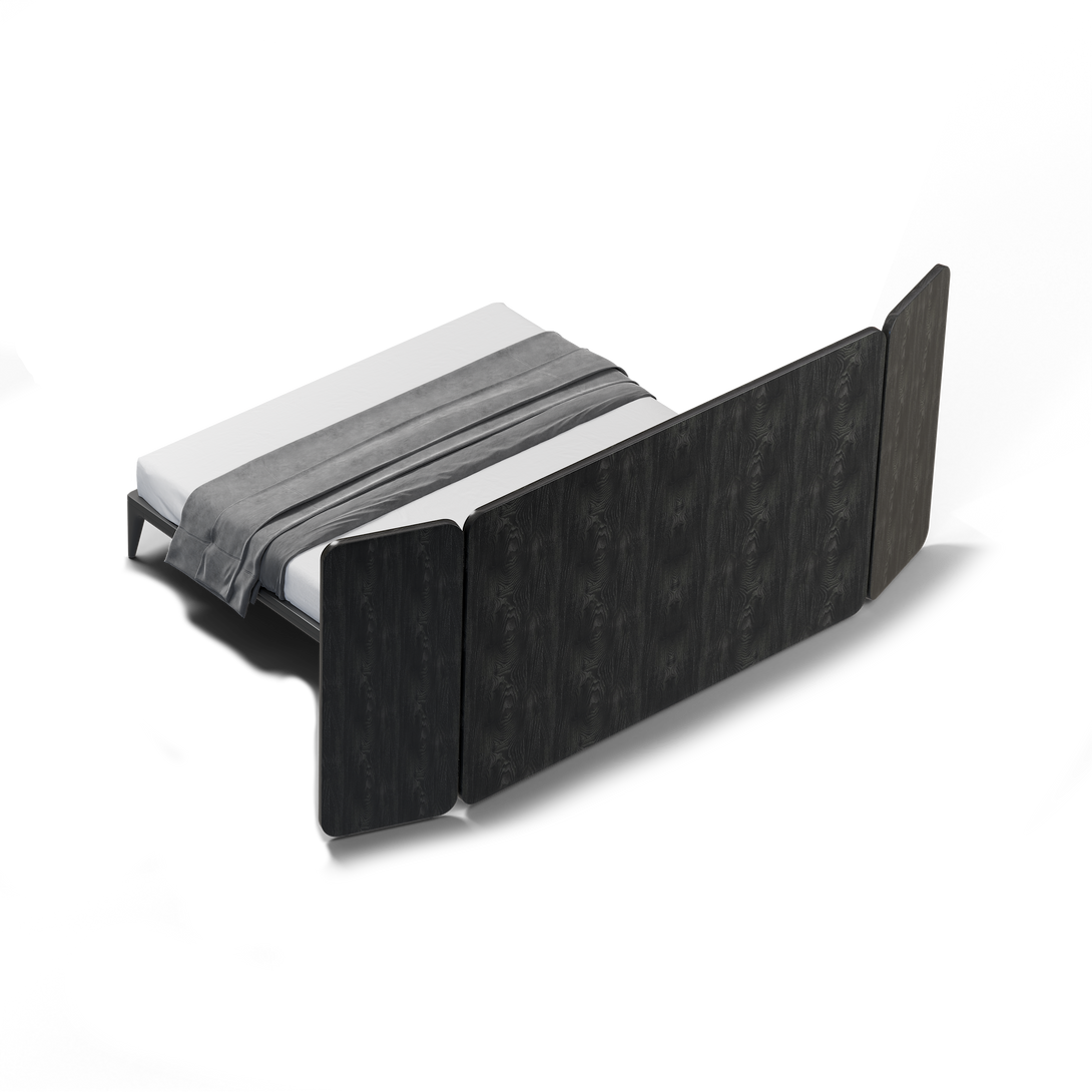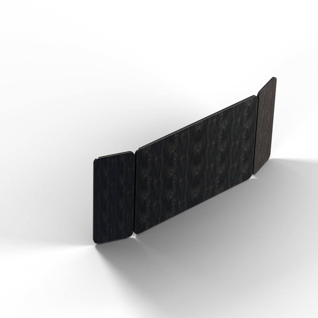 The Marcele folding screen is crafted from Ebonized wood and adorned with Jacquard Fabric Greta Black. With a keen focus on durability and a unique aesthetic appeal, this folding screen requires 60 days to be produced, resulting in an exclusive and sophisticated piece.