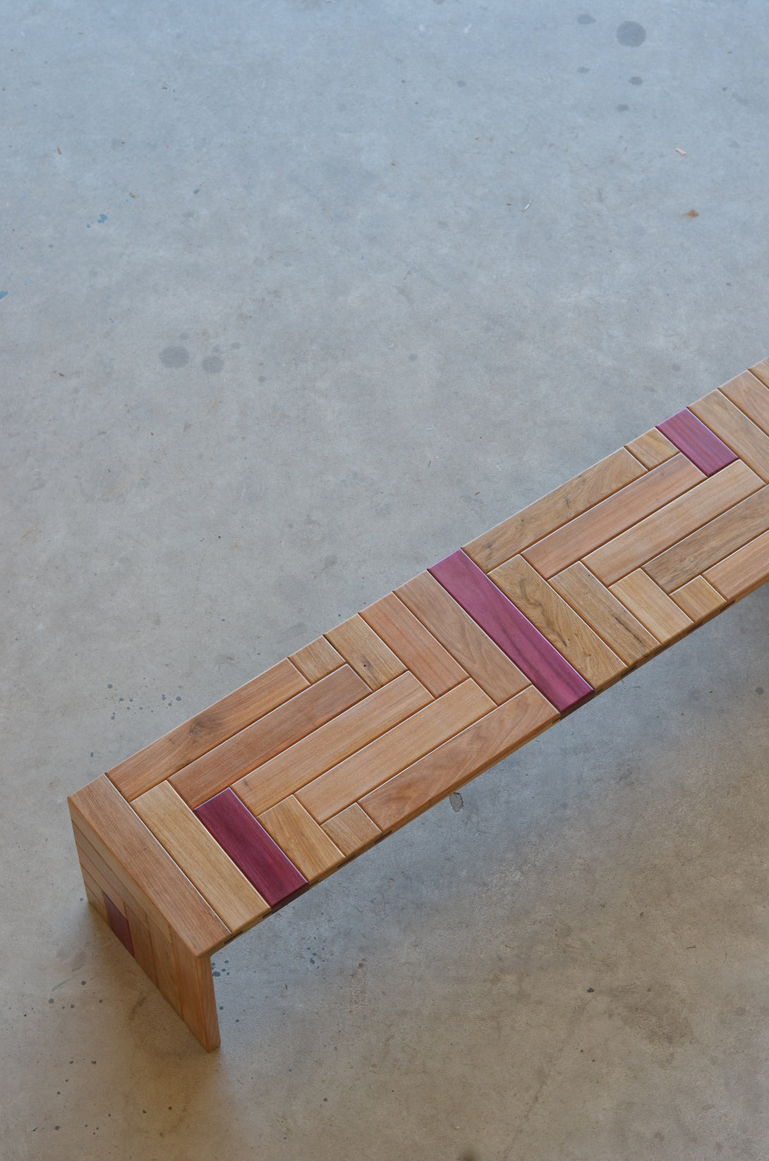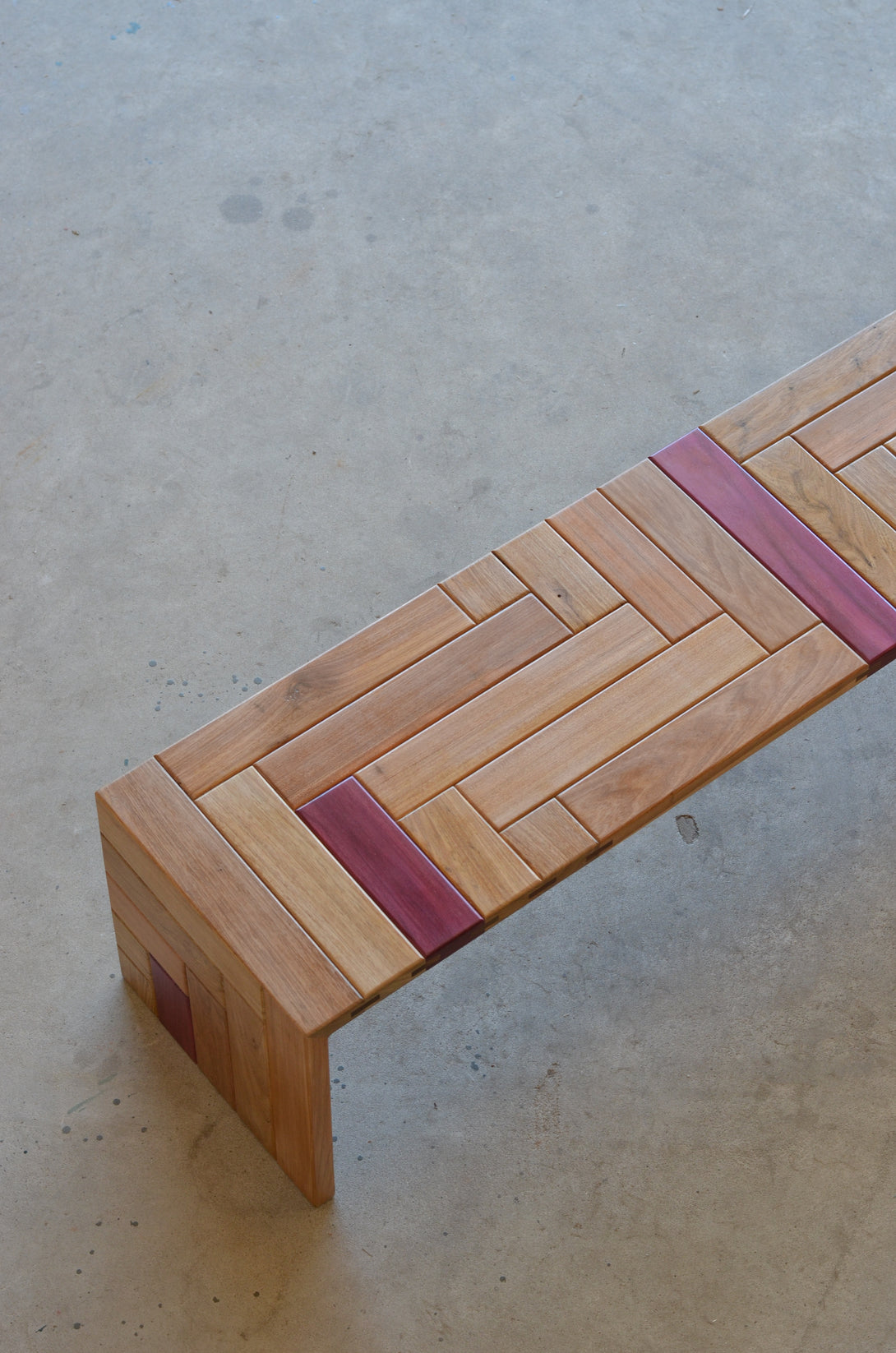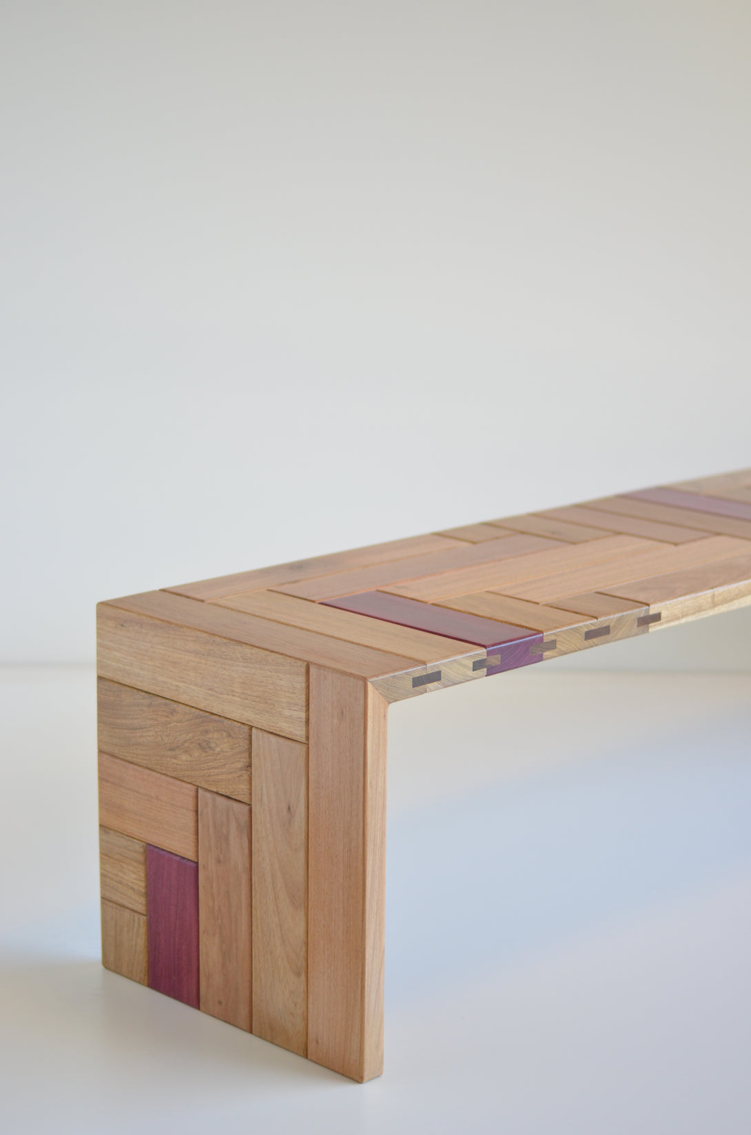 The Parquet bench is built in various lengths, with a depth of 45 cm and a height of 45 cm. It is entirely manufactured from solid woods.