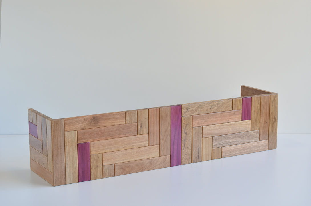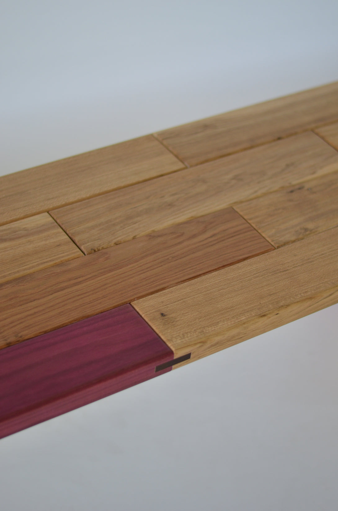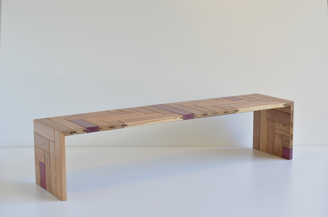 The Parquet bench is built in various lengths, with a depth of 45 cm and a height of 45 cm. It is entirely manufactured from solid woods.