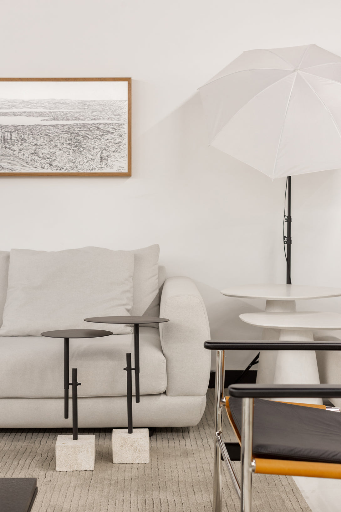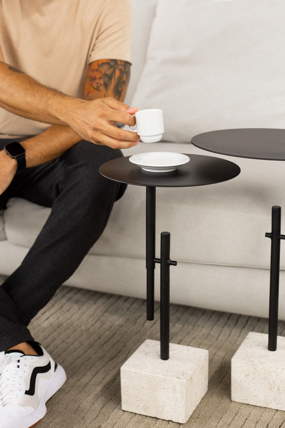 The Raffaello Santi Side Table is a study in balance and minimalism. This piece personalizes spaces with its Urban Industrial Style, featuring a metal structure balanced with a base of Natural Imbuia Veneer. It honors the Renaissance artist Raffaello Santi, reflecting the timelessness and perfection of his work.