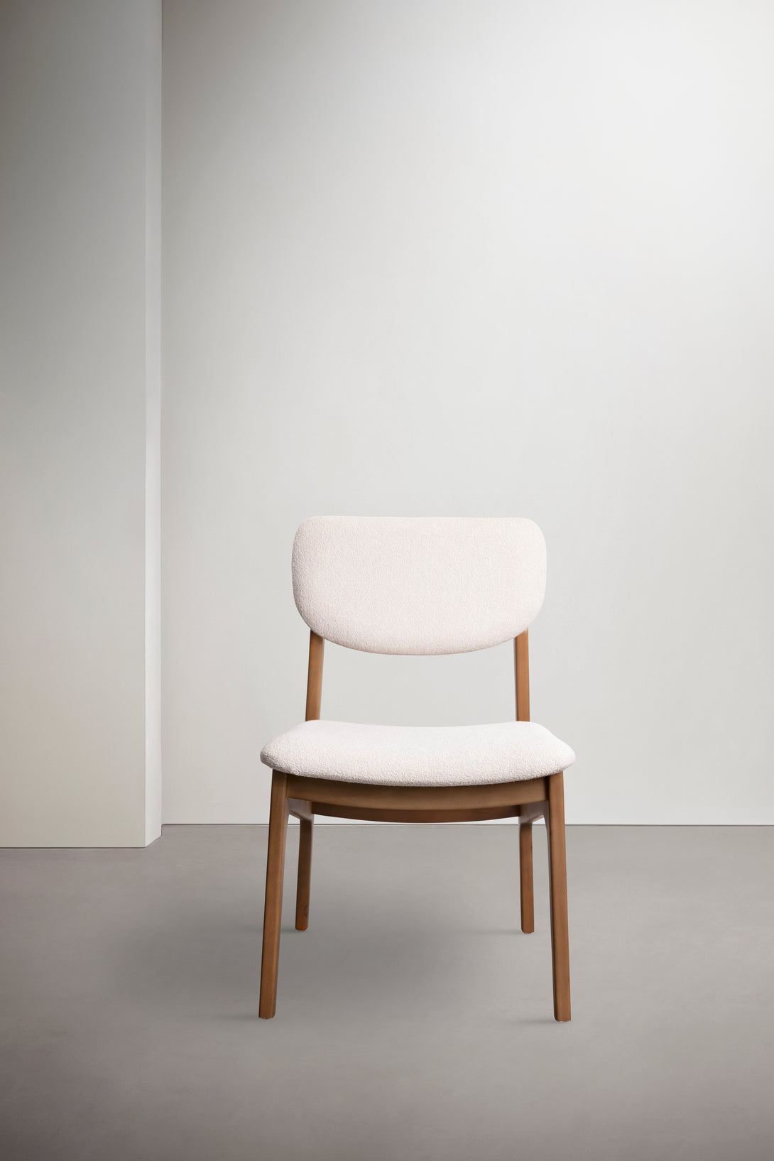 The Carry Chair features a modern and lightweight design, crafted to provide comfort without compromising elegance. Its upholstered seat offers softness, while the structure made from reforested wood ensures stability and durability.