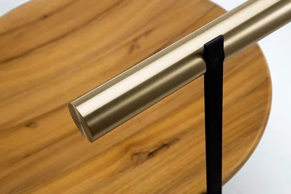 Fabricado en madera maciza de freijó, latón, acero al carbono.