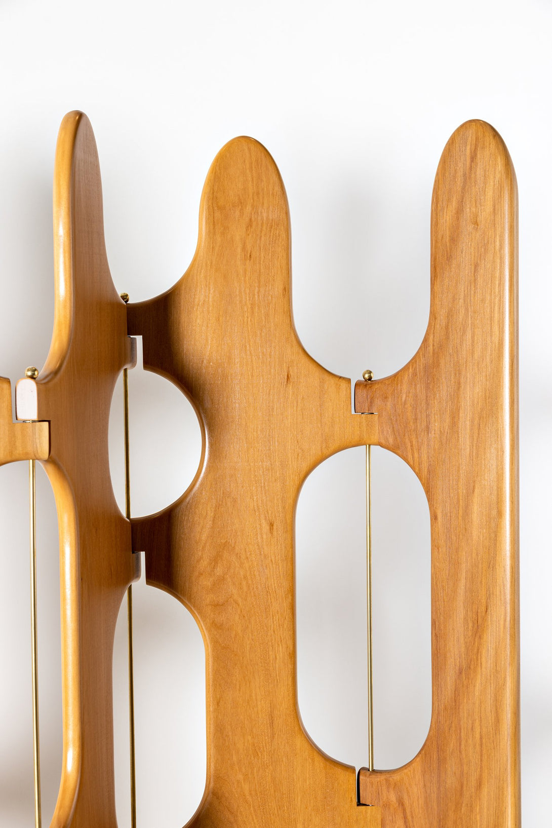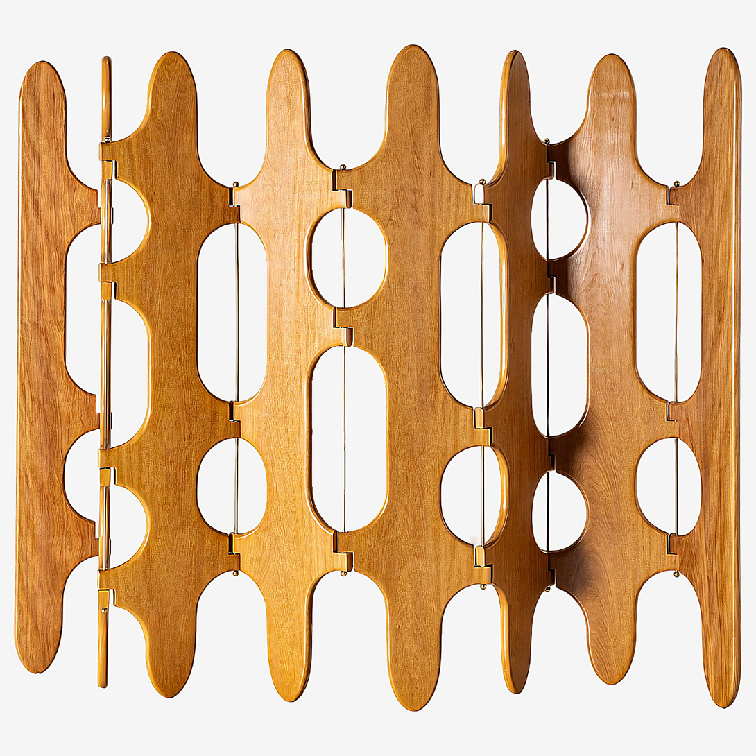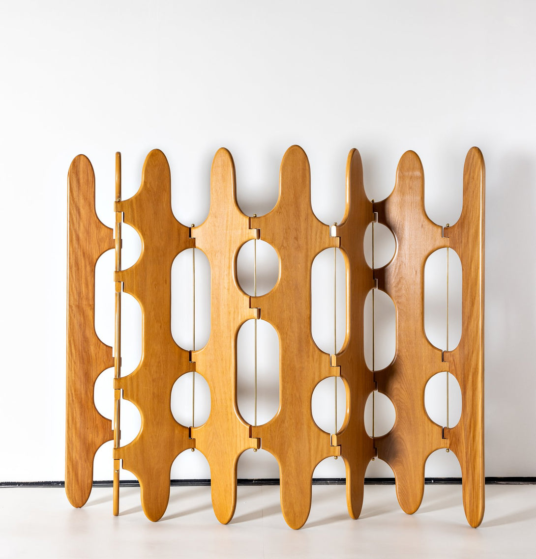 El biombo Cerca está fabricado en madera maciza y presenta una estructura abierta que combina funcionalidad y estilo. Su diseño innovador, con paneles abiertos, permite una sutil división de espacios manteniendo la sensación de apertura y luminosidad. La madera maciza garantiza durabilidad y un acabado elegante.