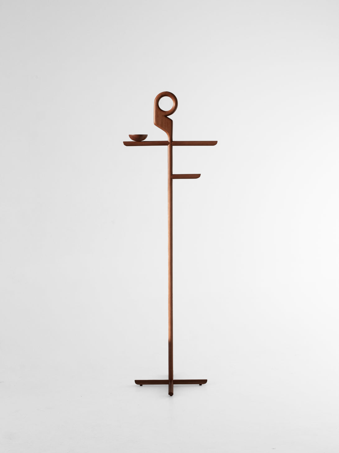 Fabricado en madera maciza de jequitibá, este perchero es una fusión de calidad y diseño minimalista. Su versatilidad se ve reforzada por la opción de elegir entre el tono clásico del jequitibá o la elegancia del acabado ebonizado. Se incluyen dos accesorios decorativos.