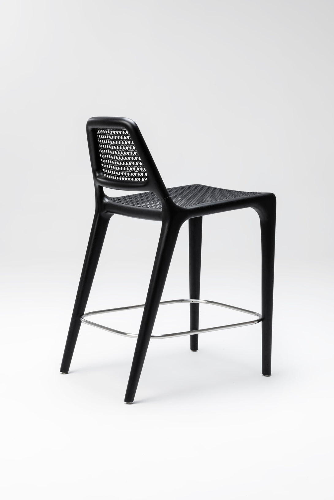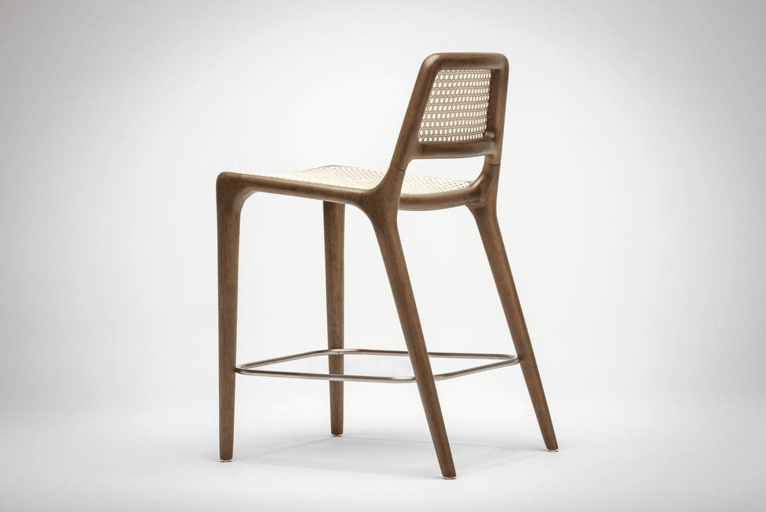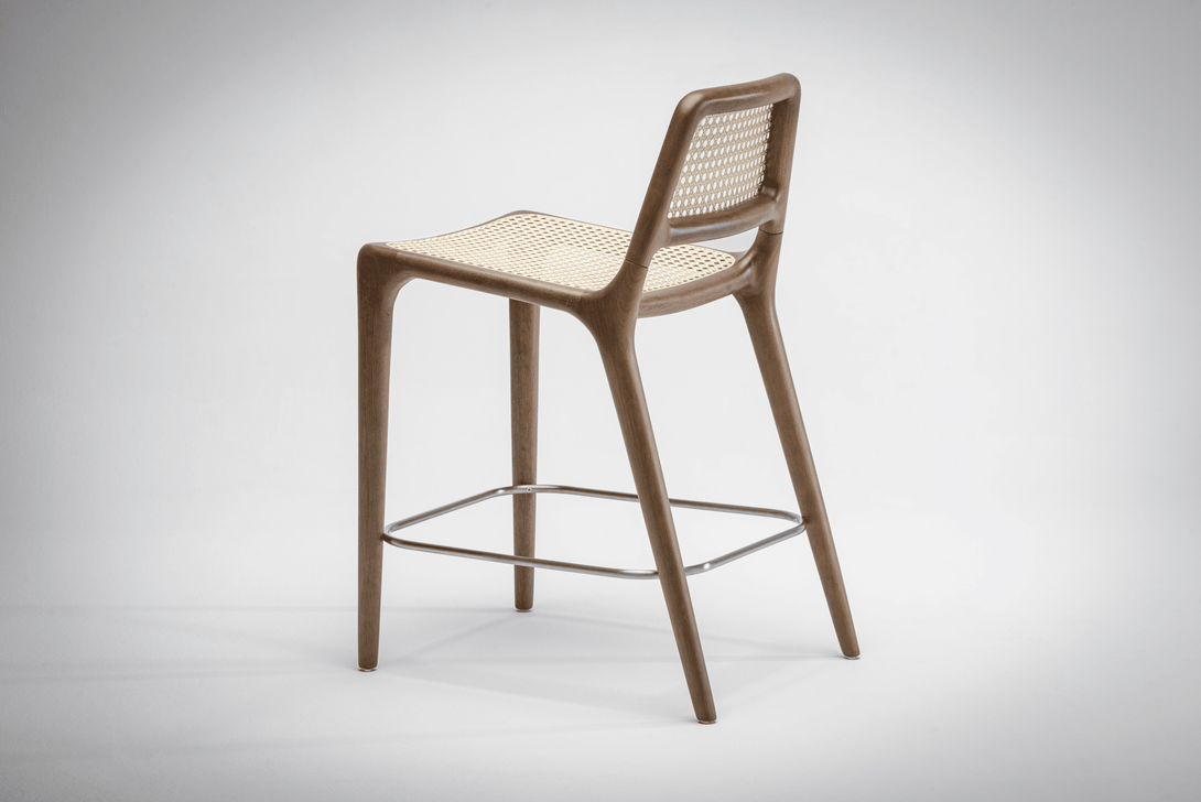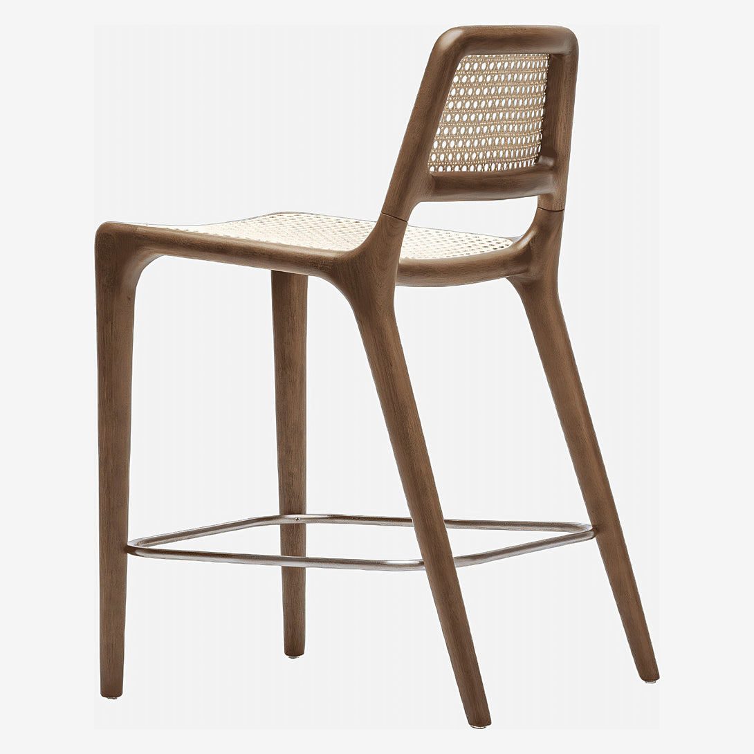 Taburete alto con estructura realizada en Madera Maciza, dispone de asiento y respaldo revestido en paja, aportando un toque de rusticidad y elegancia.
