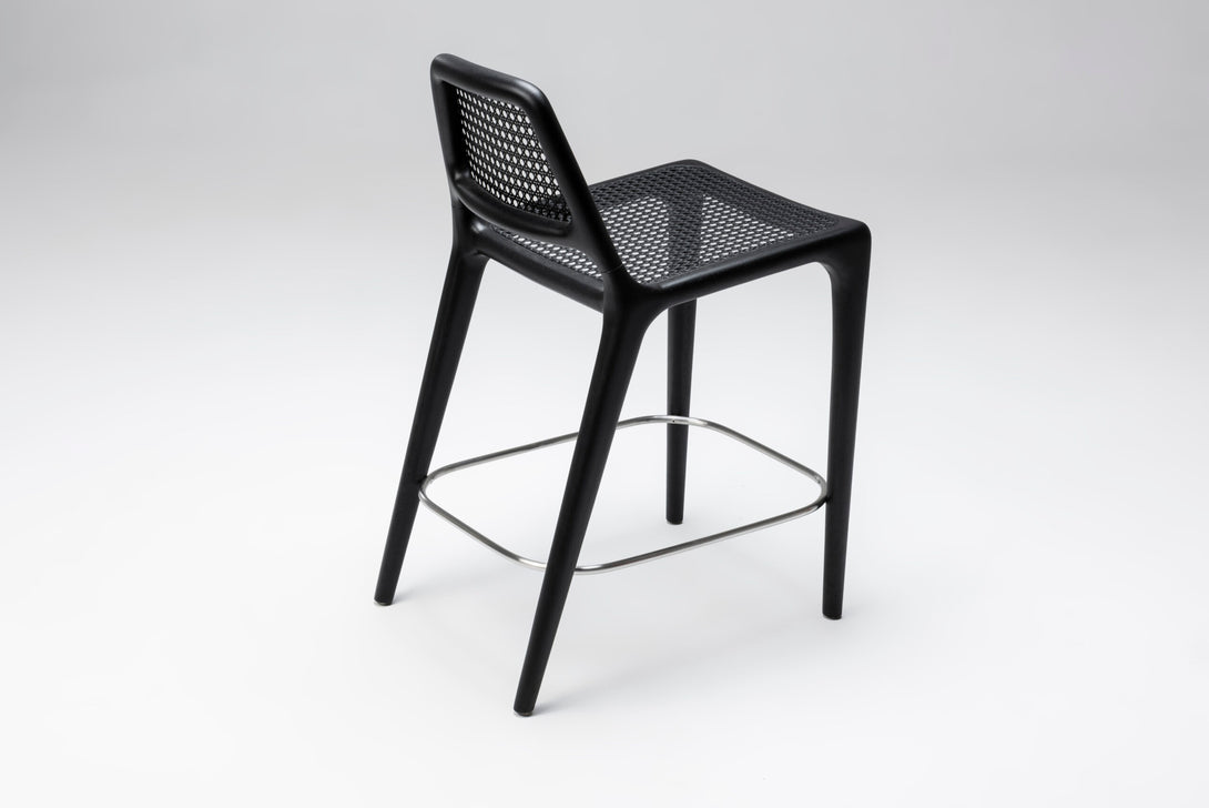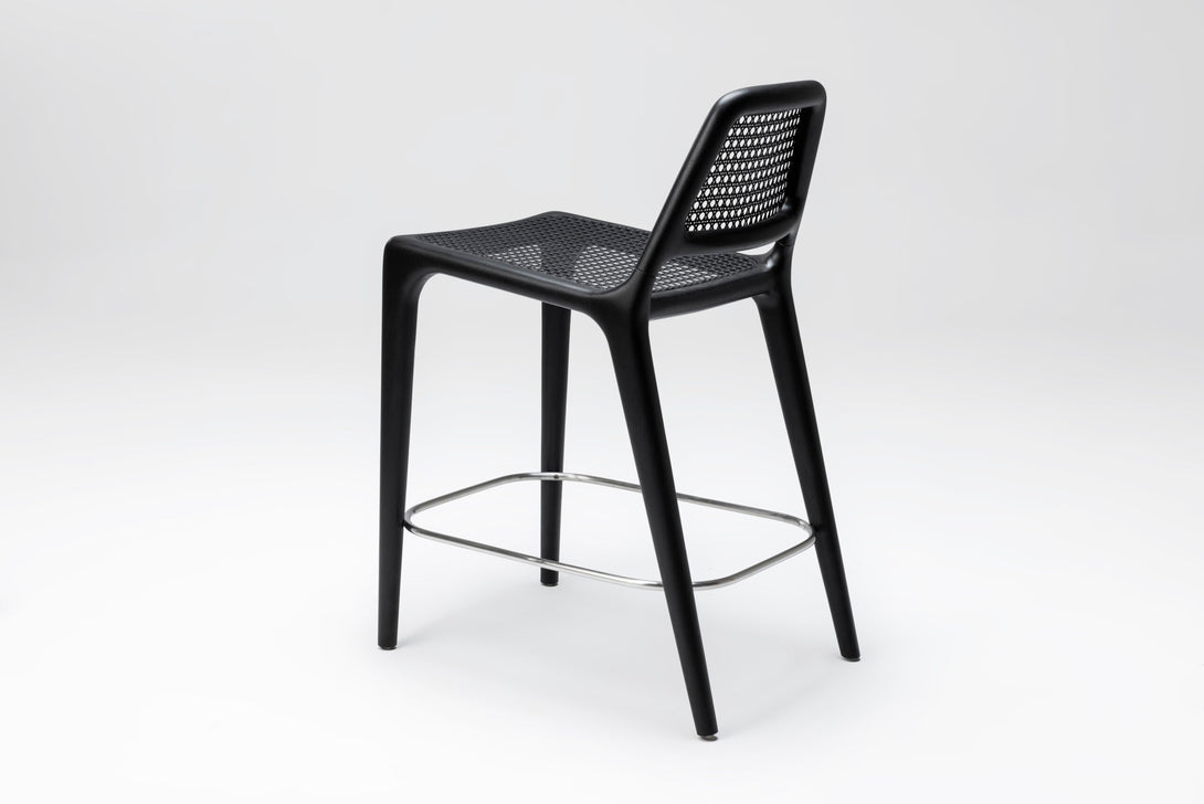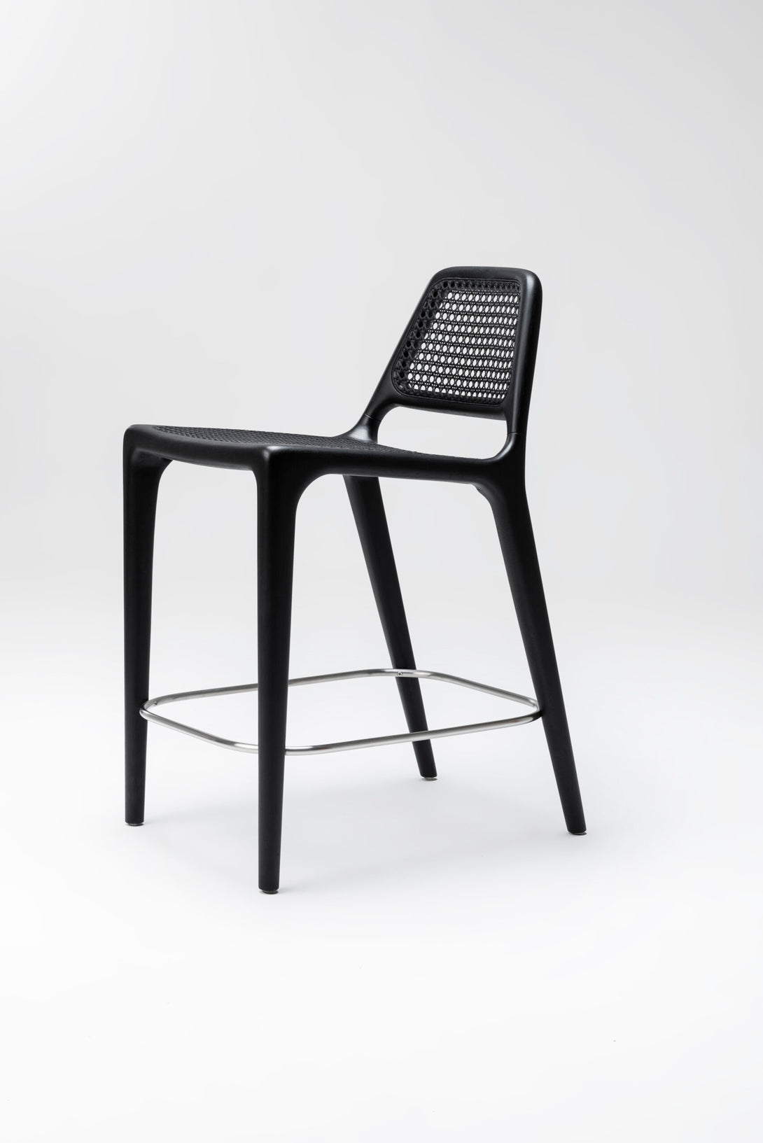 Taburete alto con estructura realizada en Madera Maciza, dispone de asiento y respaldo revestido en paja, aportando un toque de rusticidad y elegancia.