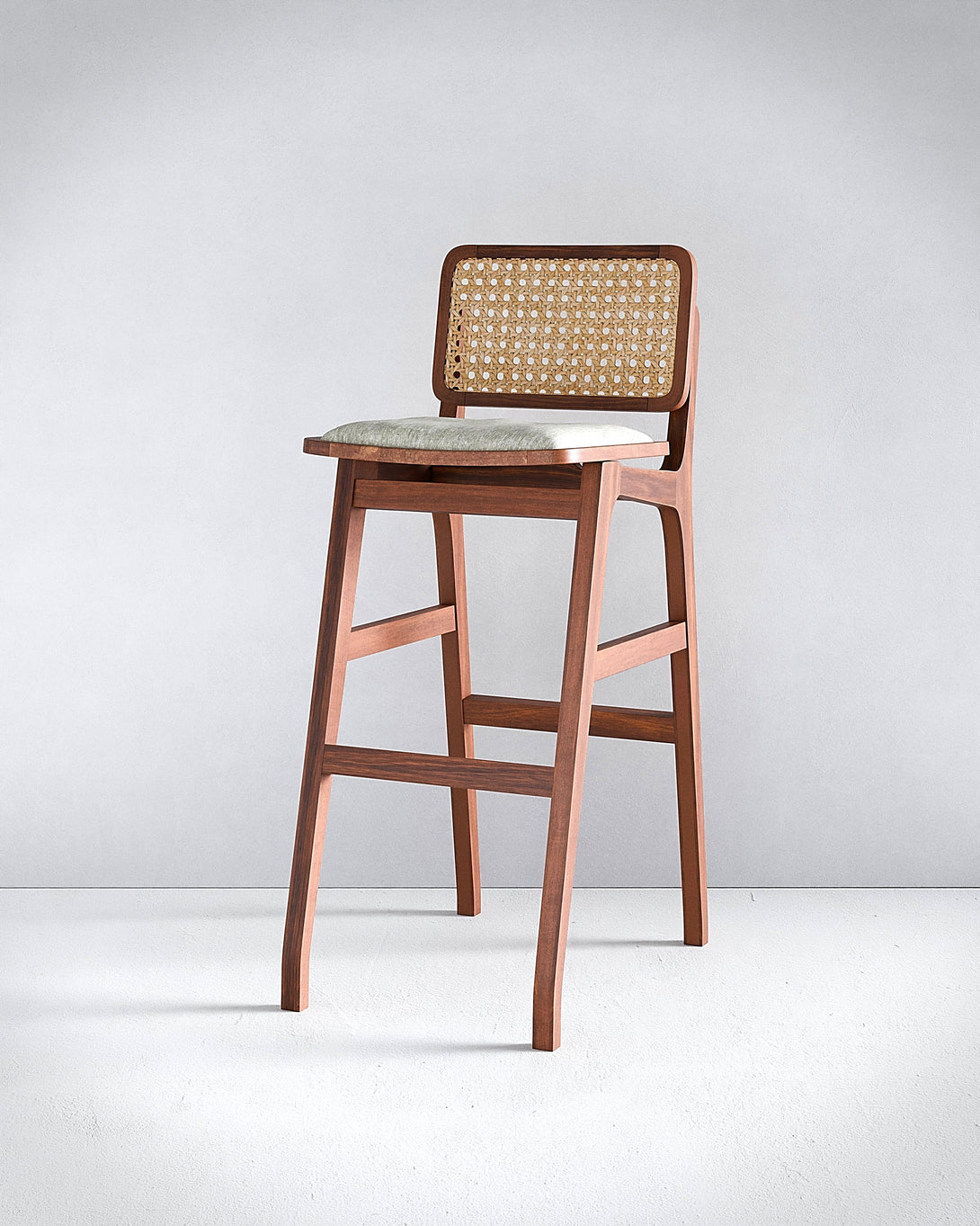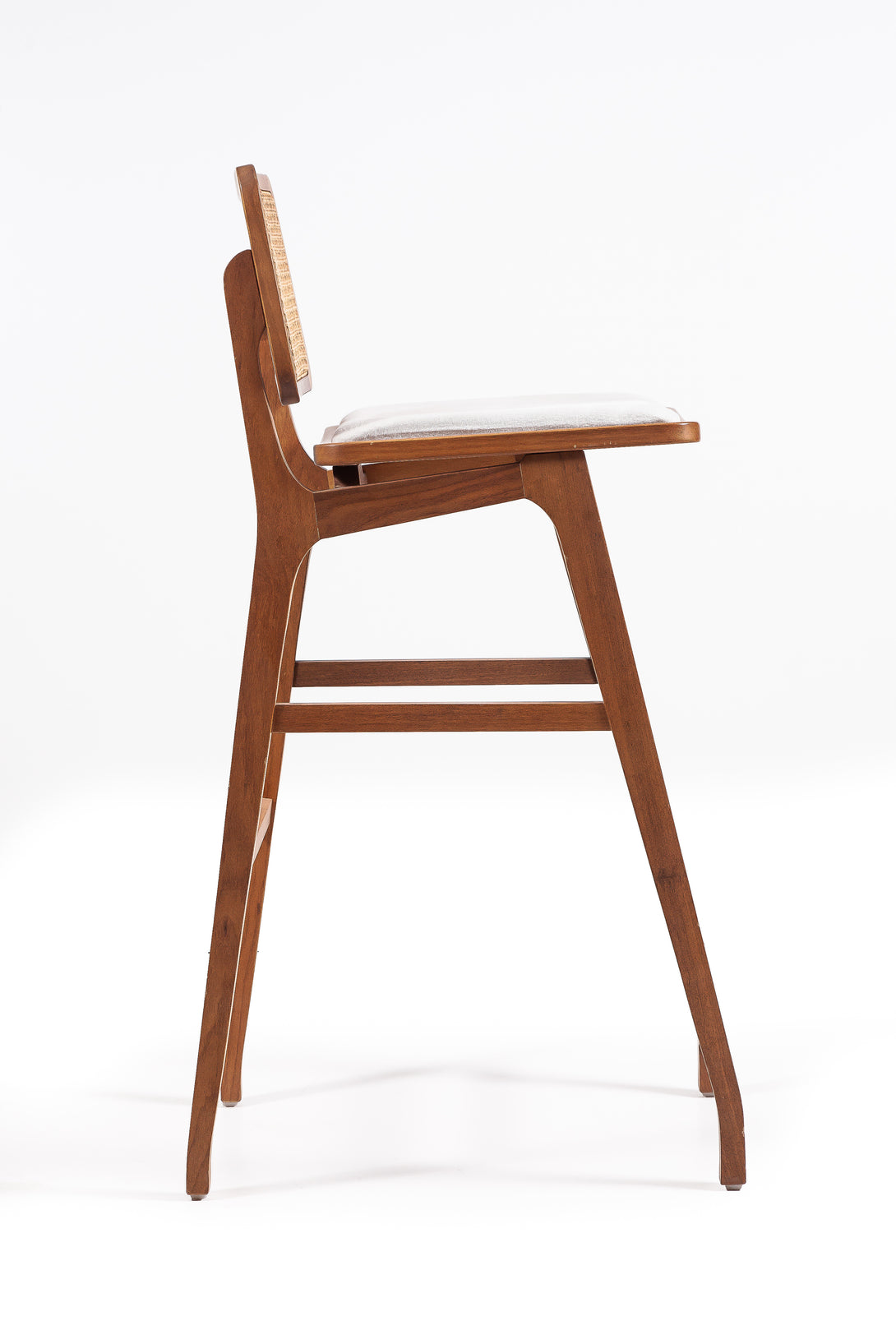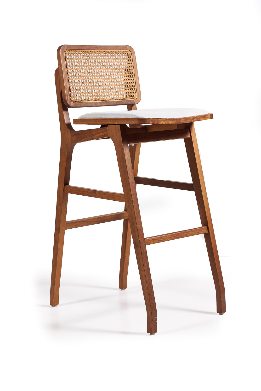 El taburete alto Lenzi es el resultado de una reinterpretación contemporánea de la tradicional silla de mimbre portuguesa, muy común en Brasil. Diseñada para espacios modernos y elegantes, la pieza, a pesar de ser liviana, es extremadamente duradera.