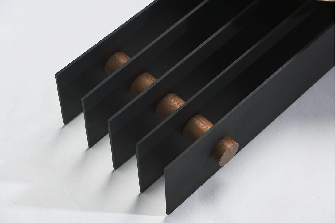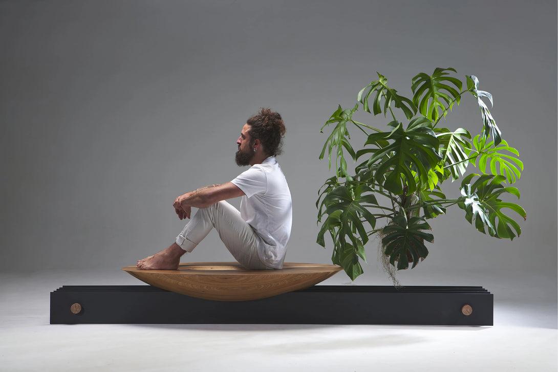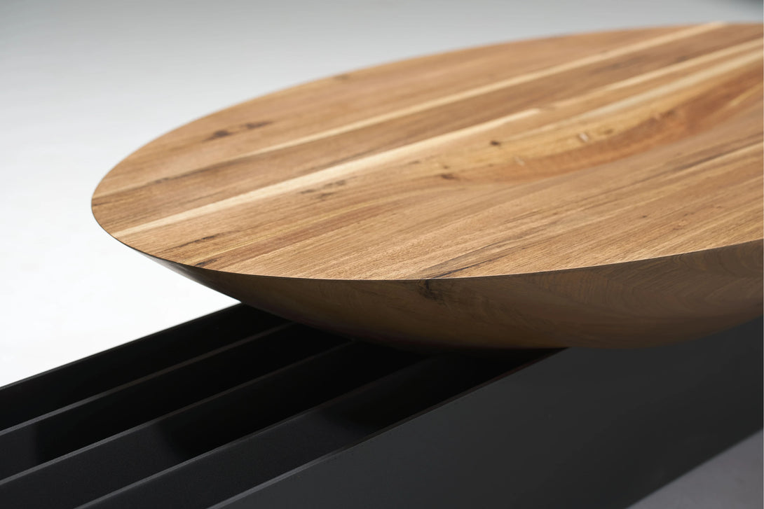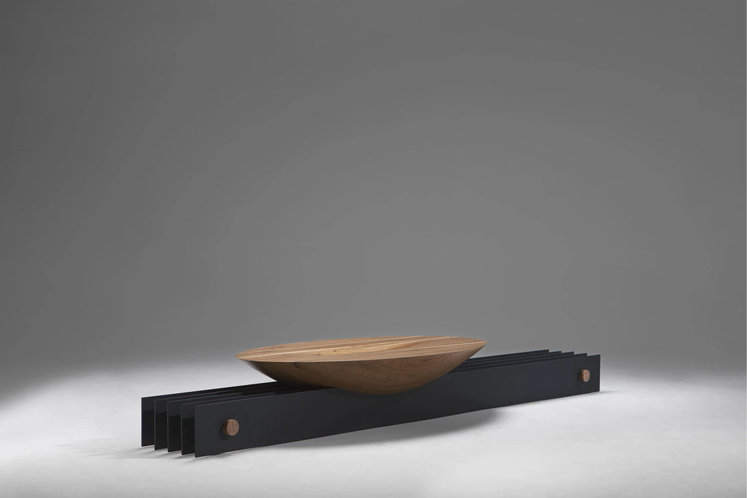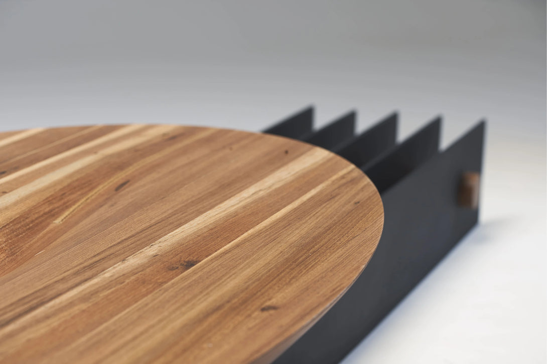 Realizado en madera maciza de freijó con estructura de acero y pintura electrostática.