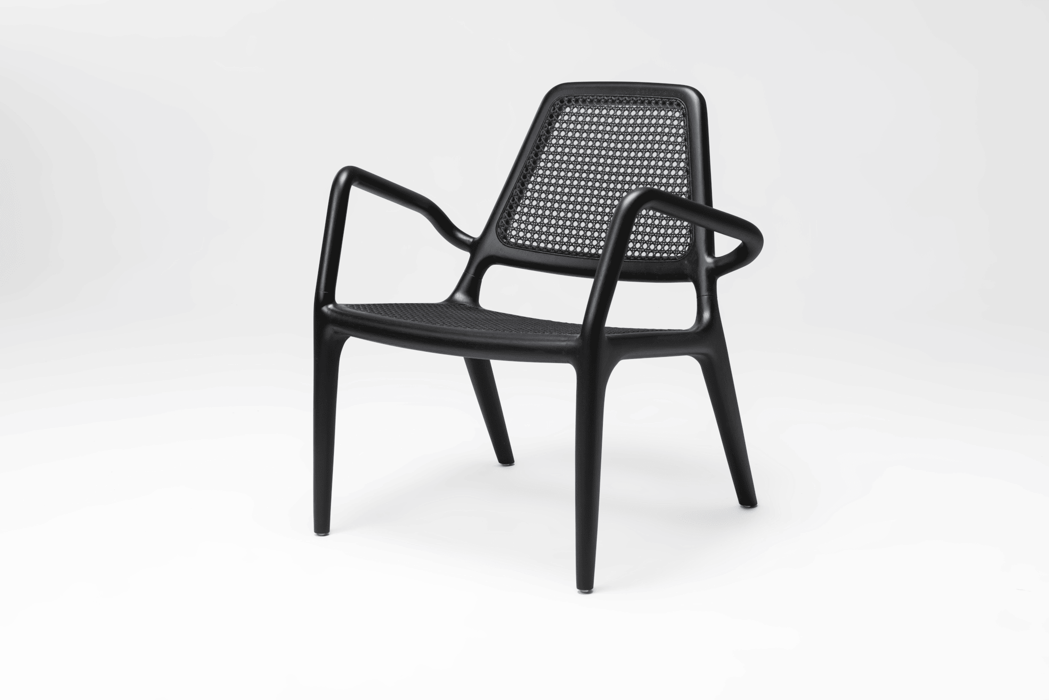 El sillón presenta una encantadora combinación de elegancia moderna y encanto rústico. Su elegante estructura de madera ebonizada irradia sofisticación y durabilidad, complementada por la acogedora calidez del asiento y el respaldo de paja tejida.