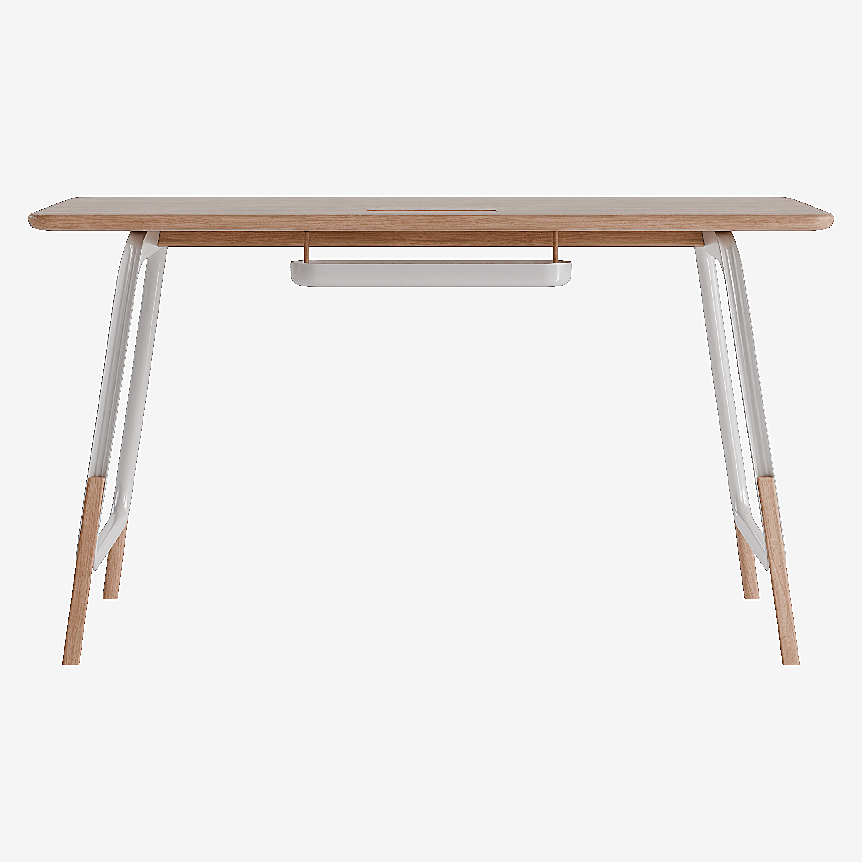 Patas y tablero de madera maciza Tauari. Estructura de aluminio fundido.