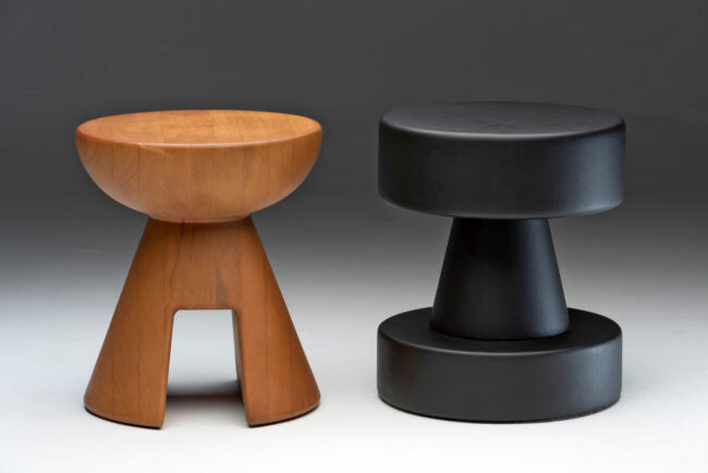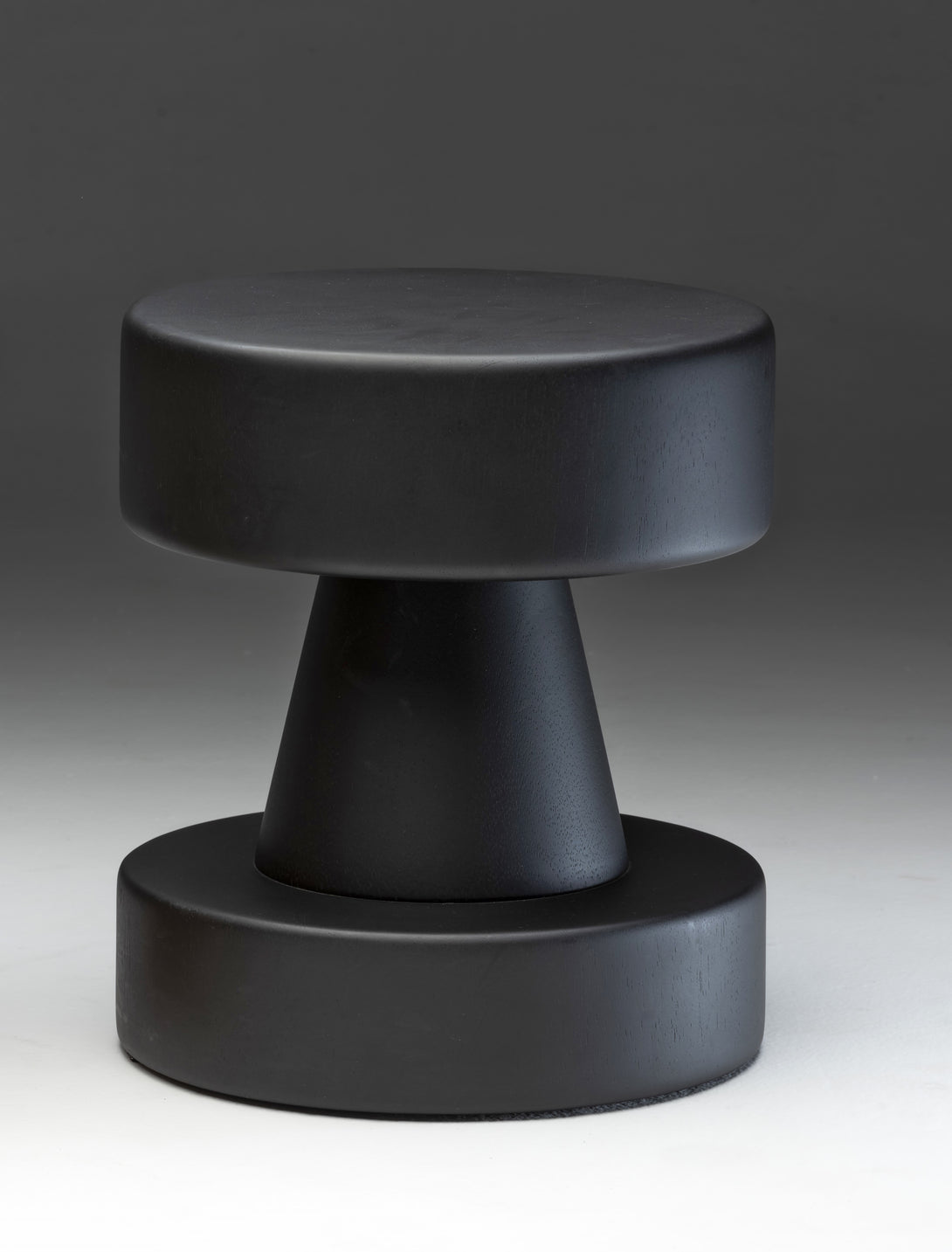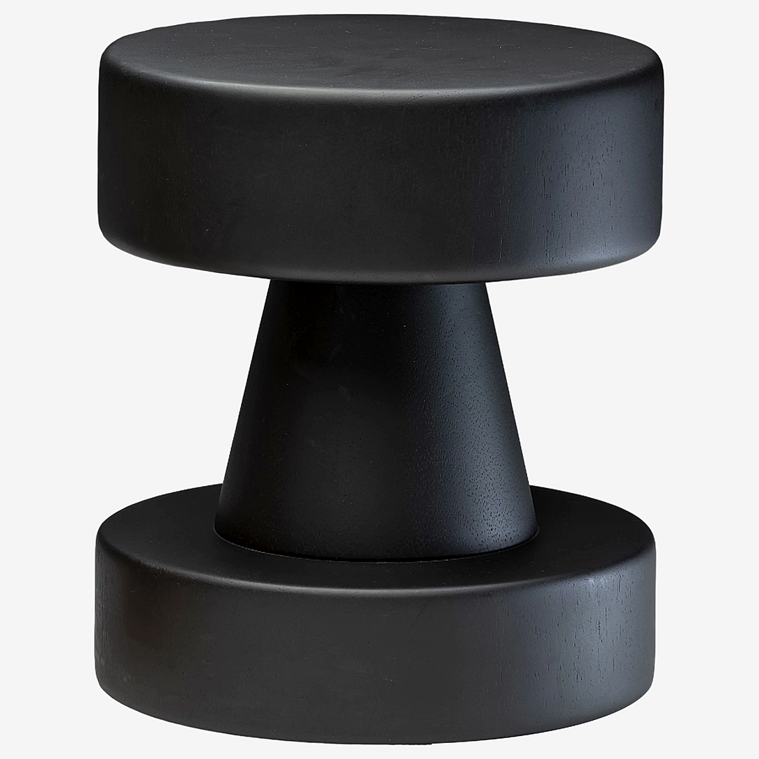 Taburete fabricado en madera maciza Ebonizada con tratamiento de alta tecnología. Presenta un diseño versátil en forma de reloj de arena, apto para usarse como taburete, mesa auxiliar, en combinación como mesa de centro, entre otras posibilidades.