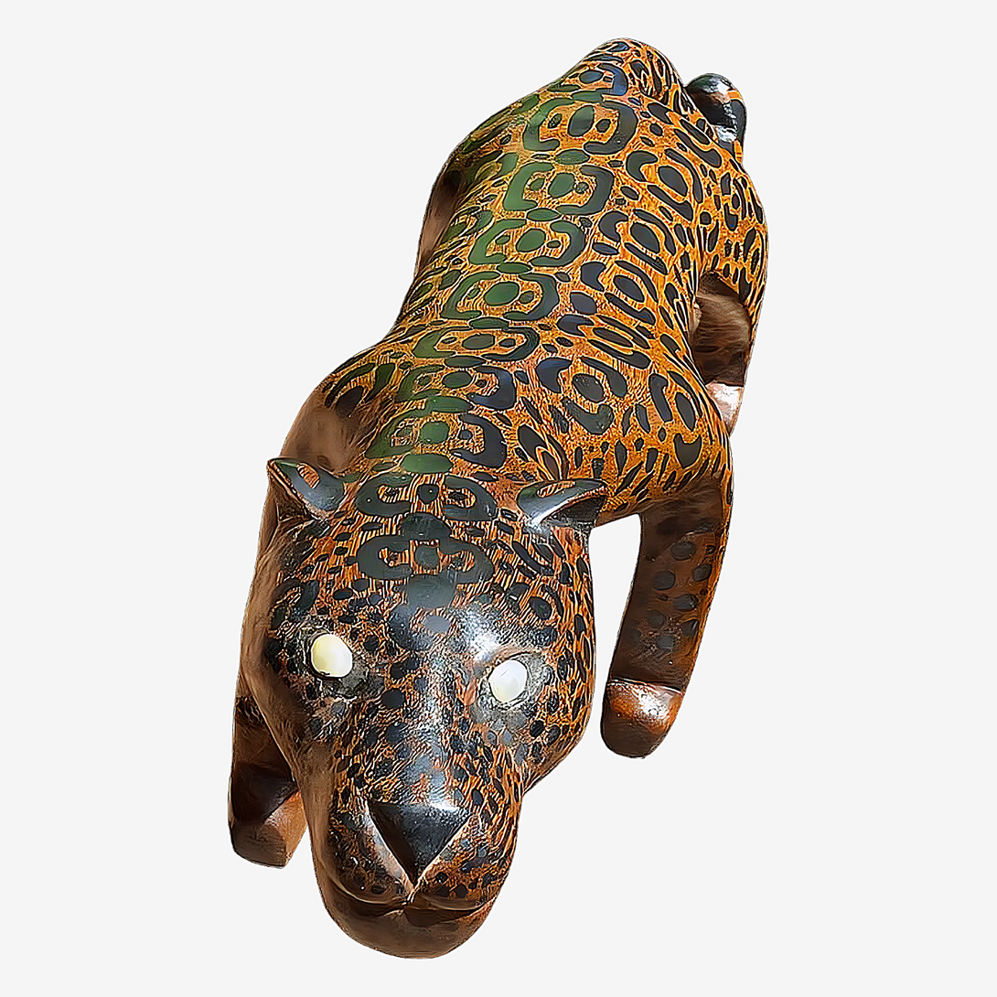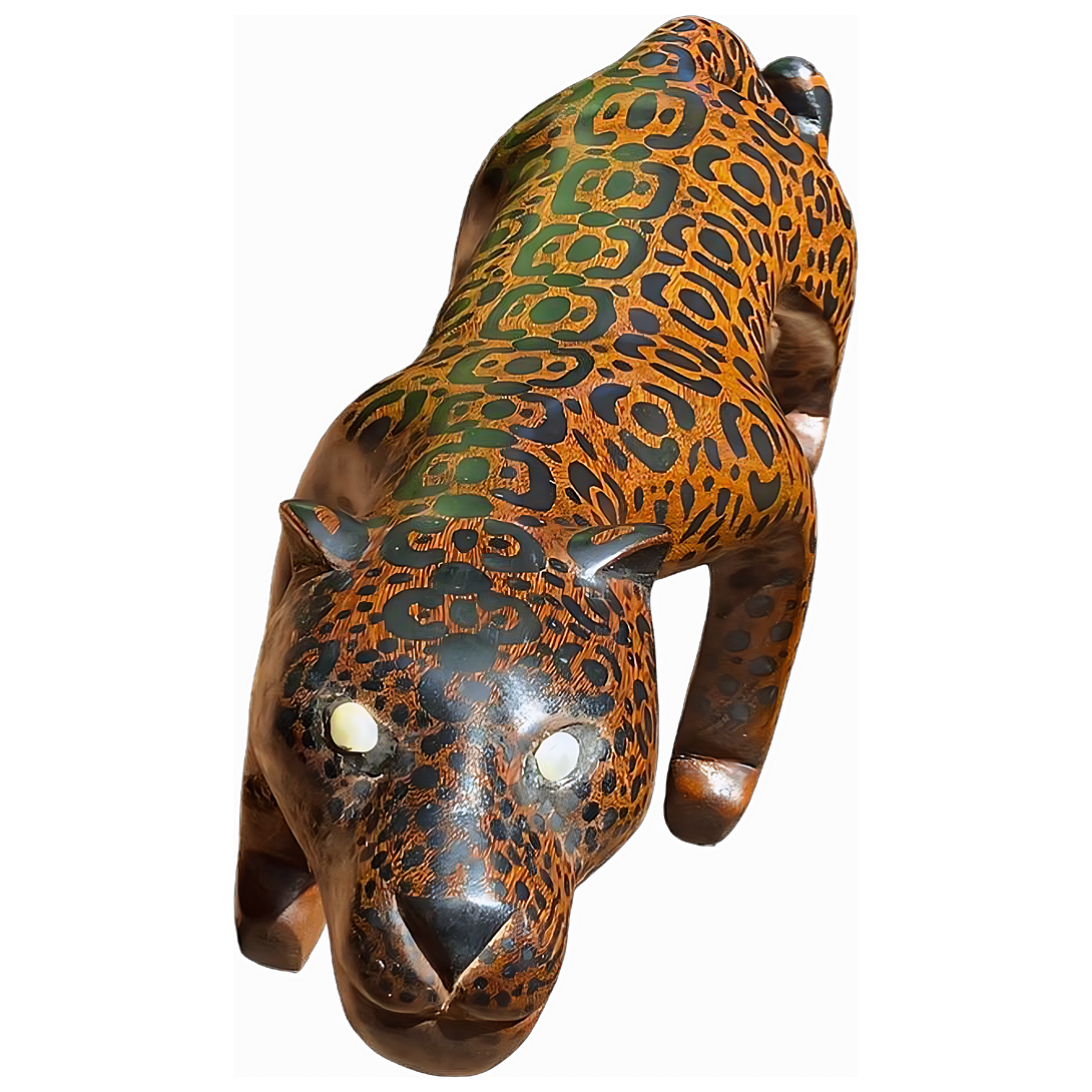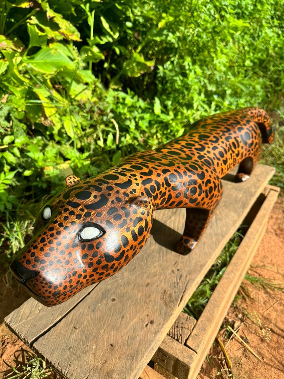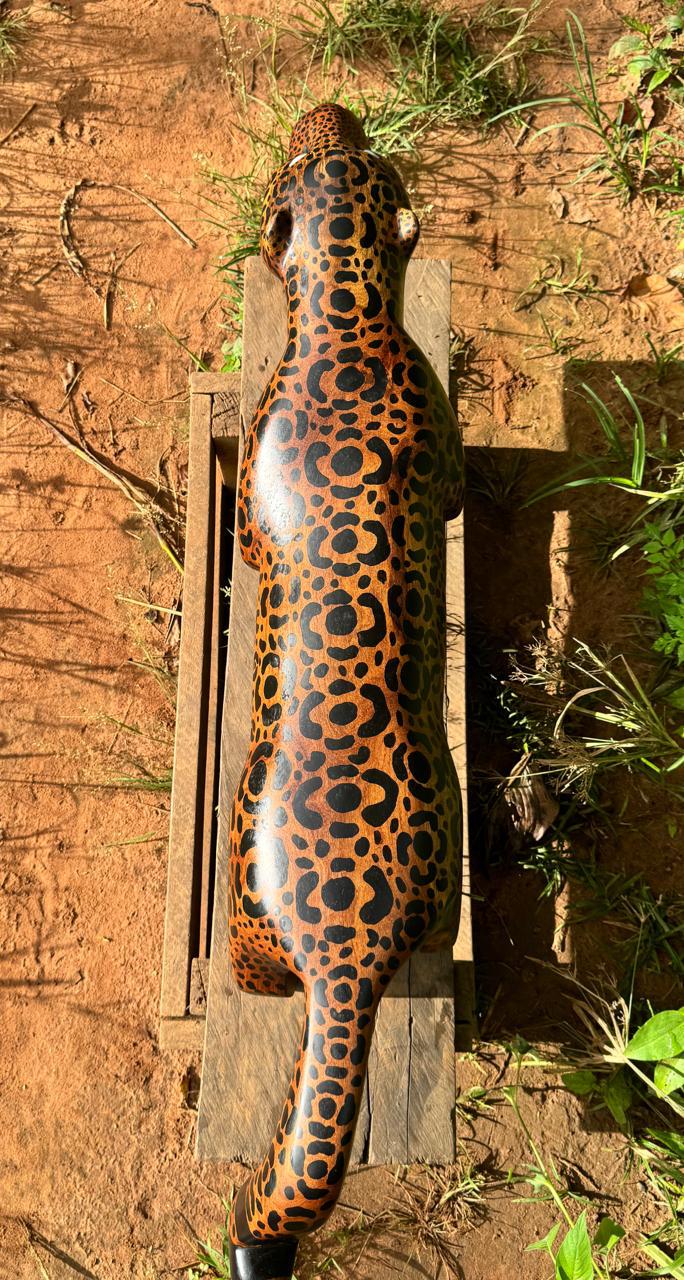Testimonio del talento y la habilidad de la tribu Yanumaka, el Banco Onça Pintada es una pieza hecha de madera de pirañas, pintada con la técnica de pintura con tinta. Transmitido de generación en generación, este banco presenta una increíble riqueza de detalles, textura expresiva y una técnica y creatividad innegables. Cada pieza de madera tallada es un símbolo de cómo la ascendencia puede transformarse en un objeto bello y funcional. Esta obra invita a la reflexión sobre la importancia de preservar las tradiciones culturales y valorar el arte indígena.