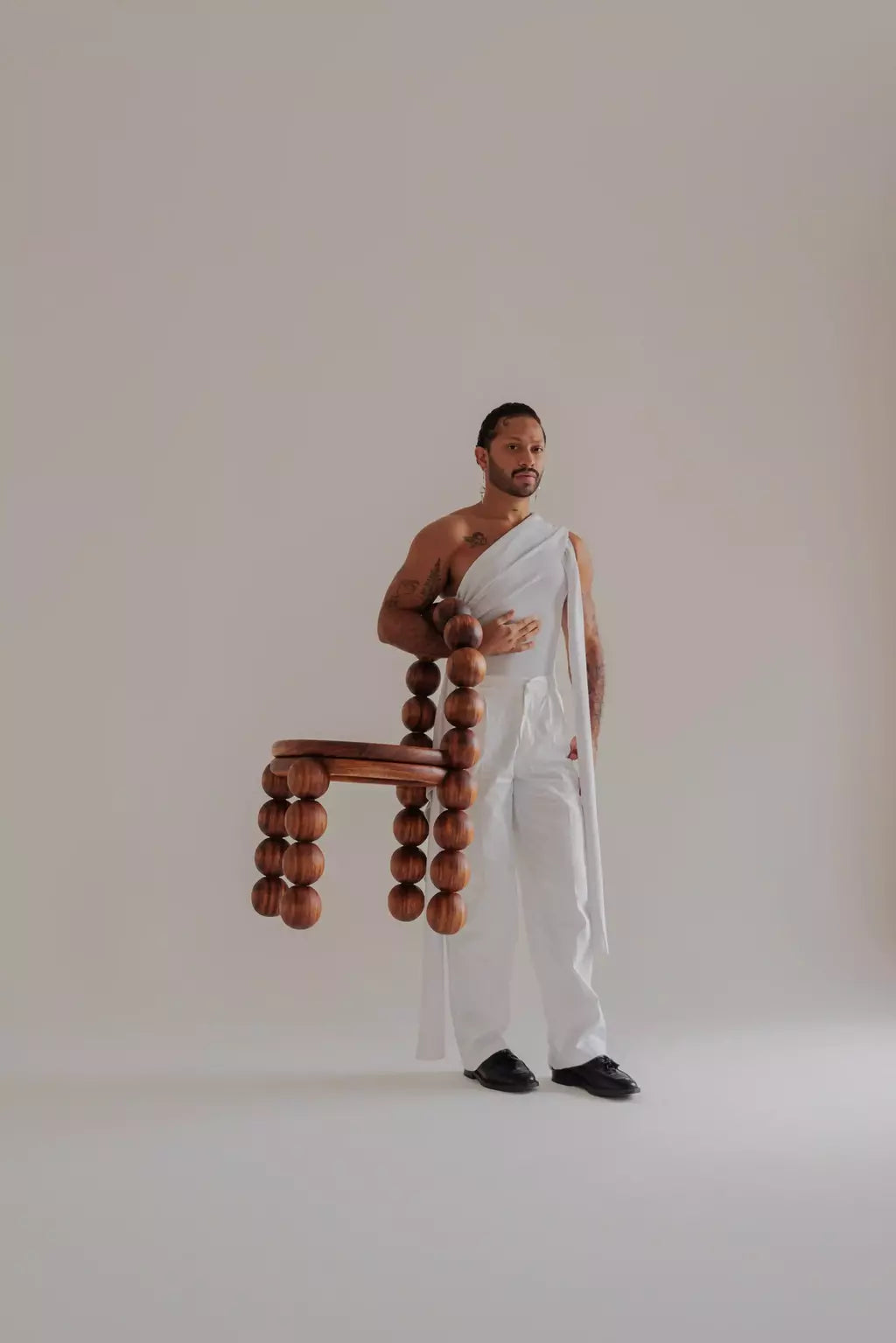 The Pérolas Chair, designed by Cuiabá-born architect Nicholas Oher, was born from an unsettling question: “why create yet another chair in the world?” The answer came from affection. The Pearl is a tribute to the women in his family—grandmothers and great-grandmothers—and to the cultural heritage that transcends generations.