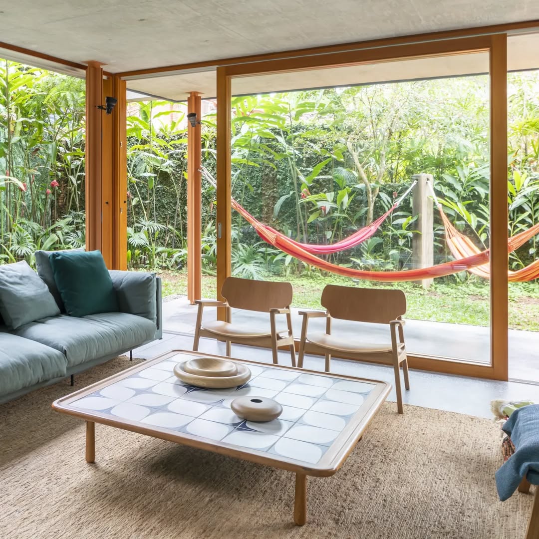 El sillón Pouso fue diseñado para ser un sillón compacto que se adapta bien a varios tipos de ambientes. Fabricado en madera de Sucupira con acabado en barniz PU.