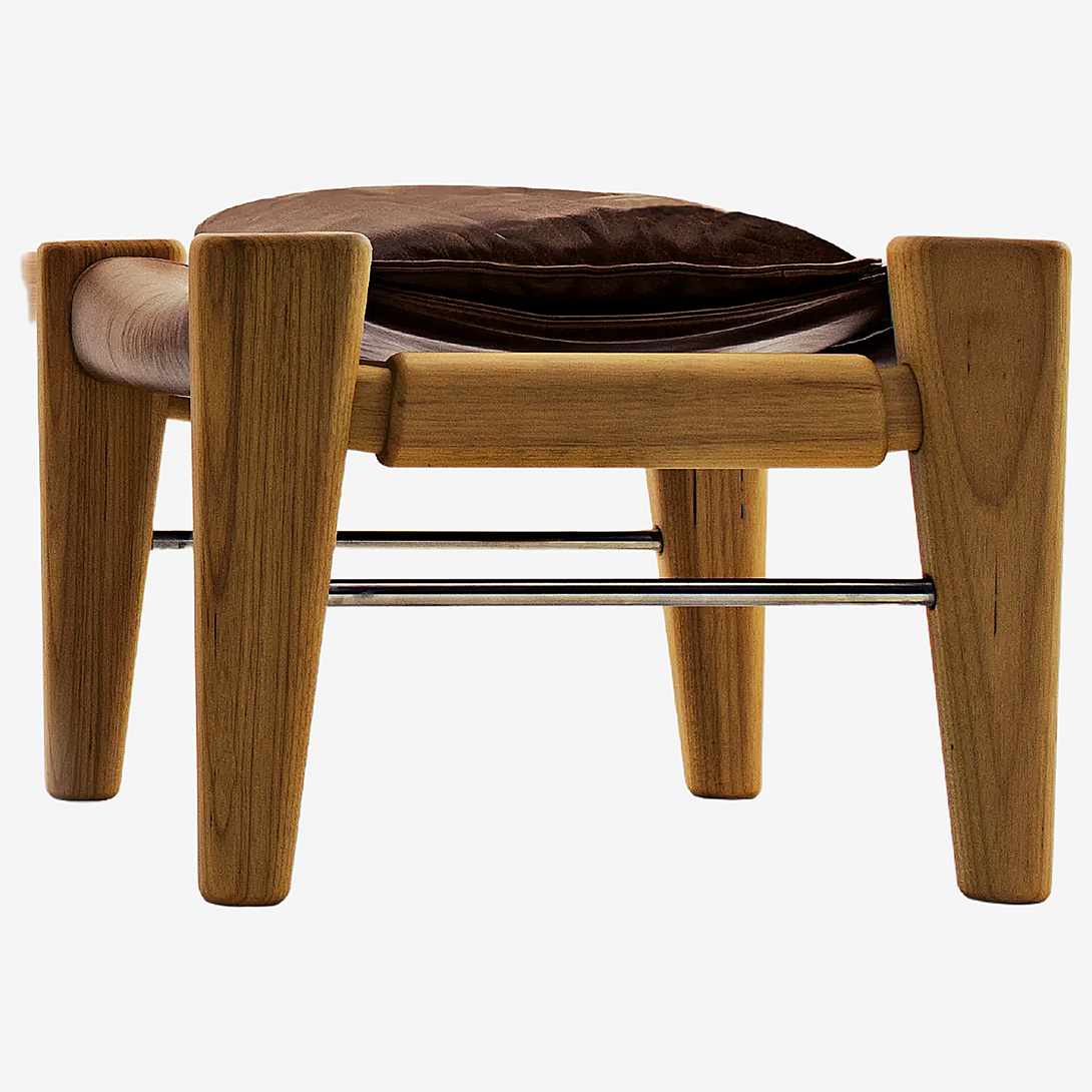 Estructura de madera maciza con asiento y respaldo tapizados.