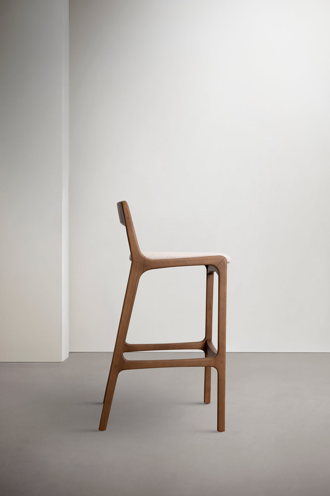 Crafted from reforested wood and upholstered in high-quality fabric, the Sleep Stool blends sustainability with timeless aesthetics, offering a versatile piece that easily adapts to different interior arrangements.