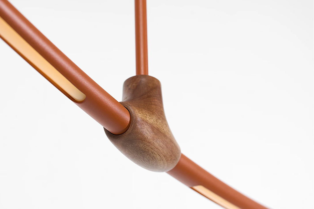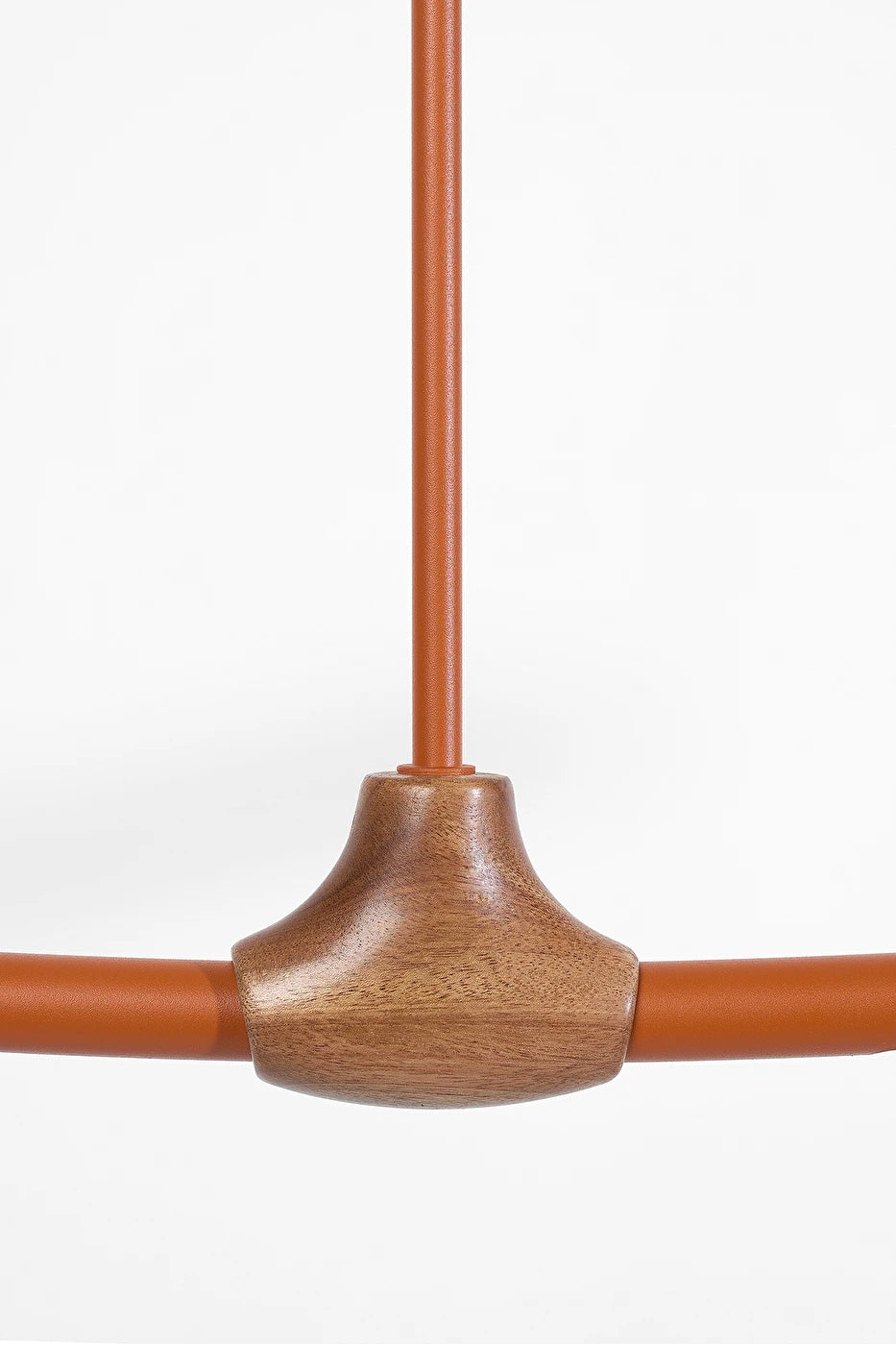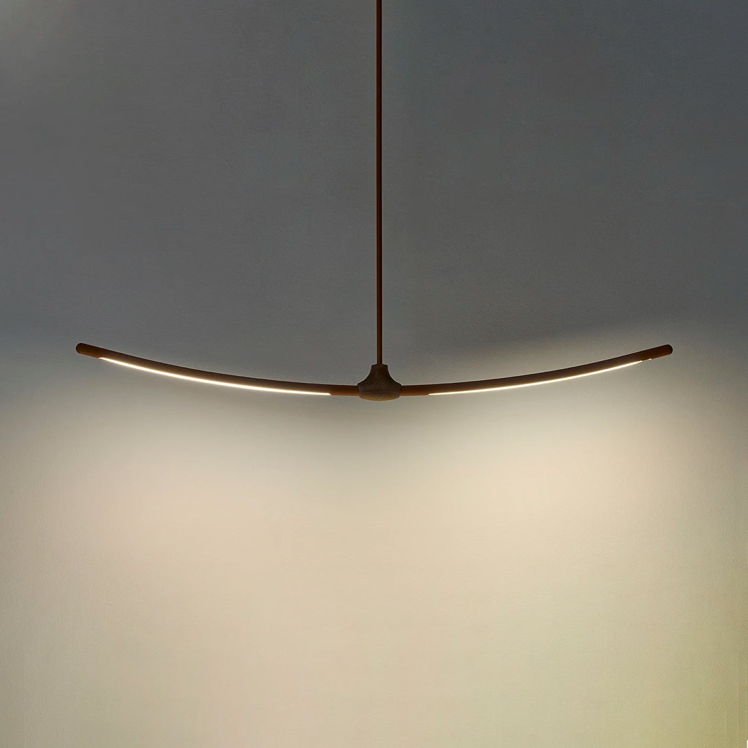La lámpara colgante Arco es el epítome de la elegancia y el diseño moderno, con una elegante forma de arco. Su forma elegante y estilizada está elaborada con materiales de primera calidad, incluido un hermoso detalle de madera que realza su estética refinada. La lámpara colgante alberga una tira de LED que emite una luz cálida de 3300 K, lo que crea una atmósfera acogedora y atractiva.