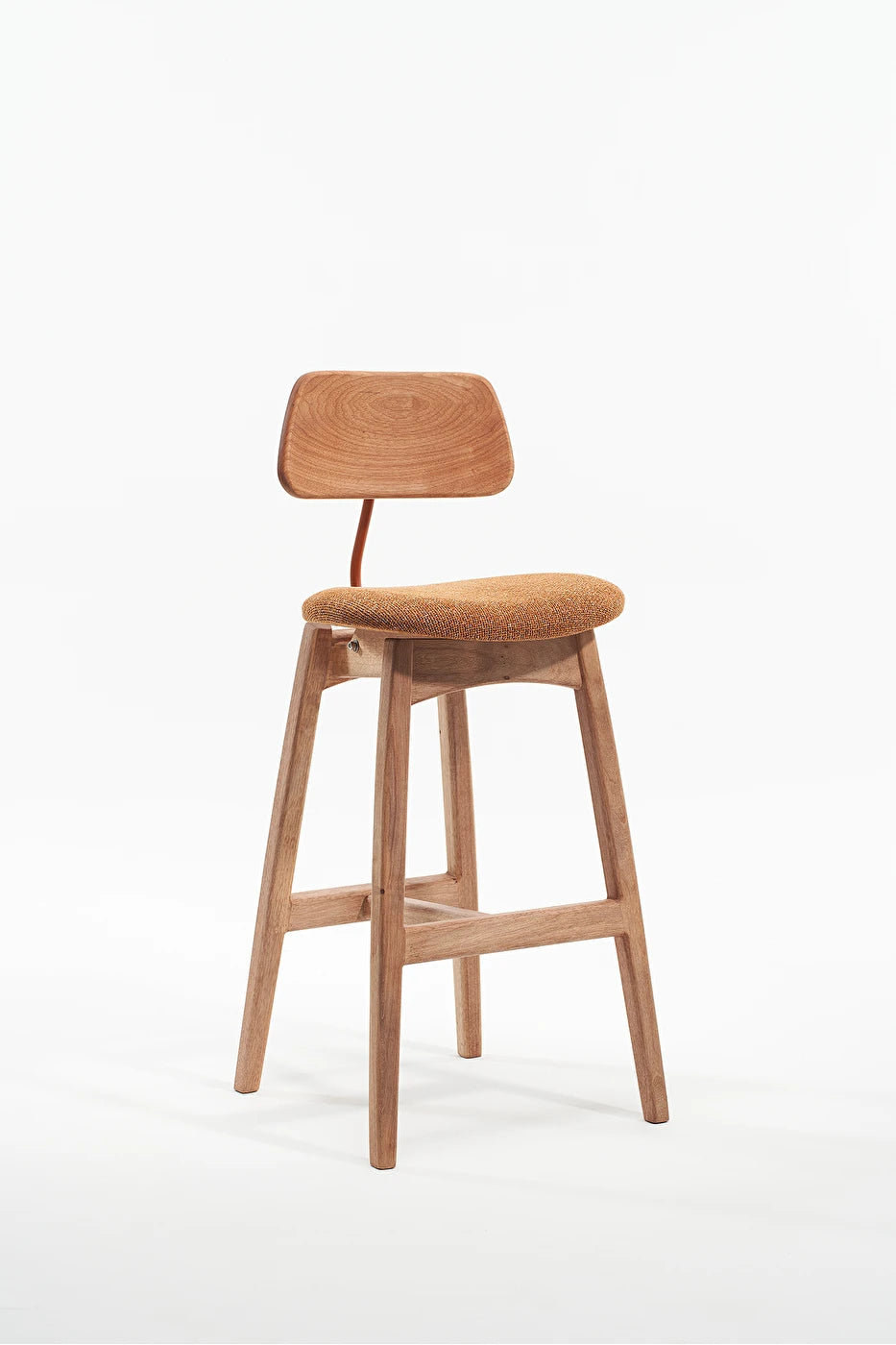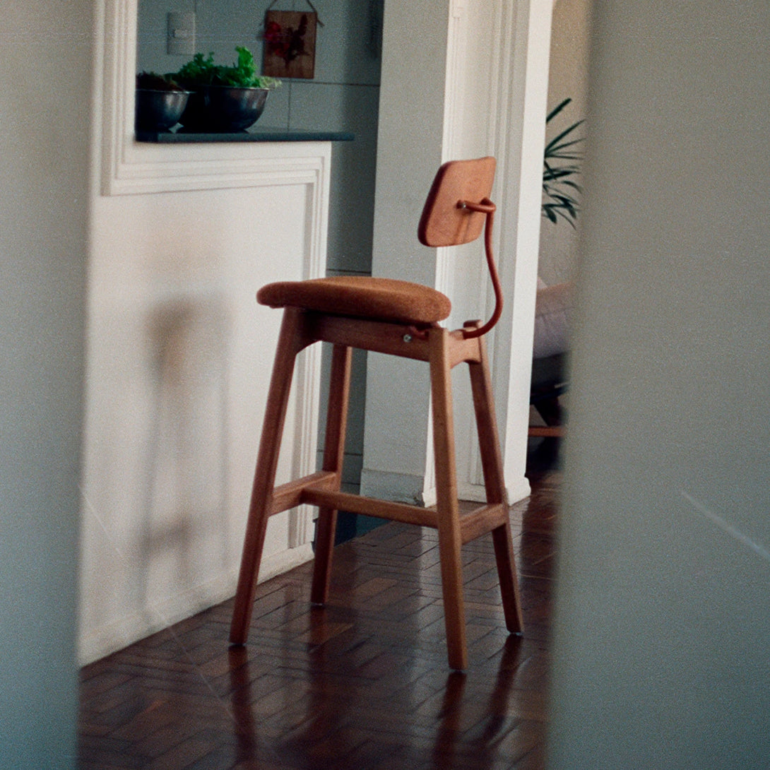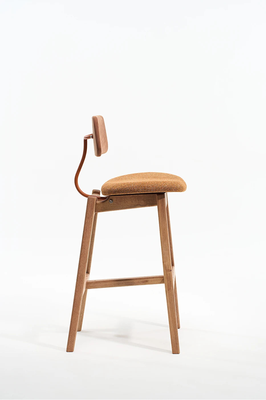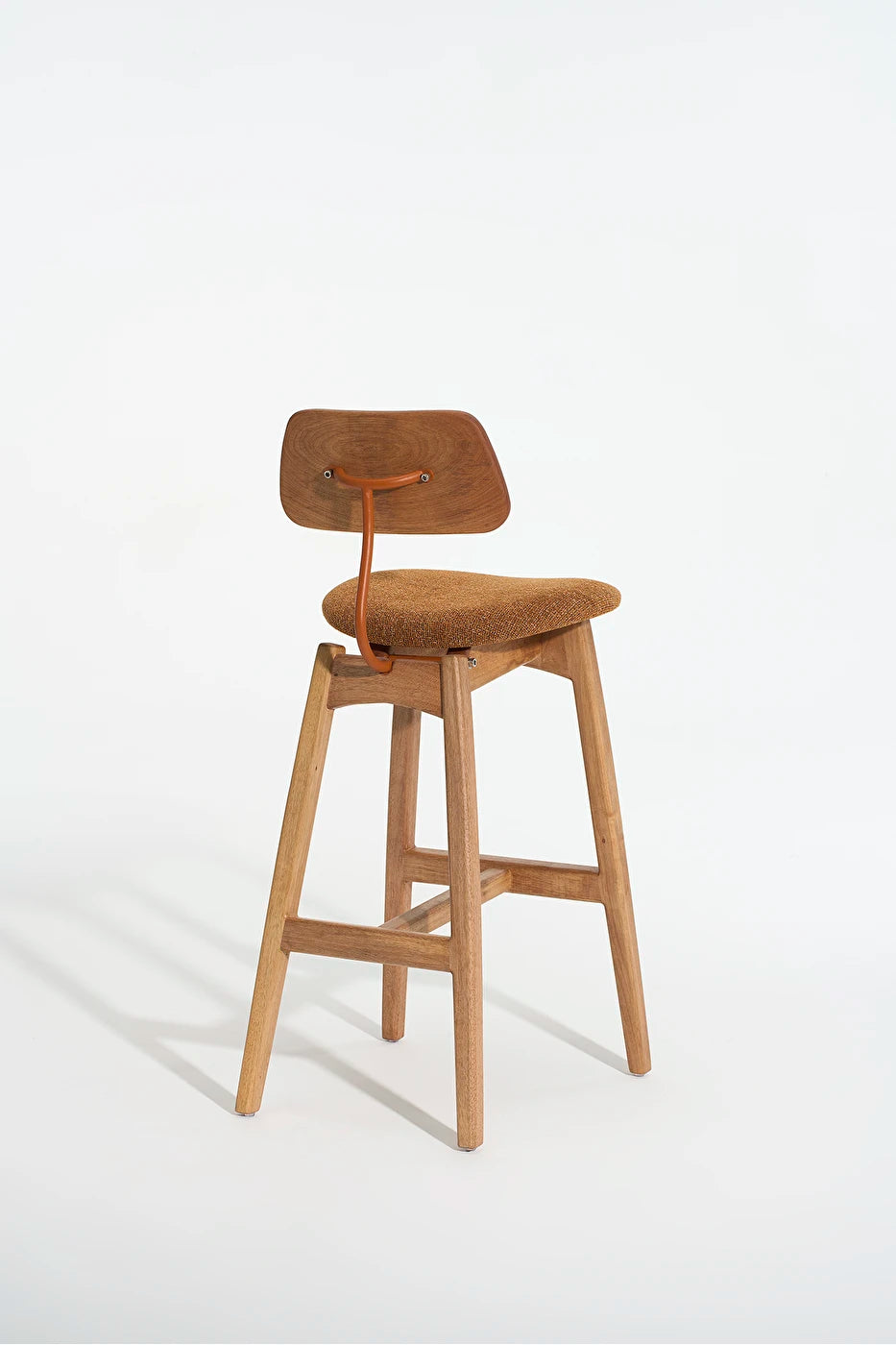 El taburete alto Bamba es una pieza artesanal. Fabricado en madera natural maciza, resalta la belleza orgánica del material con sus tonos cálidos y patrones de vetas distintivos. El taburete cuenta con un cómodo asiento tapizado en varias opciones de tela que agregan un toque de color y un estilo contemporáneo al diseño.