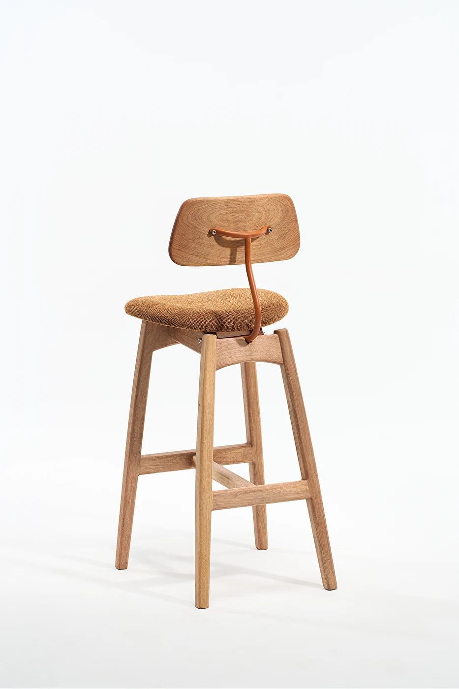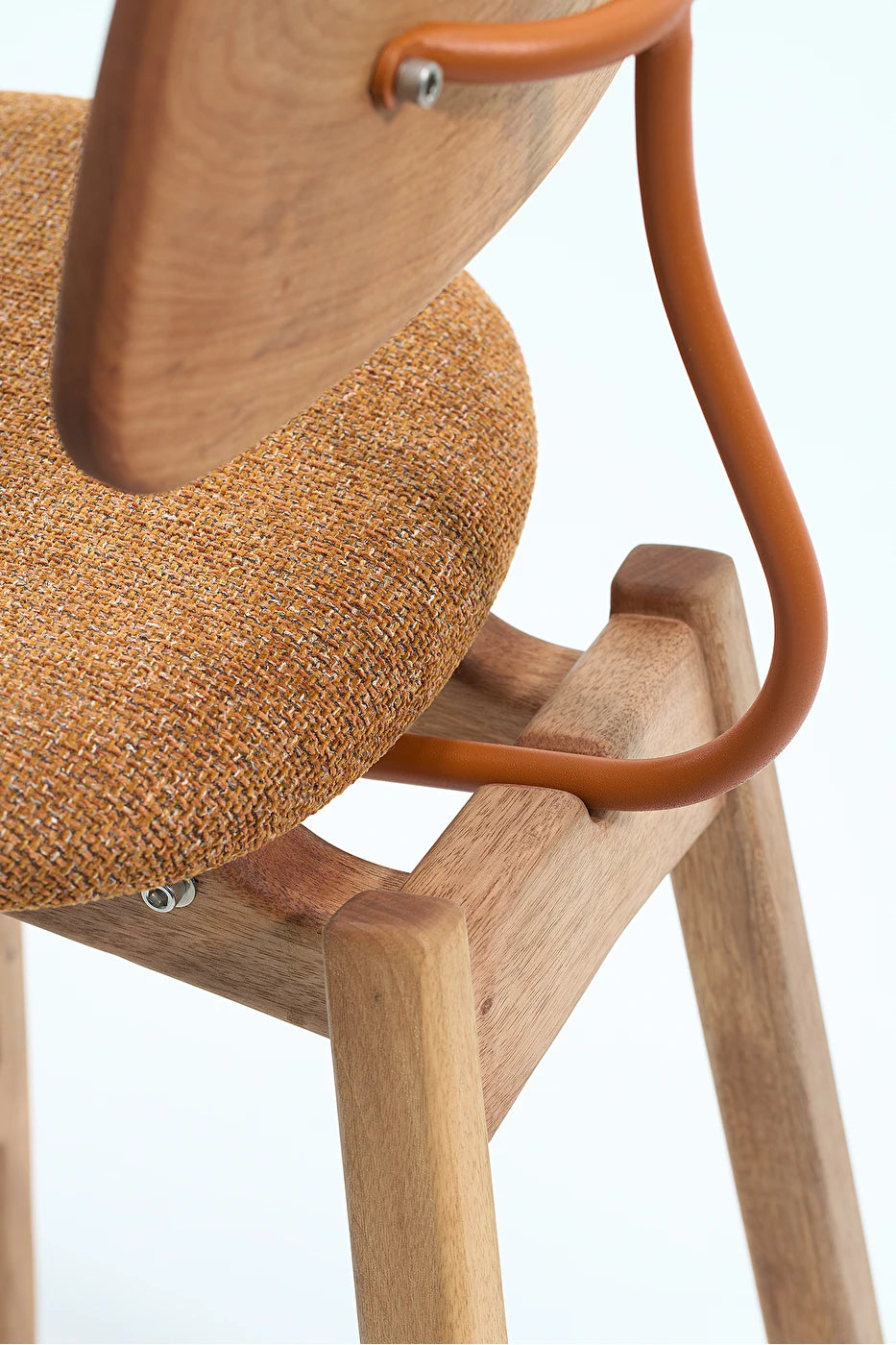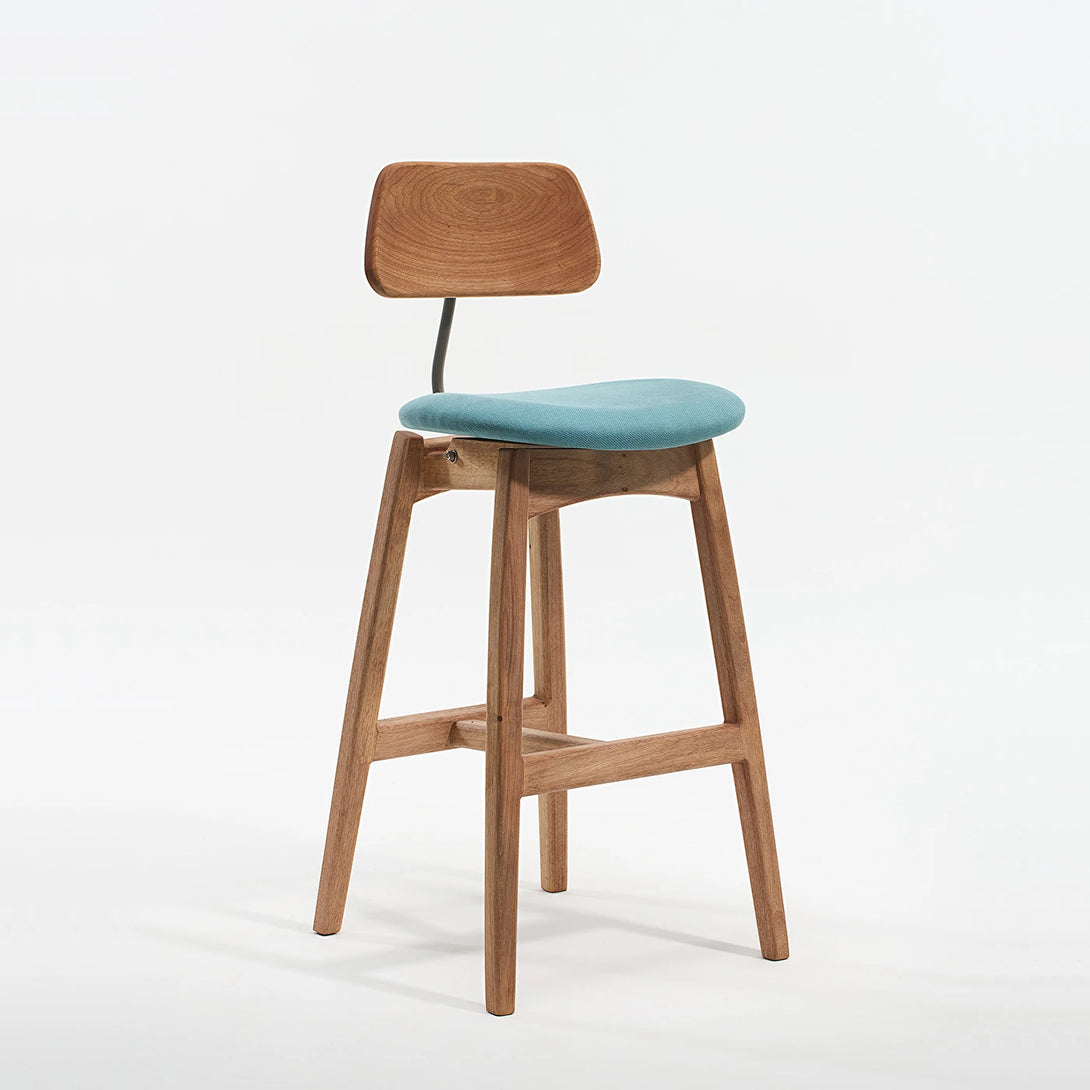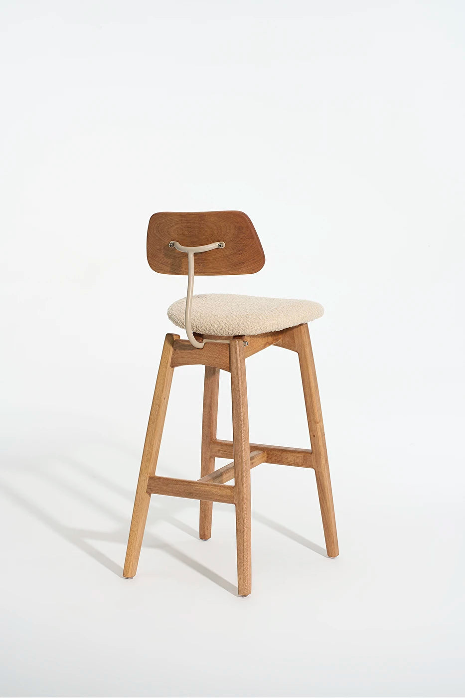 El taburete alto Bamba es una pieza artesanal. Fabricado en madera natural maciza, resalta la belleza orgánica del material con sus tonos cálidos y patrones de vetas distintivos. El taburete cuenta con un cómodo asiento tapizado en varias opciones de tela que agregan un toque de color y un estilo contemporáneo al diseño.