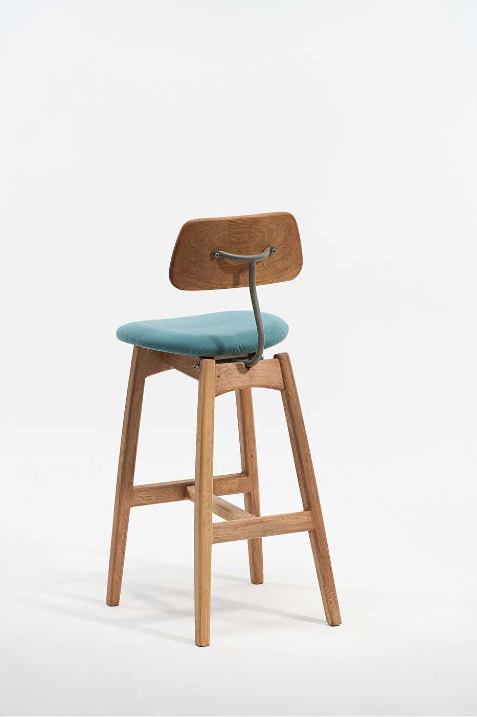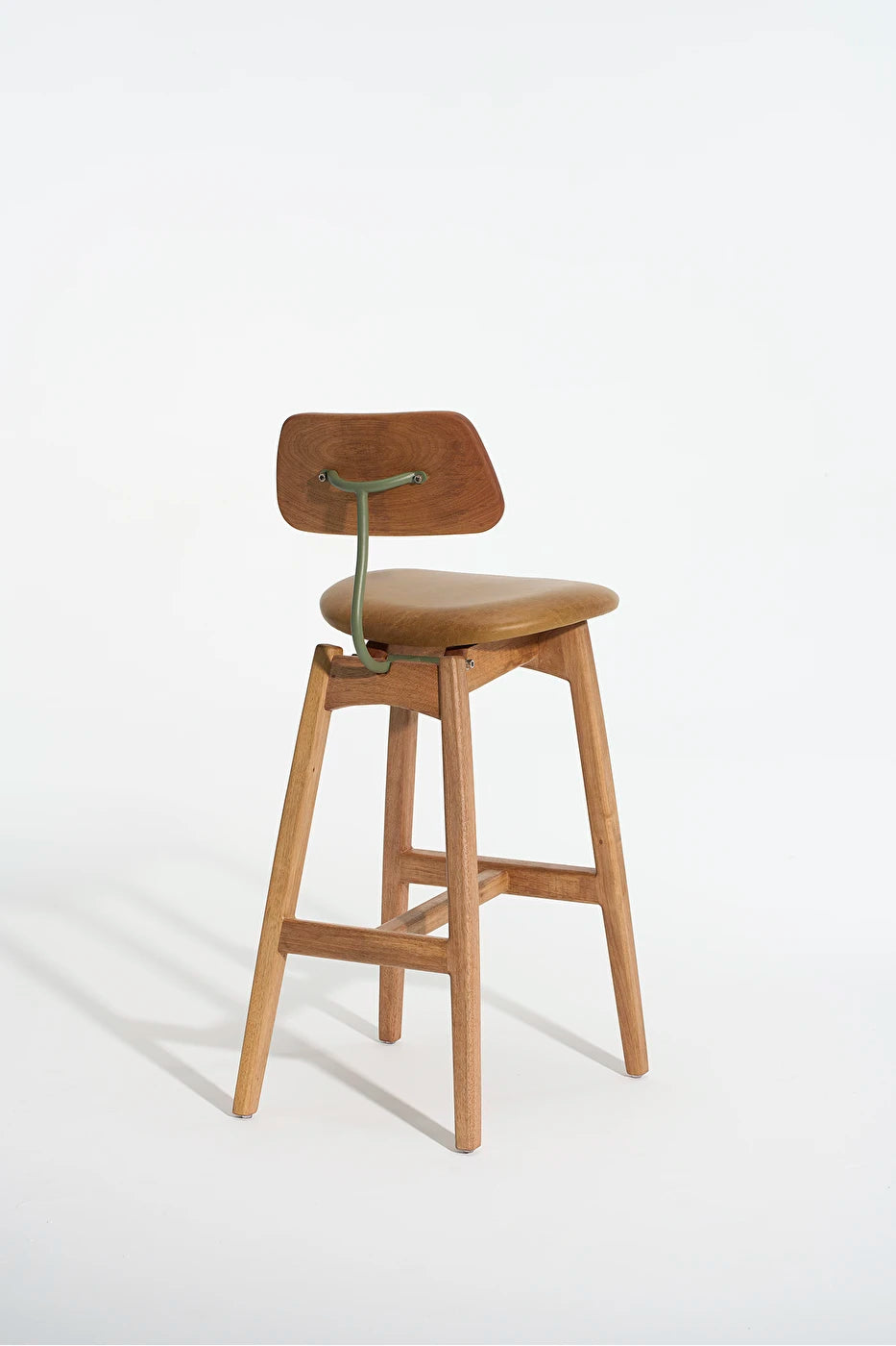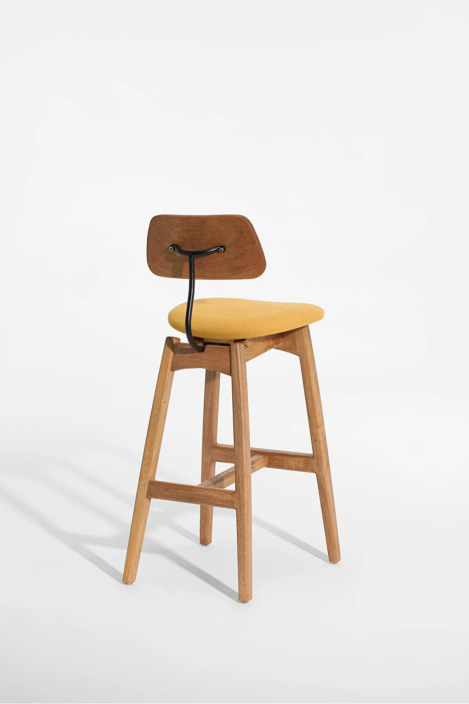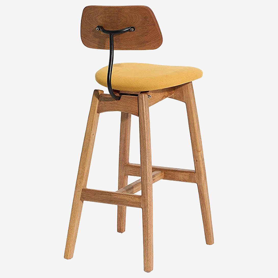 El taburete alto Bamba es una pieza artesanal. Fabricado en madera natural maciza, resalta la belleza orgánica del material con sus tonos cálidos y patrones de vetas distintivos. El taburete cuenta con un cómodo asiento tapizado en varias opciones de tela que agregan un toque de color y un estilo contemporáneo al diseño.