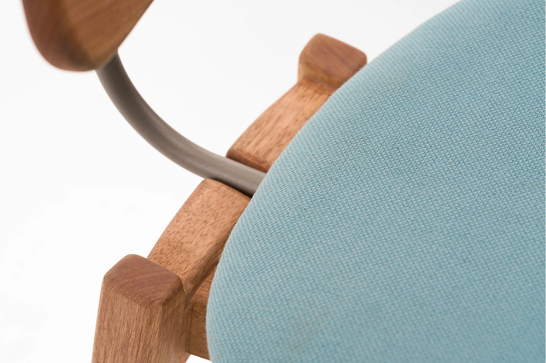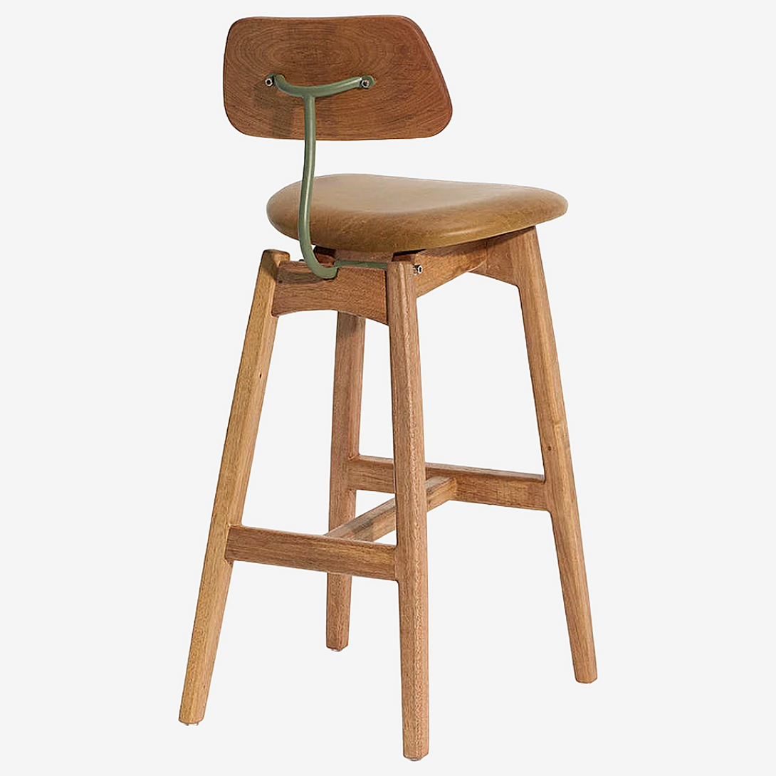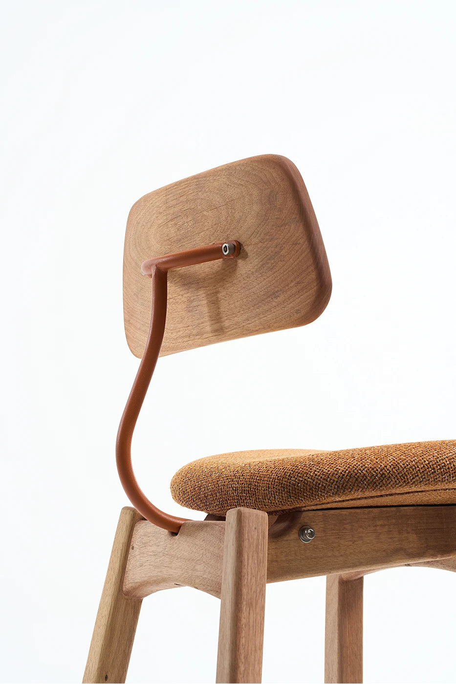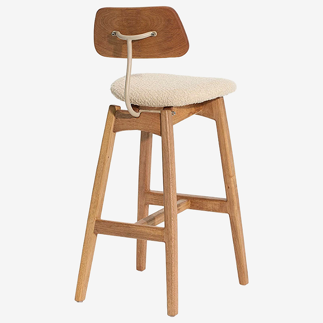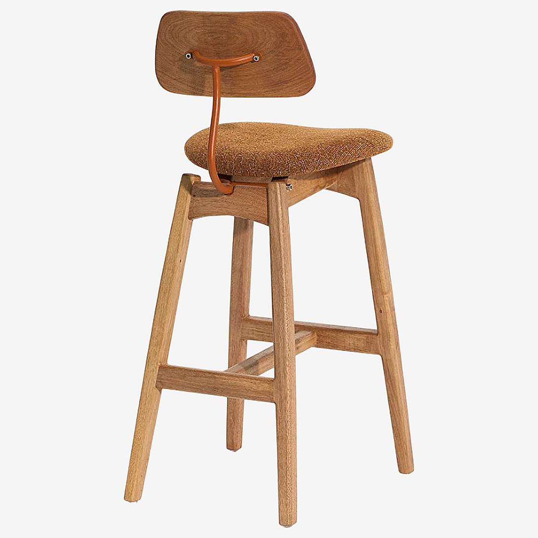 El taburete alto Bamba es una pieza artesanal. Fabricado en madera natural maciza, resalta la belleza orgánica del material con sus tonos cálidos y patrones de vetas distintivos. El taburete cuenta con un cómodo asiento tapizado en varias opciones de tela que agregan un toque de color y un estilo contemporáneo al diseño.