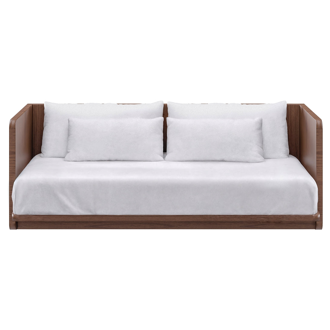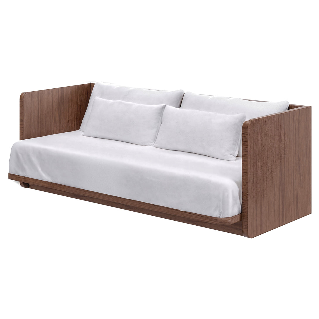 Cama en MDF revestido en chapa de madera (estructura desmontable).