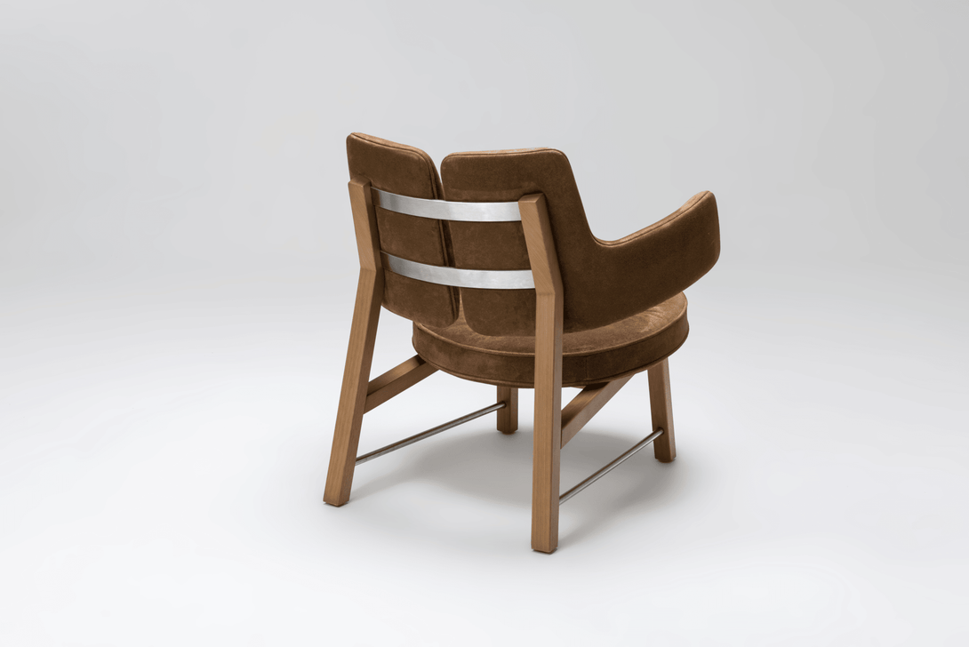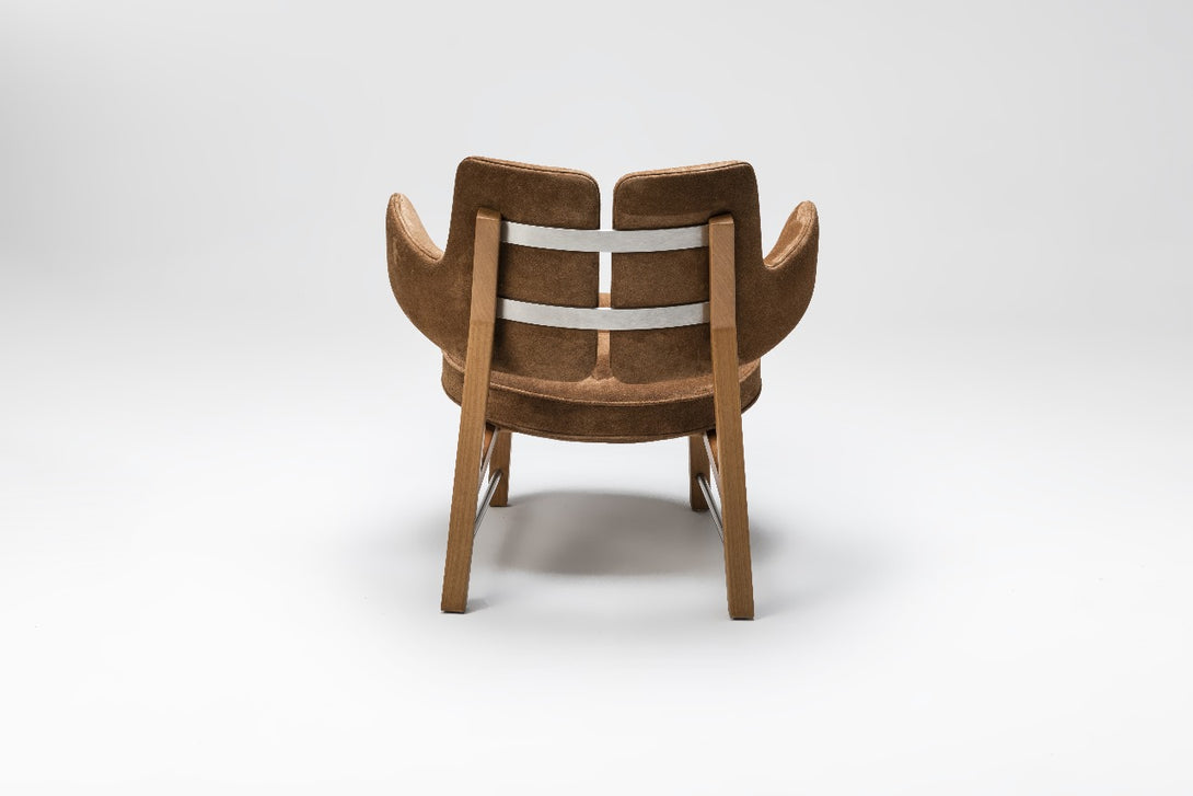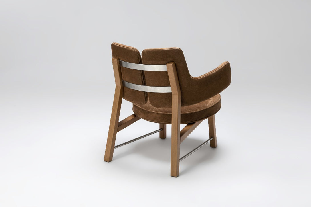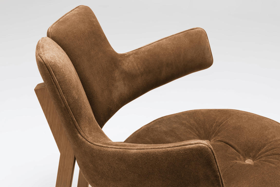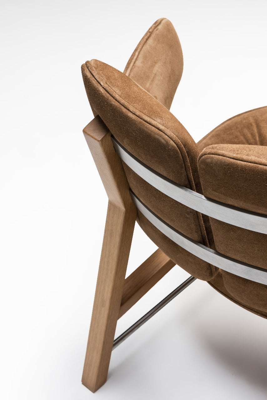 The armchair offers an elegant fusion of style and comfort, featuring a sturdy frame made of Tauari wood and upholstered seat and backrest. Tauari wood lends durability and beauty to the piece, while the upholstery provides a cozy and inviting atmosphere.