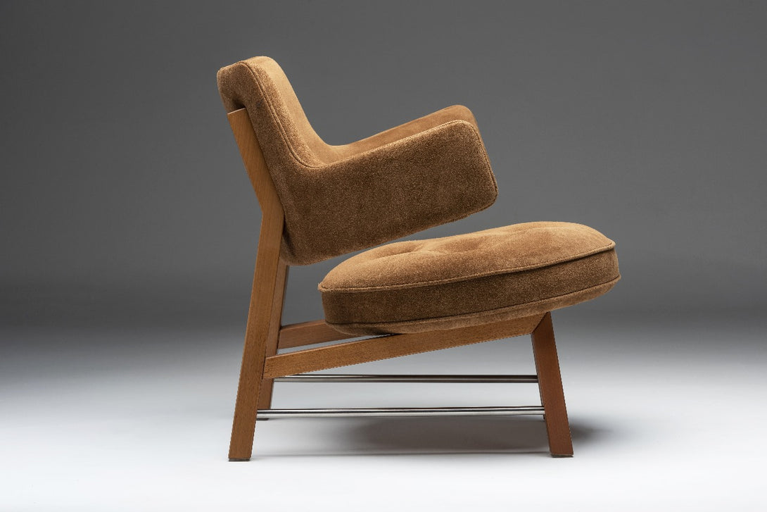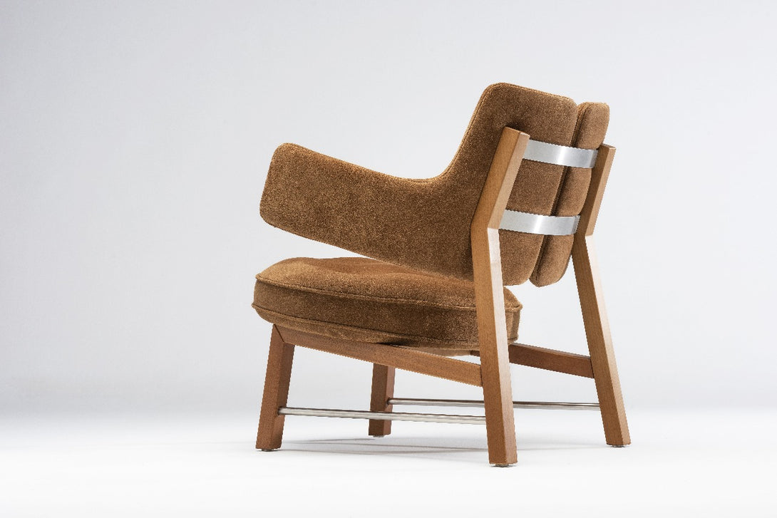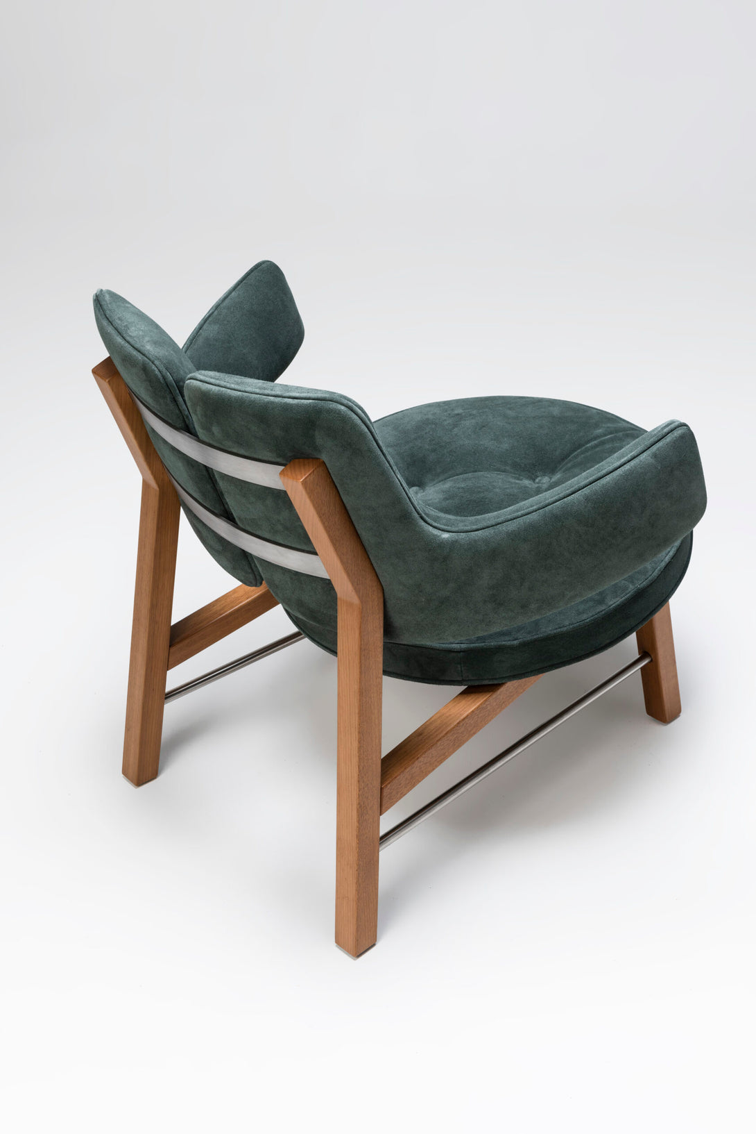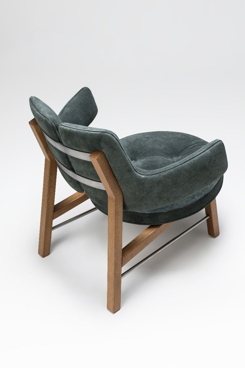 The armchair offers an elegant fusion of style and comfort, featuring a sturdy frame made of Tauari wood and upholstered seat and backrest. Tauari wood lends durability and beauty to the piece, while the upholstery provides a cozy and inviting atmosphere.