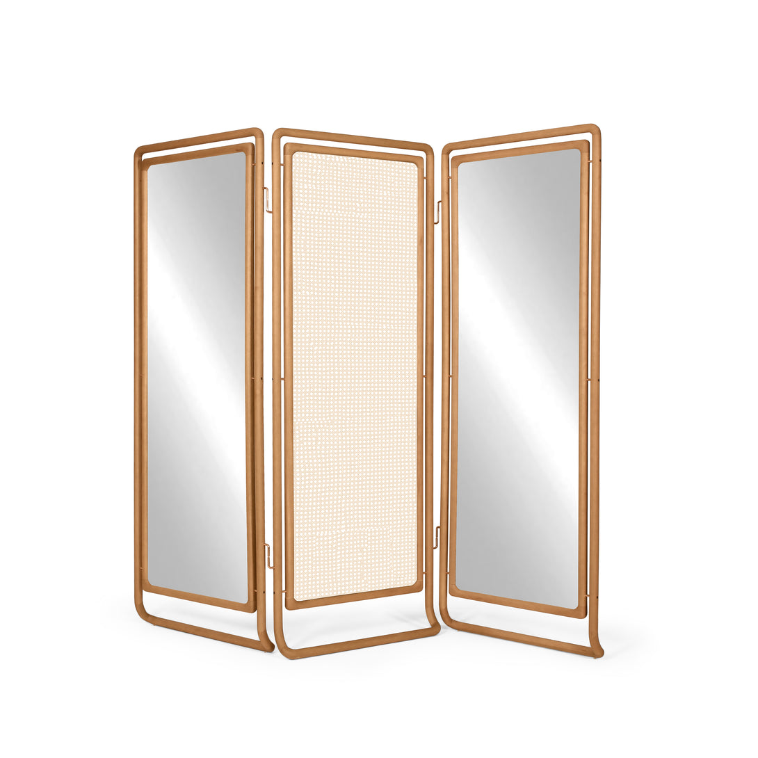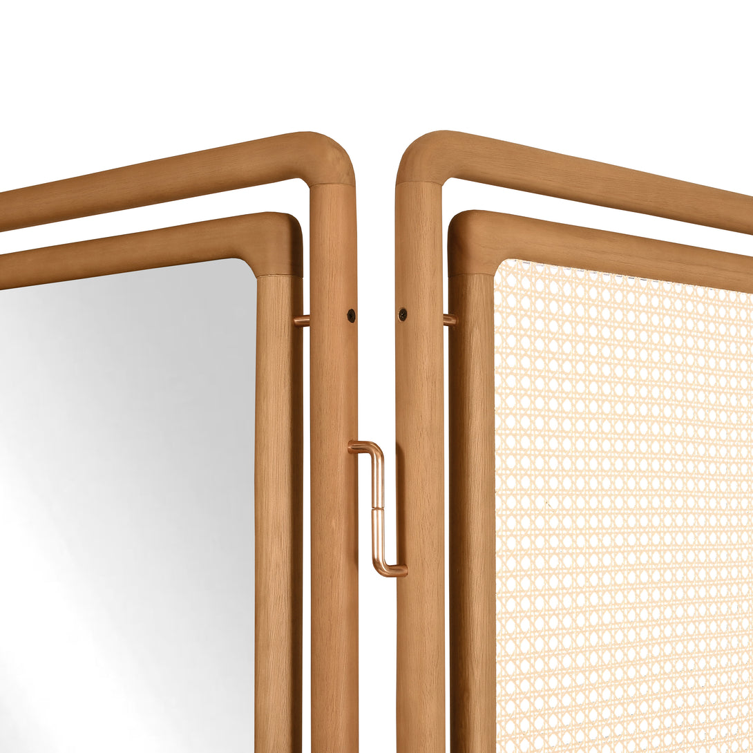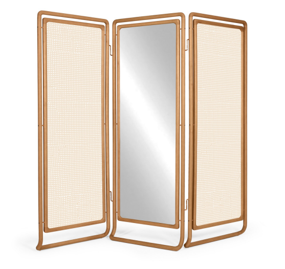 Aire screen with 2 sides in hexagonal/enclosed straw and center mirror